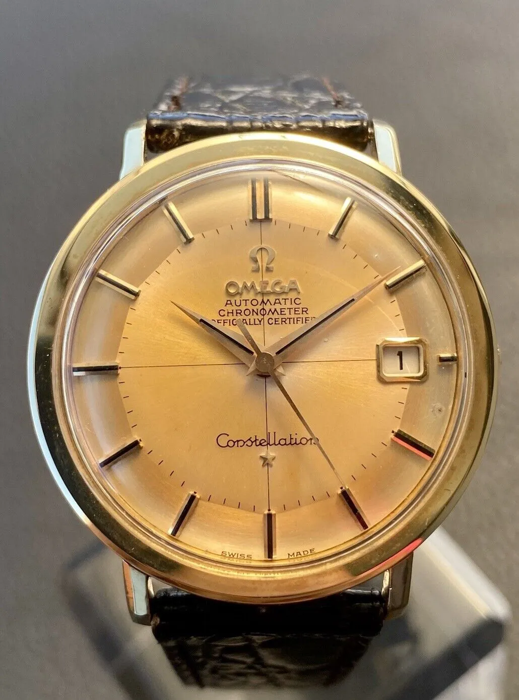Vintage Omega 168.004 Constellation pie-pan with evenly patinated dial in gold-capped case going no reserve