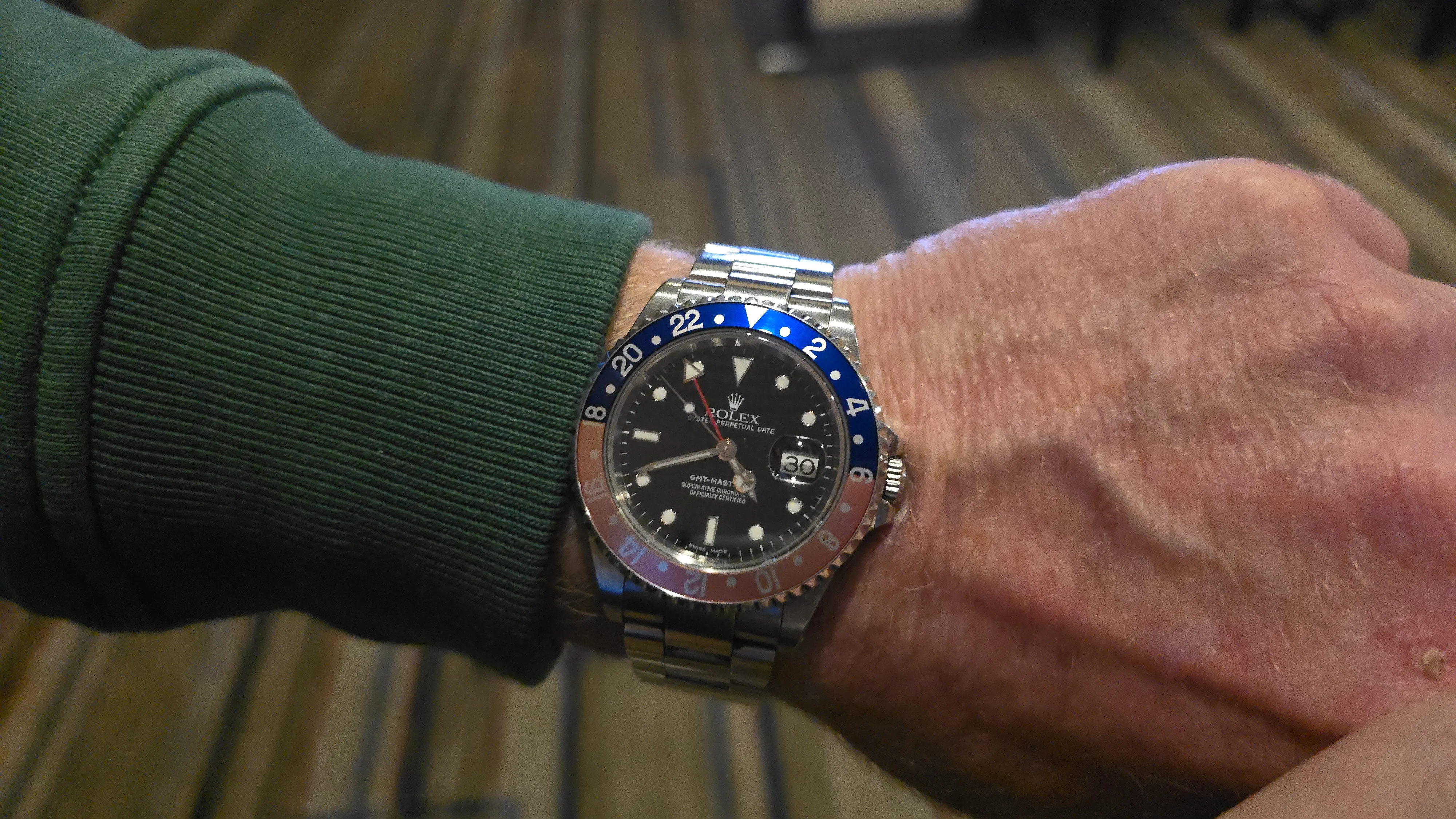 Fun time talking about our mutual interests. Seller is not an online guy, just likes watches. He was wearing his GMT that he bought new in 2002, sheepishly admitting it was because Tom Selleck worn one. Funny thing is he wears it traveling because he says people ignore it and never comment on it, which isn't what I had been led to think. Never polished, but not babied (goes in the ocean.)