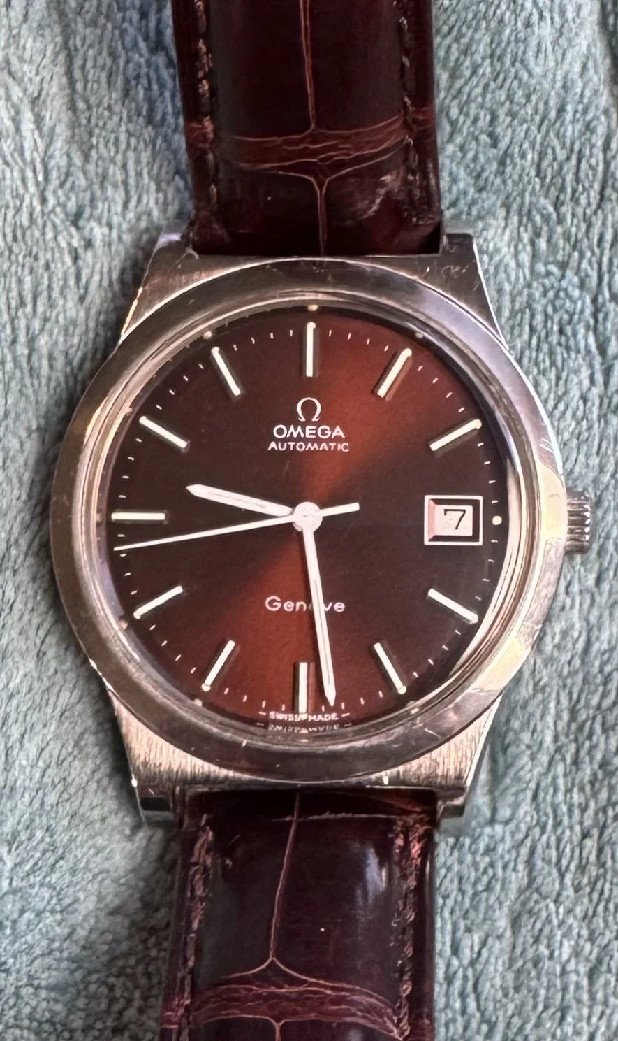 🇺🇸 Vintage Omega Geneve Metallic Burgundy Starburst Dial going no reserve in 4 hours