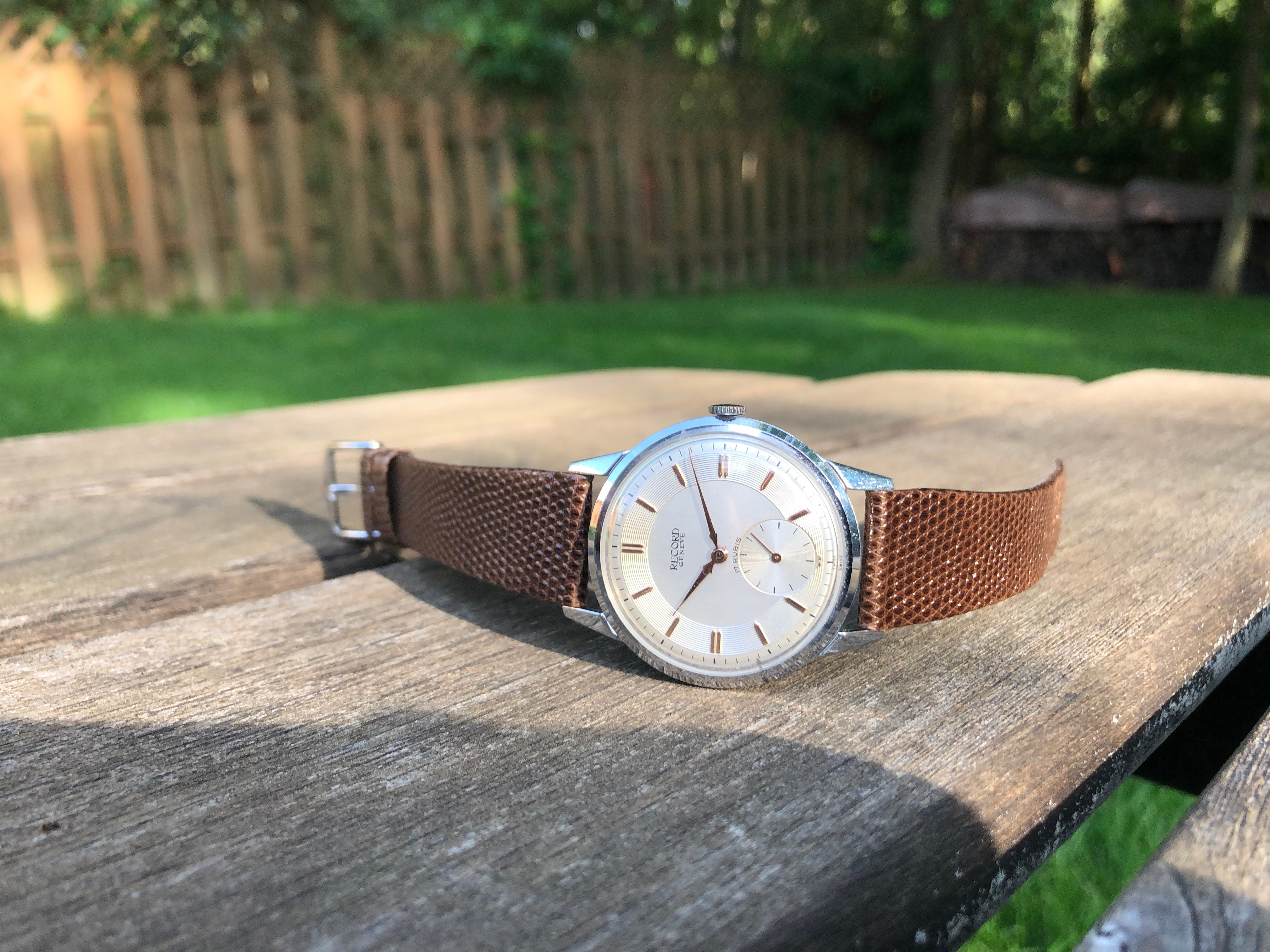 Once again, a very attractive vintage timepiece from the mid-50's in a hard to find "jumbo" size with great wrist presence. The Dial and Handset provide reason enough to give this one some serious wrist time.