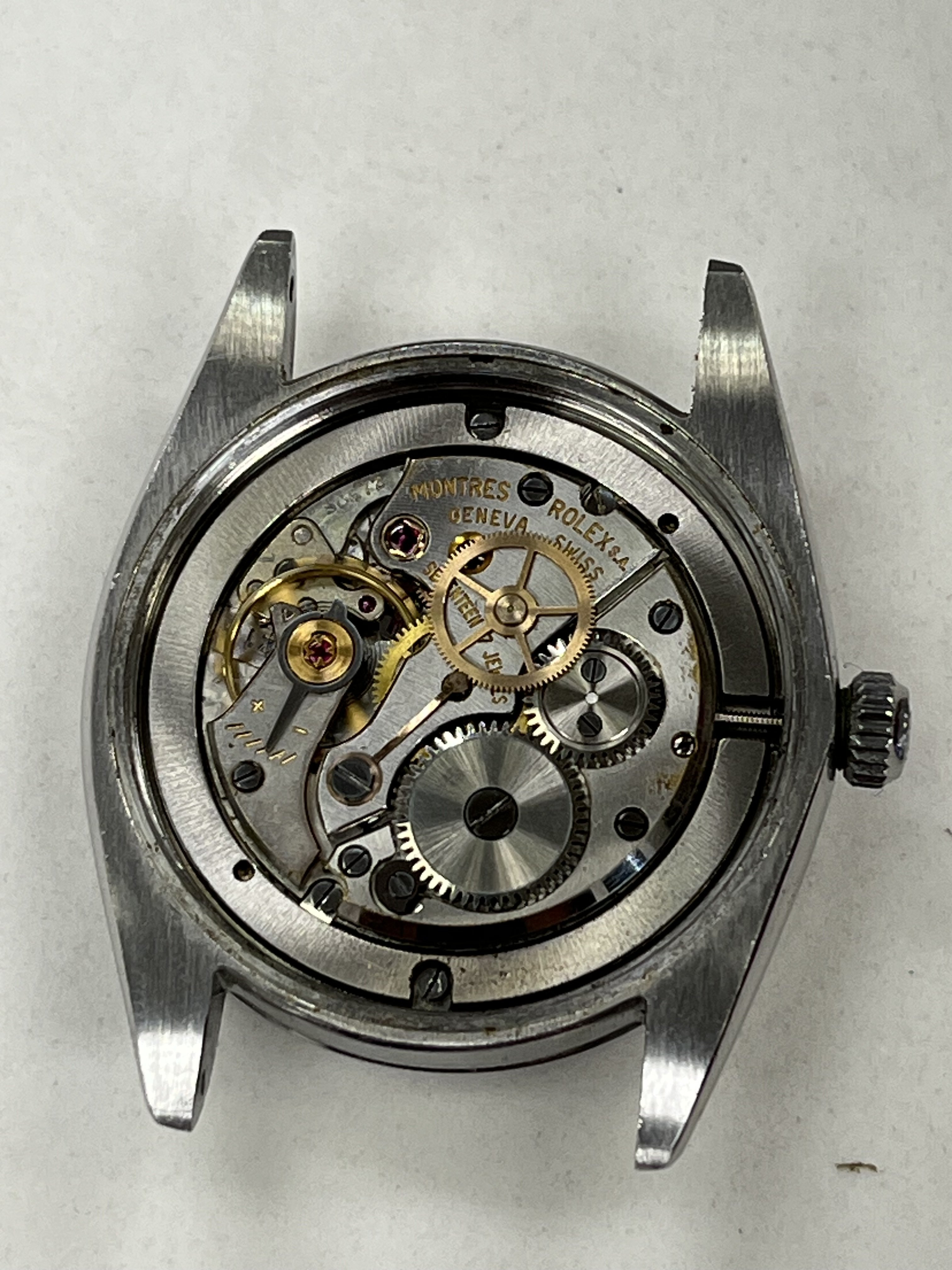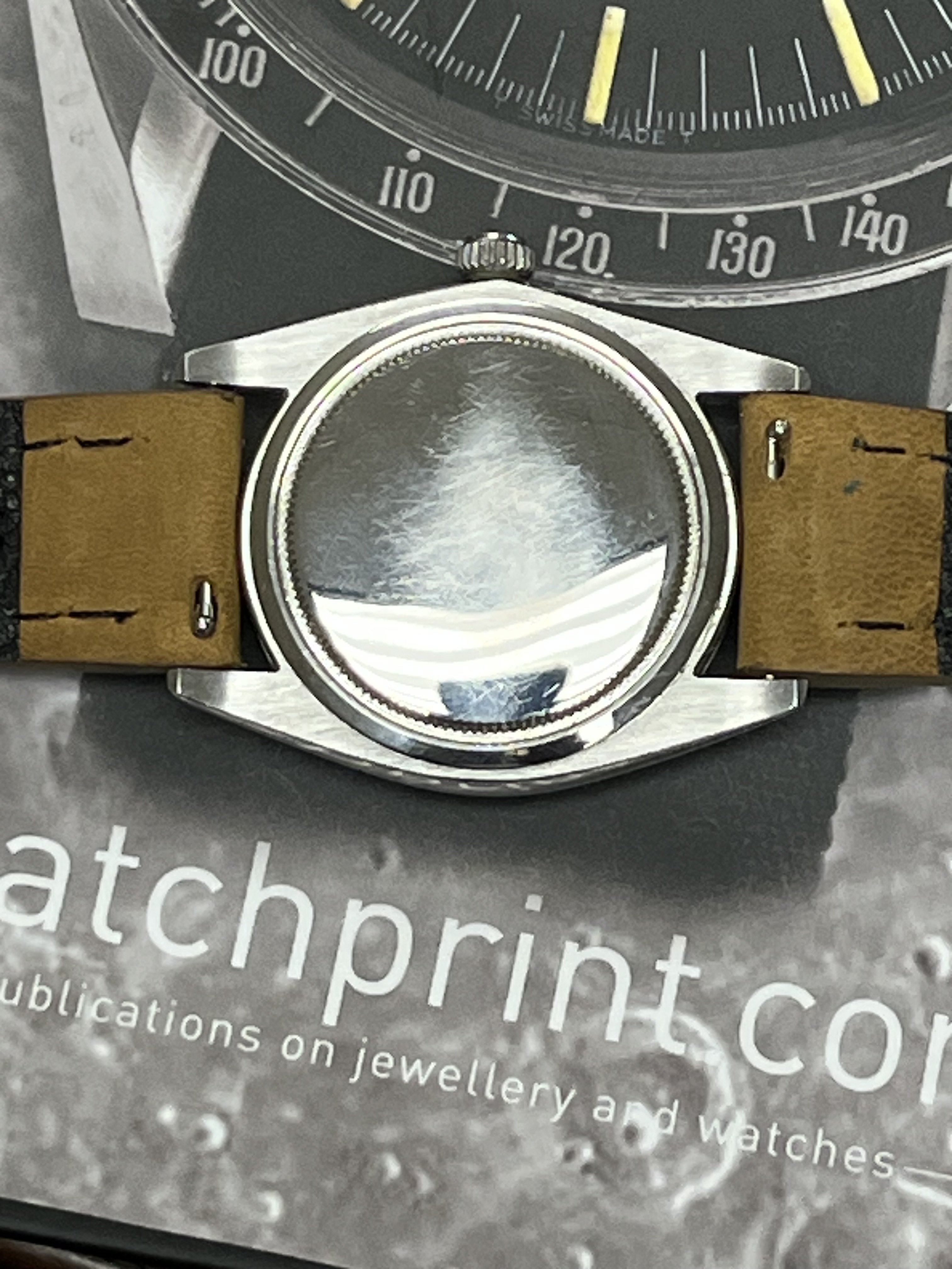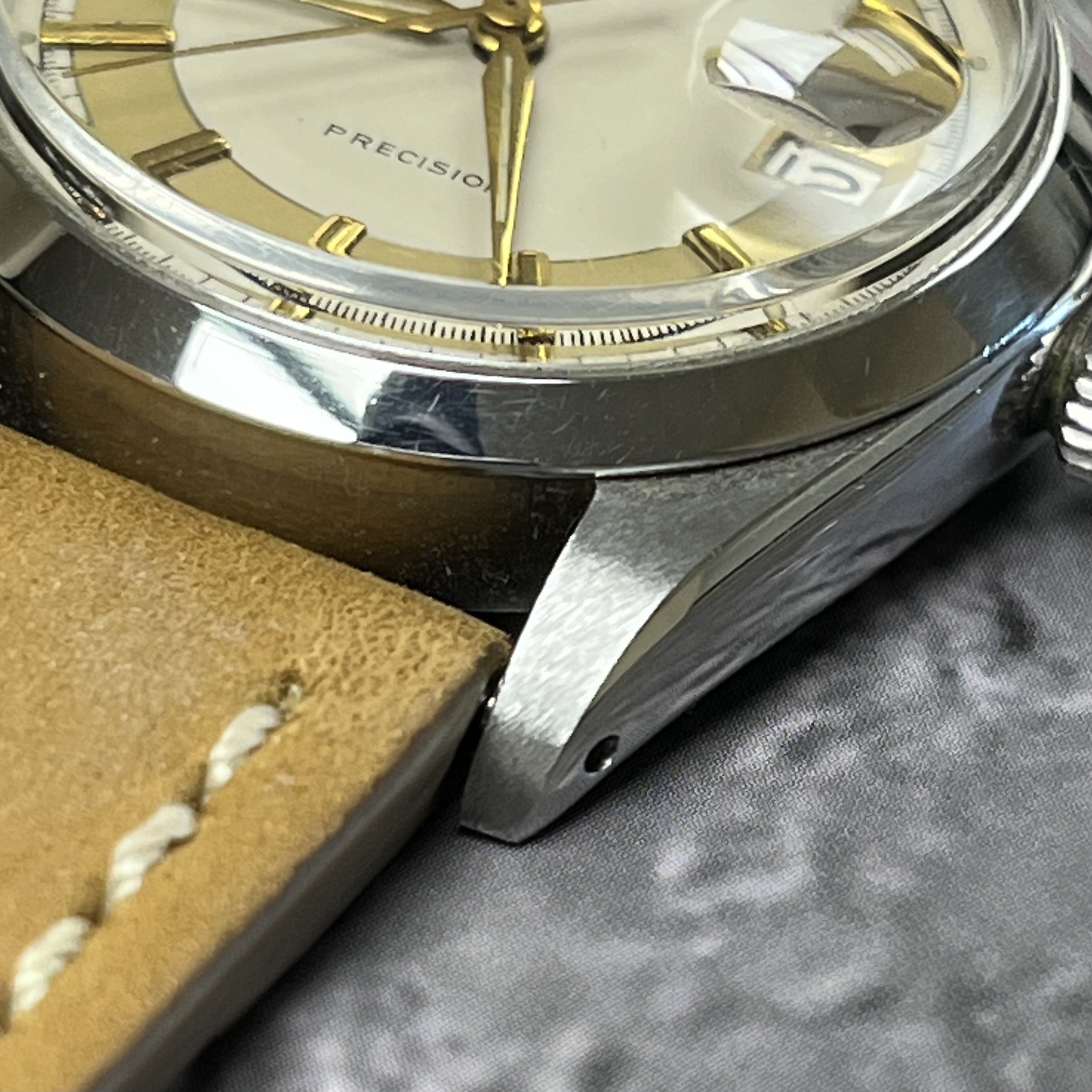 At some point, the dial was professionally refinished, but it was a well done job nonetheless. The overall excellent quality of the work contrasts some obvious “errors” (too late for “Swiss” only designation, irregular chapter ring, etc). This watch just looks great in person. I’ve included a lot of photos at many angles and lighting.