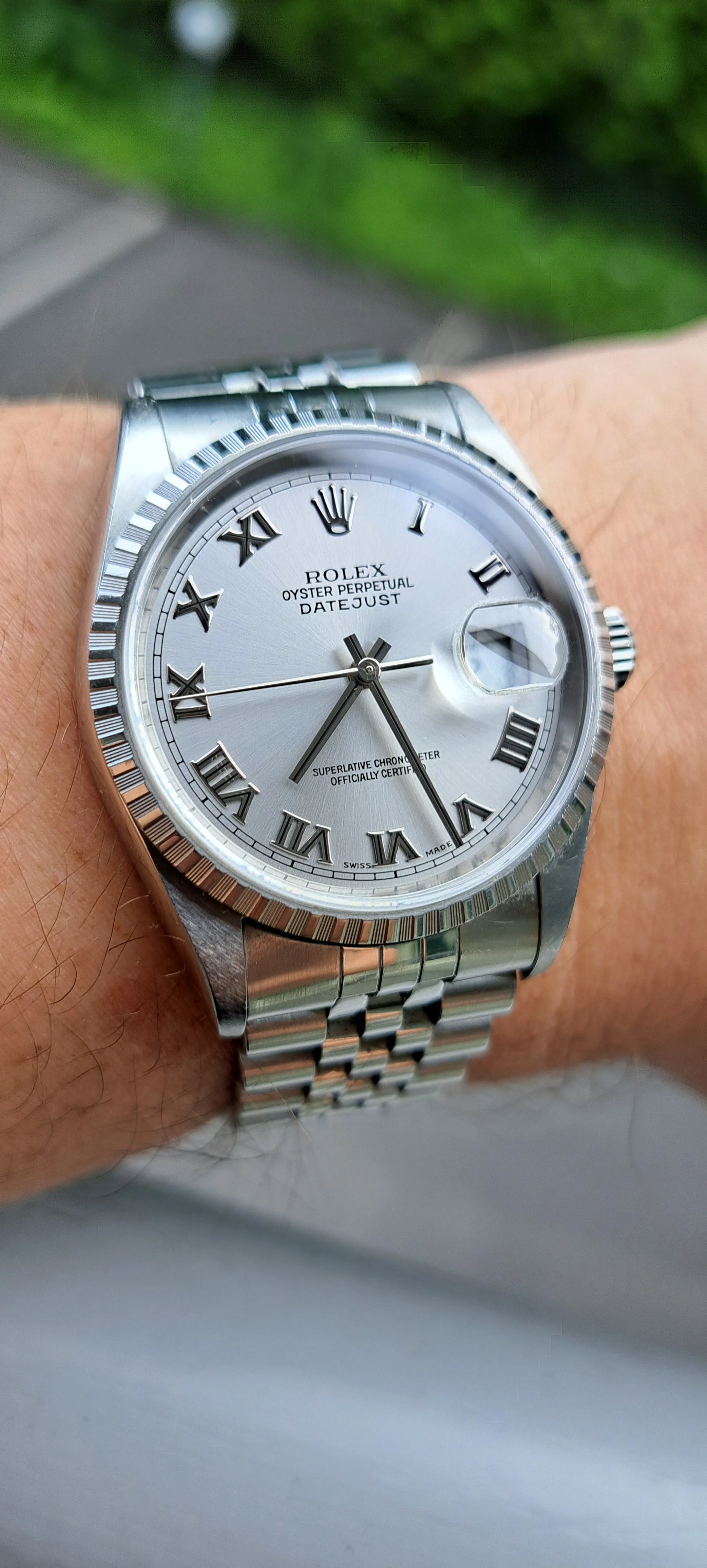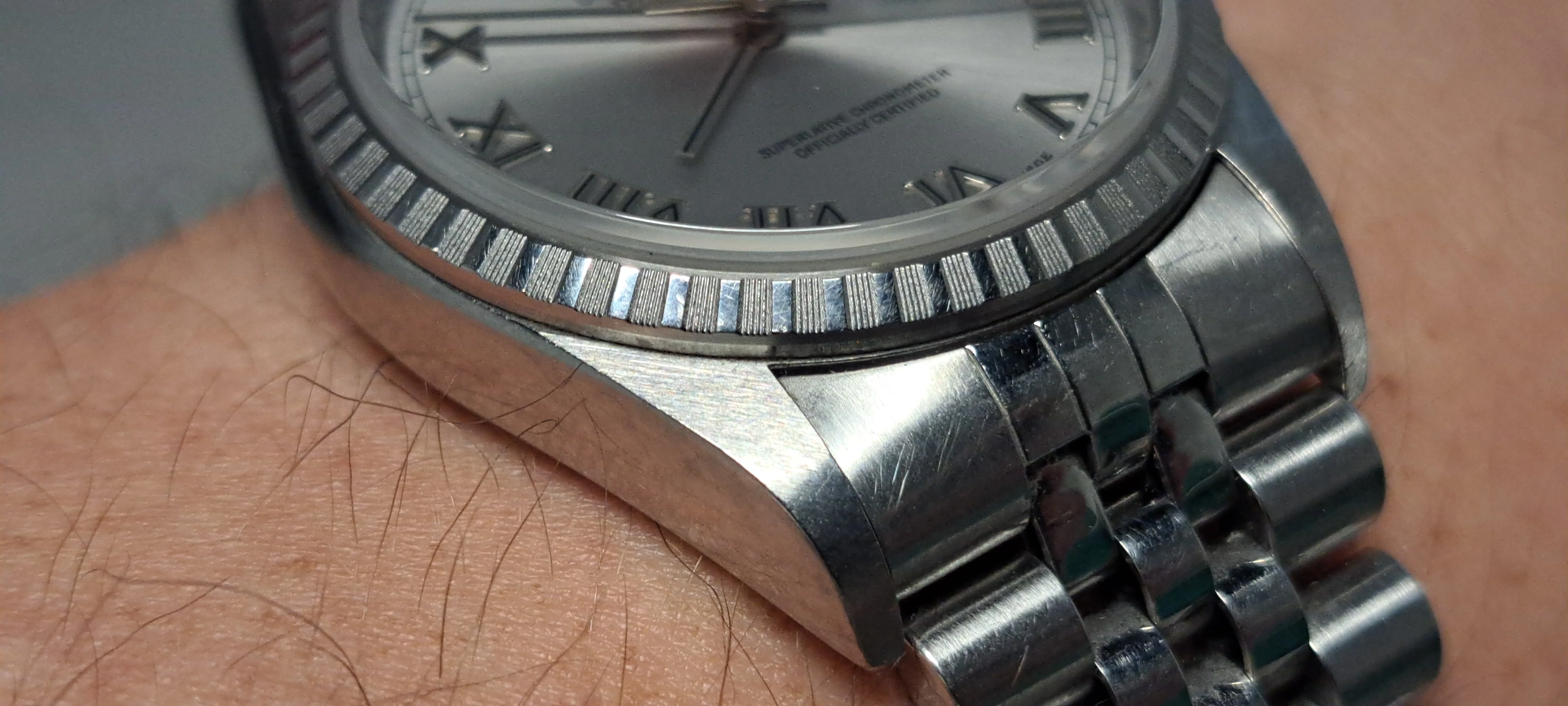 Case had scratches and I couldn't tell that it would have been polished (at least it wasn't as shiny as the movement was 😆). Over all the watch looked definitely authentic and original. I really liked the set up with rhodium dial with roman numerals. Didn't test the movement but the seller stated that it's -30 sec per day so servicing is being needed.