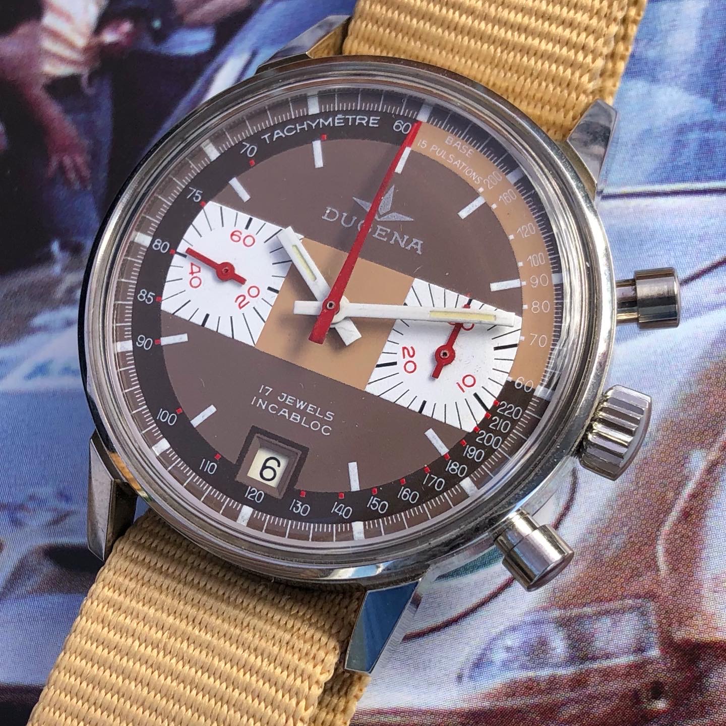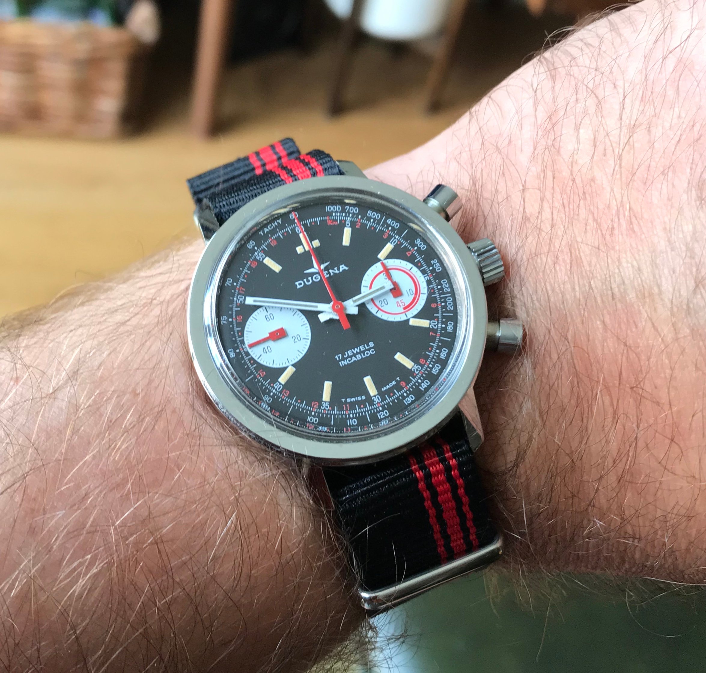Posts 911 Likes 4,393 wilderbeast ·Jul 5, 2022 Just remembered my other vintage Dugena chrono also has red hands. A great brand - worth getting to know better!