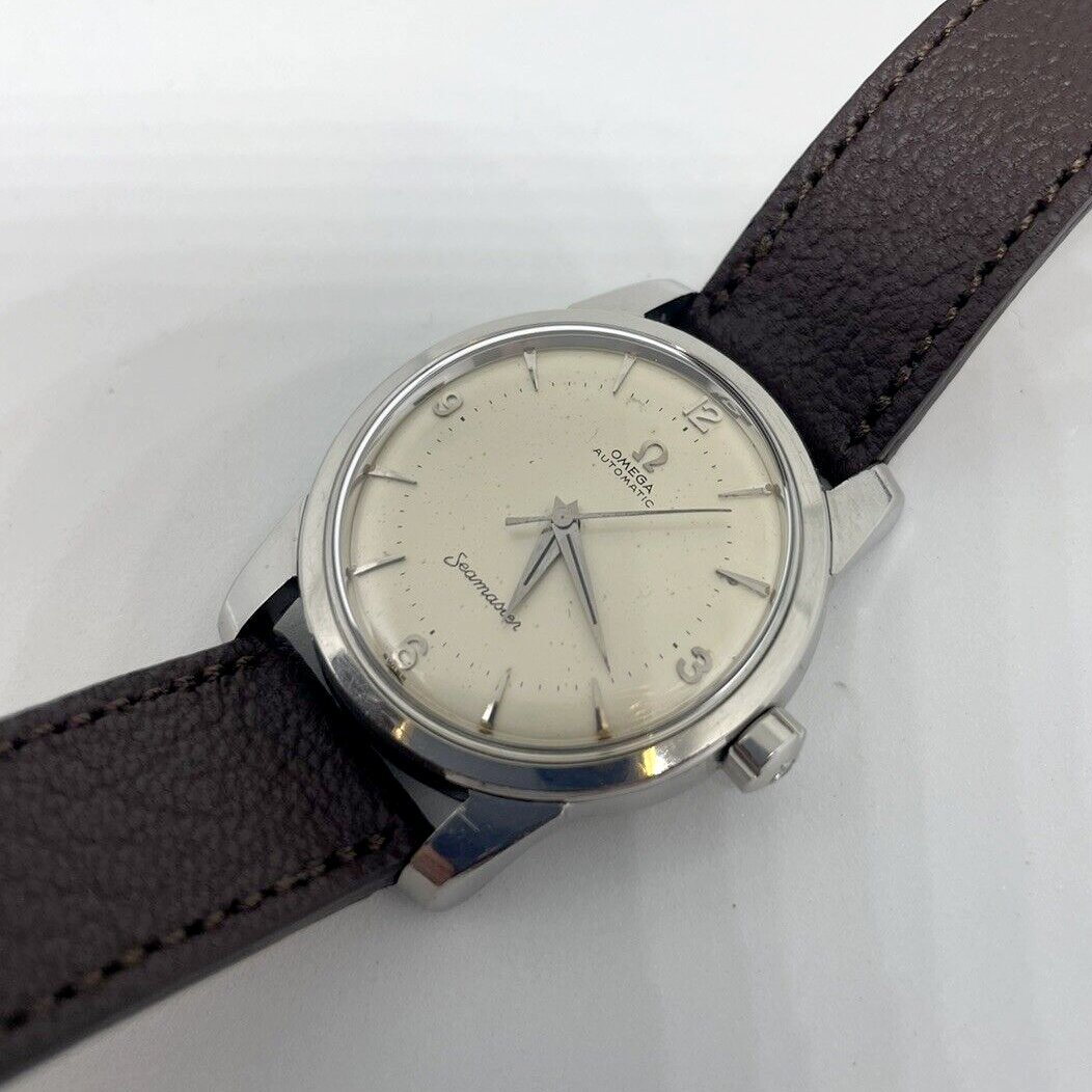 almost like it, but not quite. I wanted the exact one I've found - 12/3/6/9 numerals, no date, no pie-pan coloring, automatic movement. (I might have compromised on a manual-winder - thanks to the fellow who suggested that - but that's the only place I think I would have done so.) I've seen every 1950s Seamaster advertised online, here, as well as at Rolex Forums, Chrono24, WatchUSeek, and eBay, and some other sites too. By my figuring, that's upwards of 3000 1950s Seamasters, and there are maybe 10 that fit the bill. None of them is nearly as clean as the one I bought.