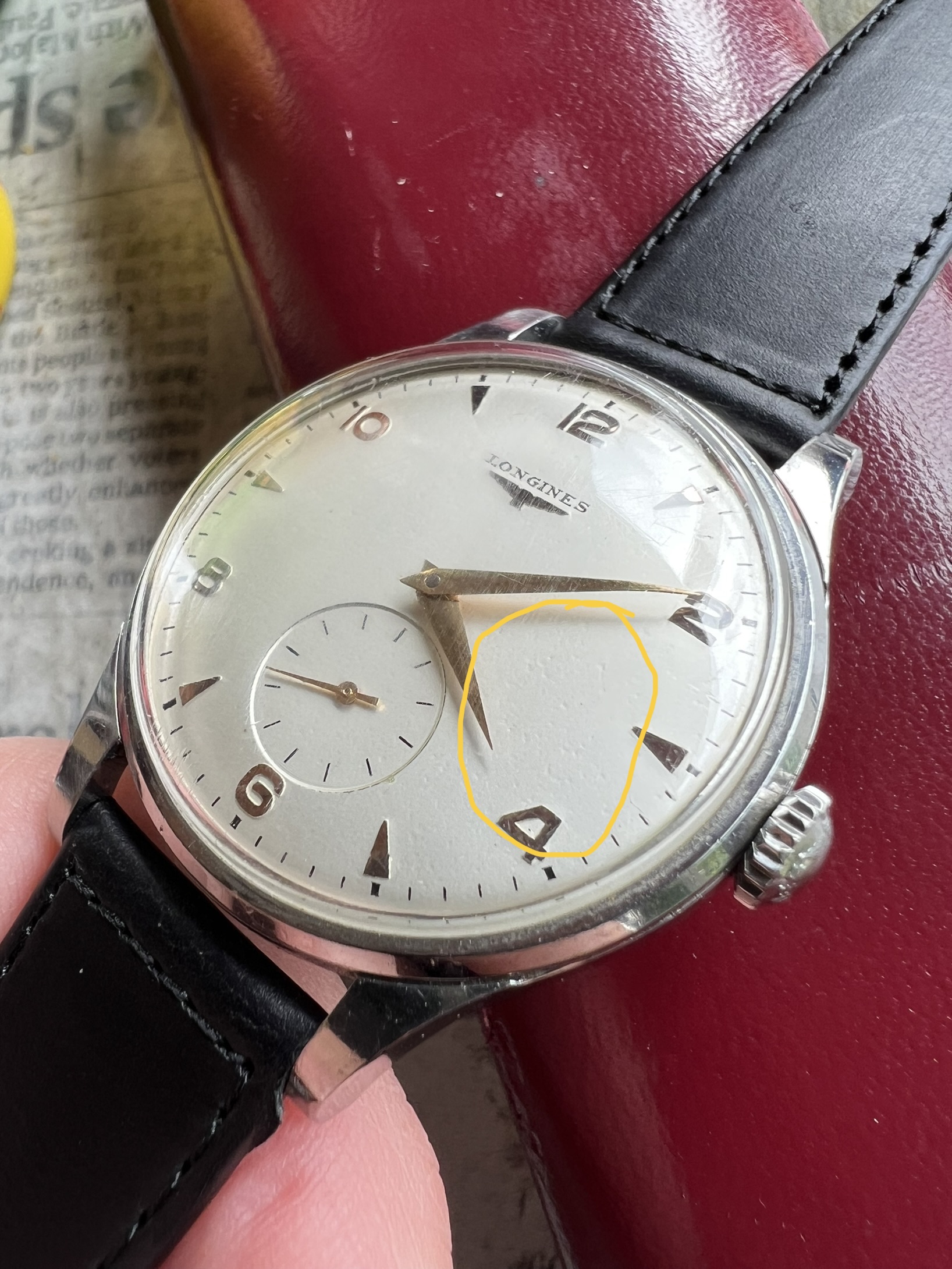 Additionally, does the sub-dial have clearly visible concentric circles like the examples below? If not, this combined with the imperfect signature and very white appearance of the dial would lead me to conclude that it has been refinished. The more I look at it, the more suspicious it appears.