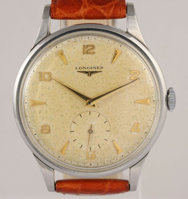 This dial looks refinished. Both the font of the signature and design of the sub-dial are not consistent with original examples. Also, the hour and minute hands are mismatched, and the crown is incorrect.