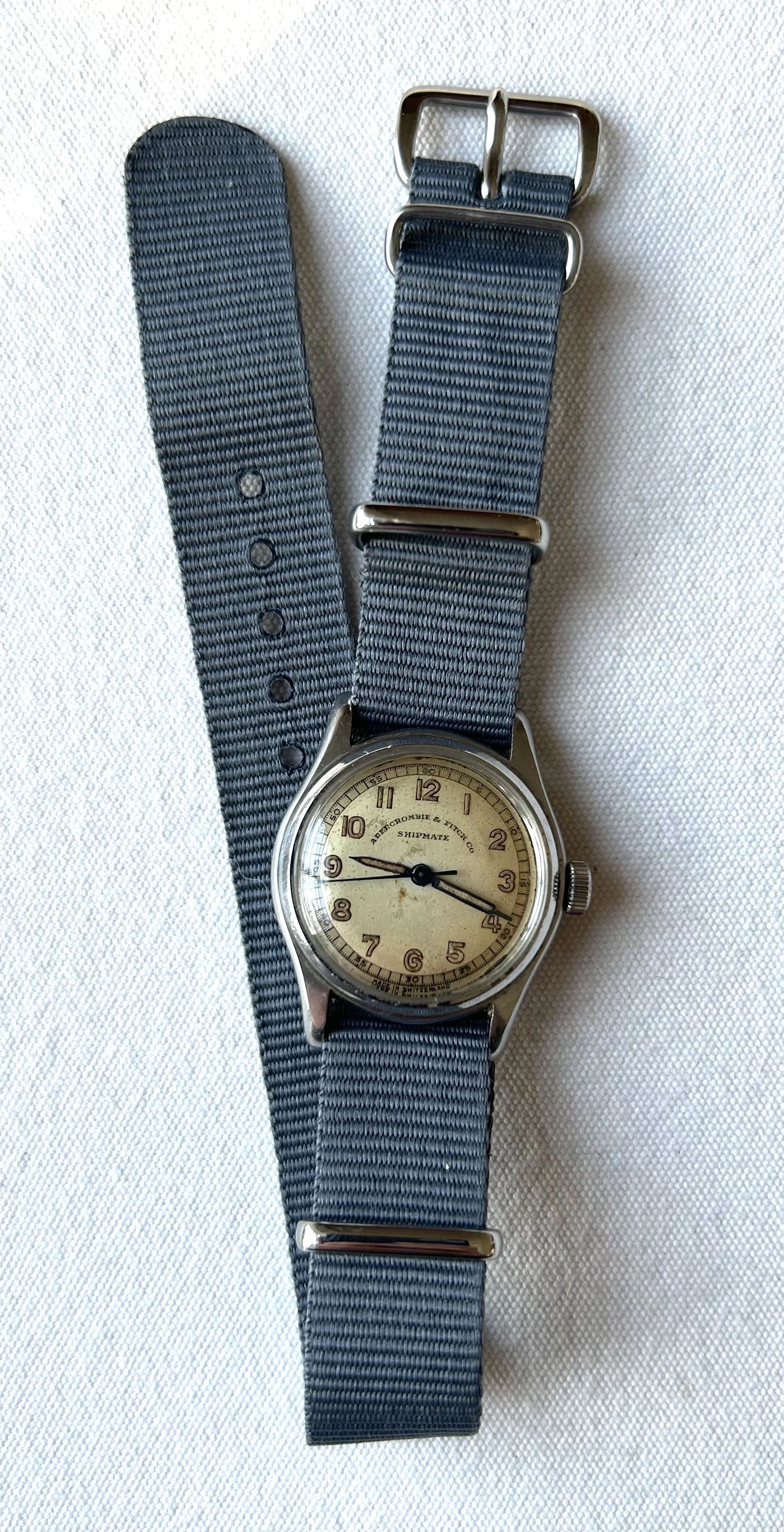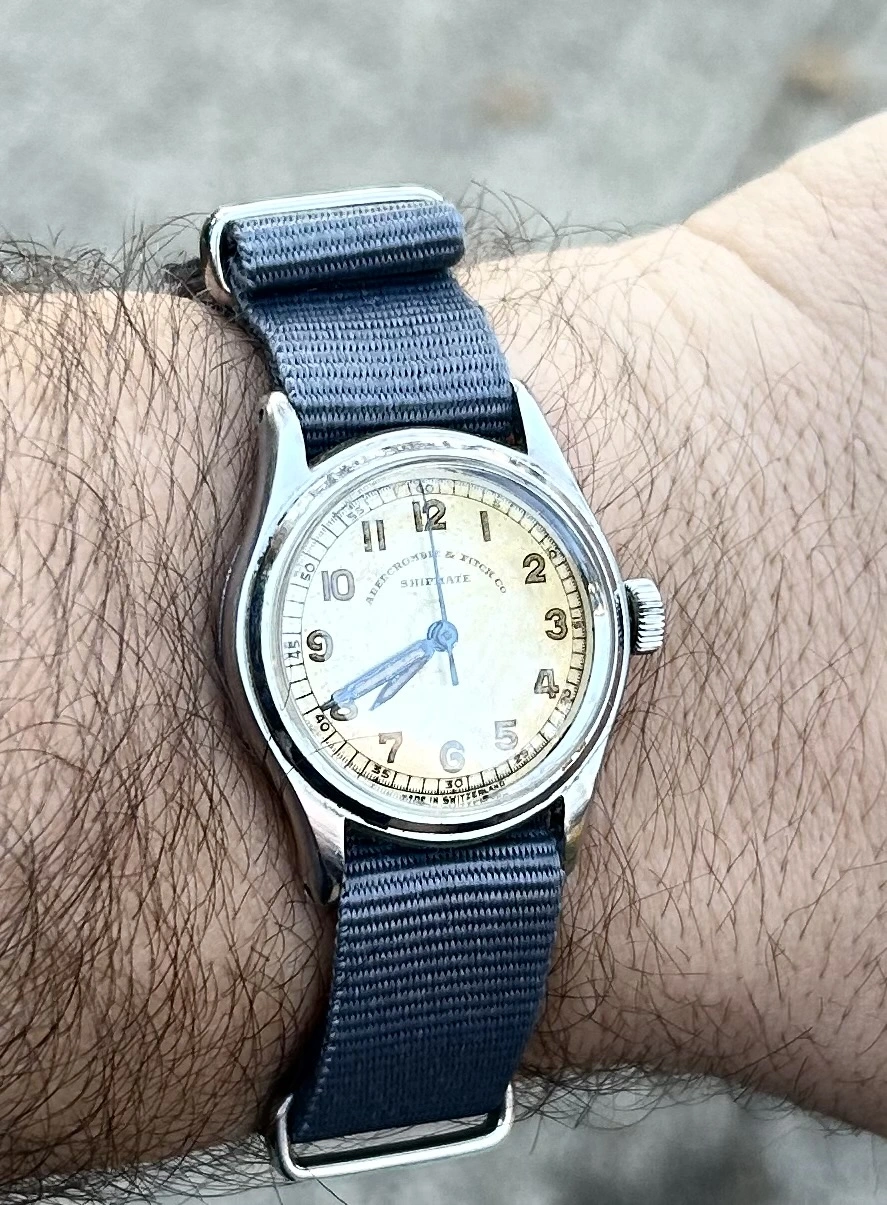 ·Embark on a journey back to the golden age of exploration with this 1940s Abercrombie & Fitch “Shipmate” timepiece.