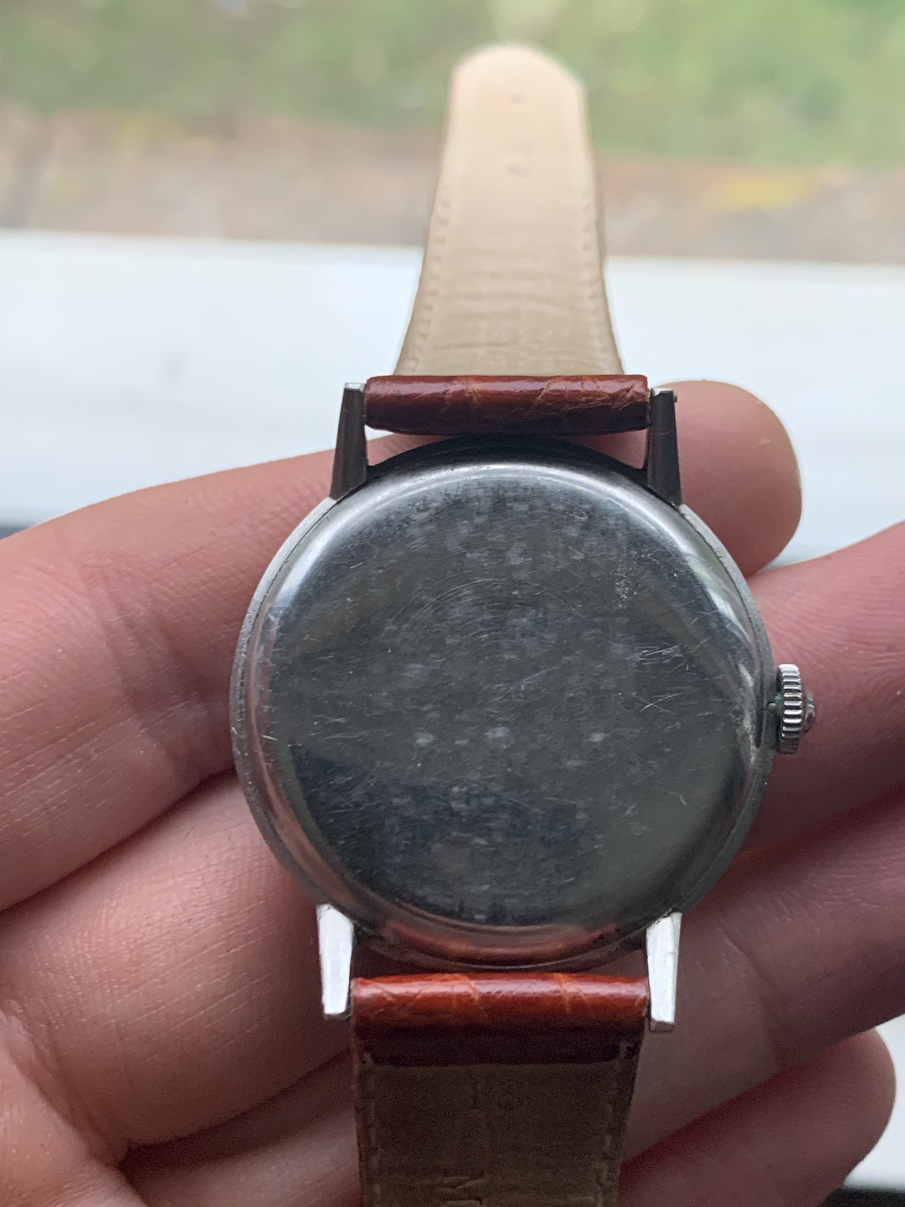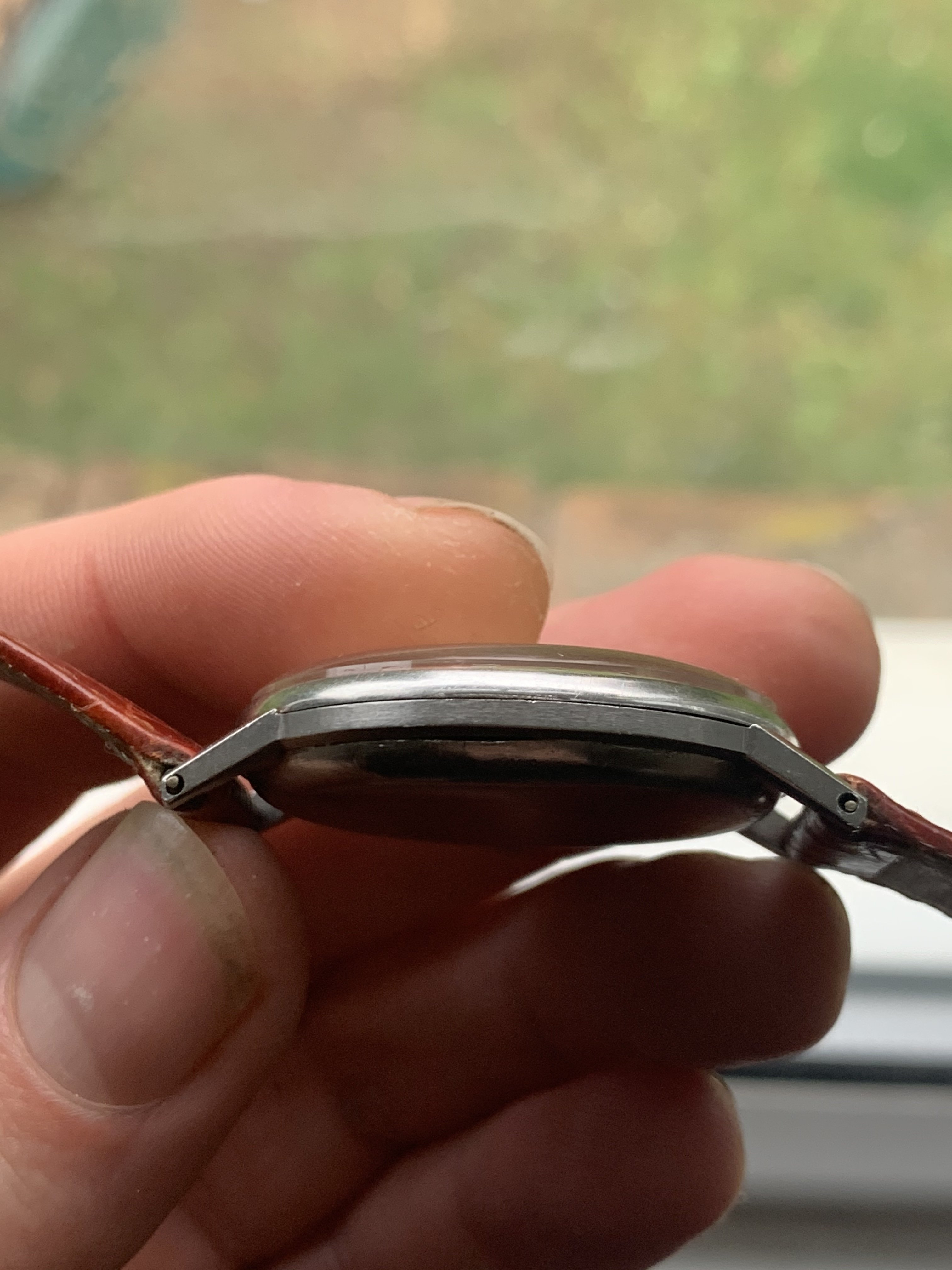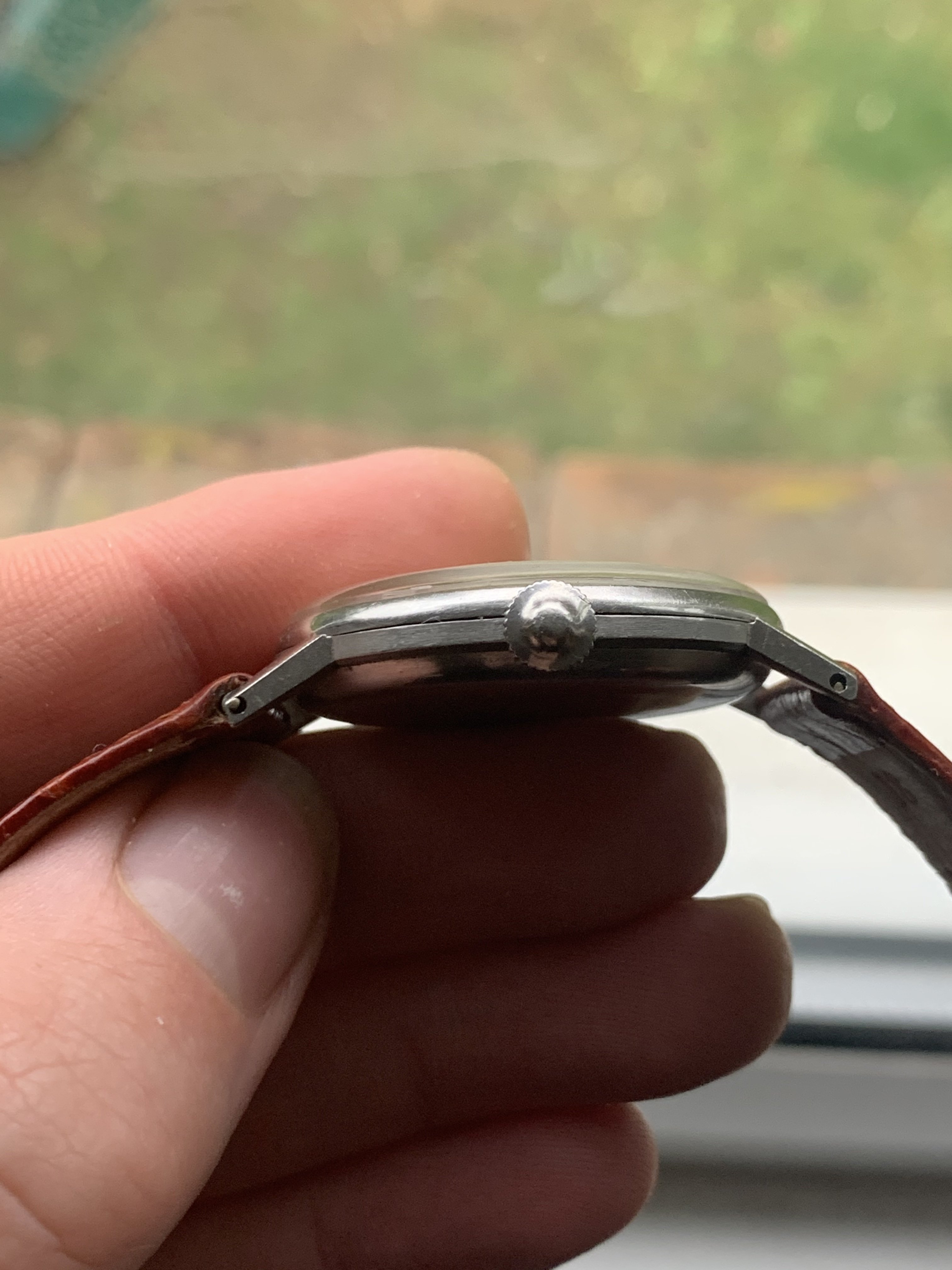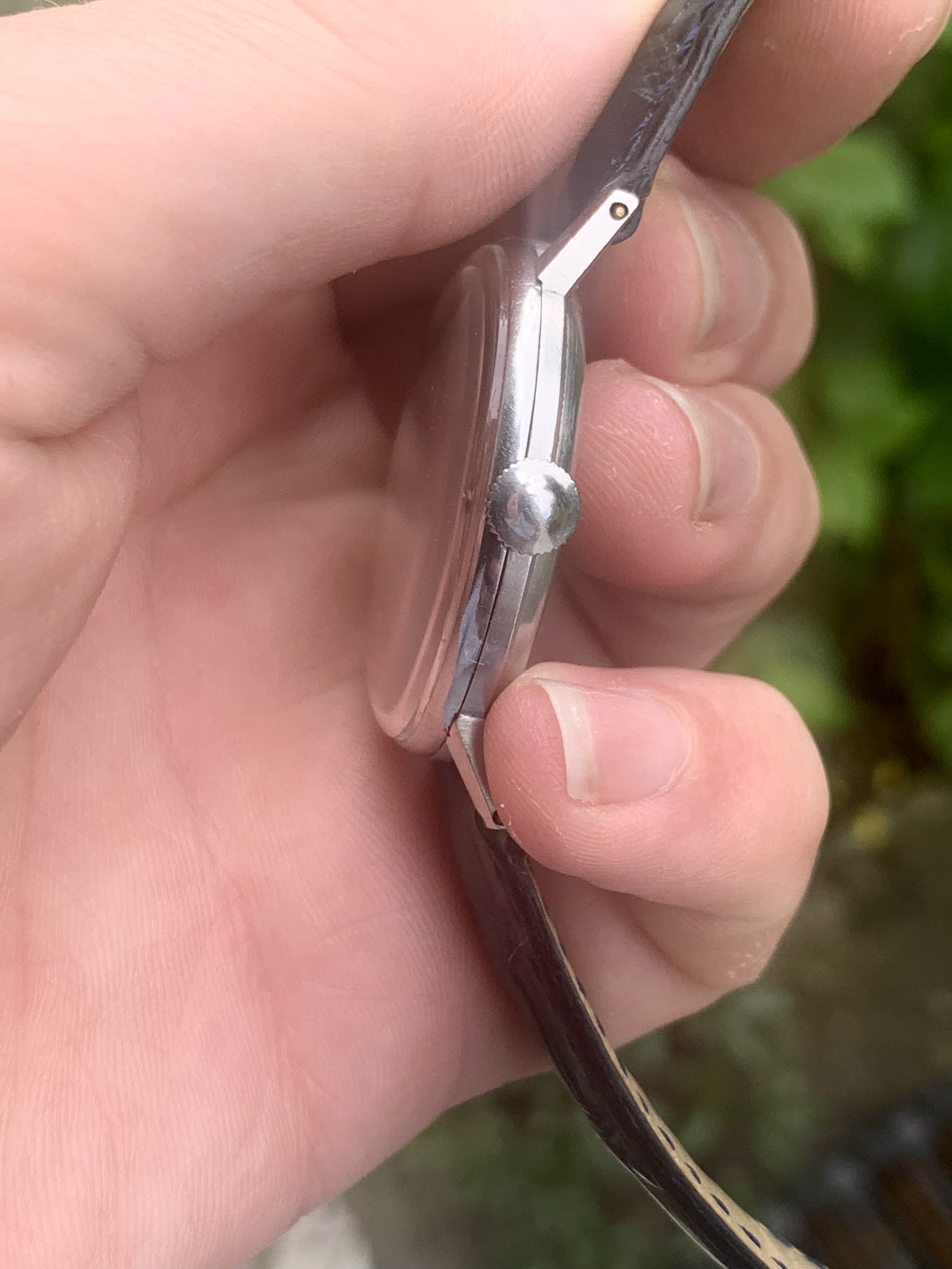 The case is sharp and appears to be unpolished, all corners are sharp and bevels in tact, whilst many watches of this age have misshaped lugs through polishing these are the original shape as pictured. There are a few scratches and marks associated with years of wear, but overall it is in good condition.