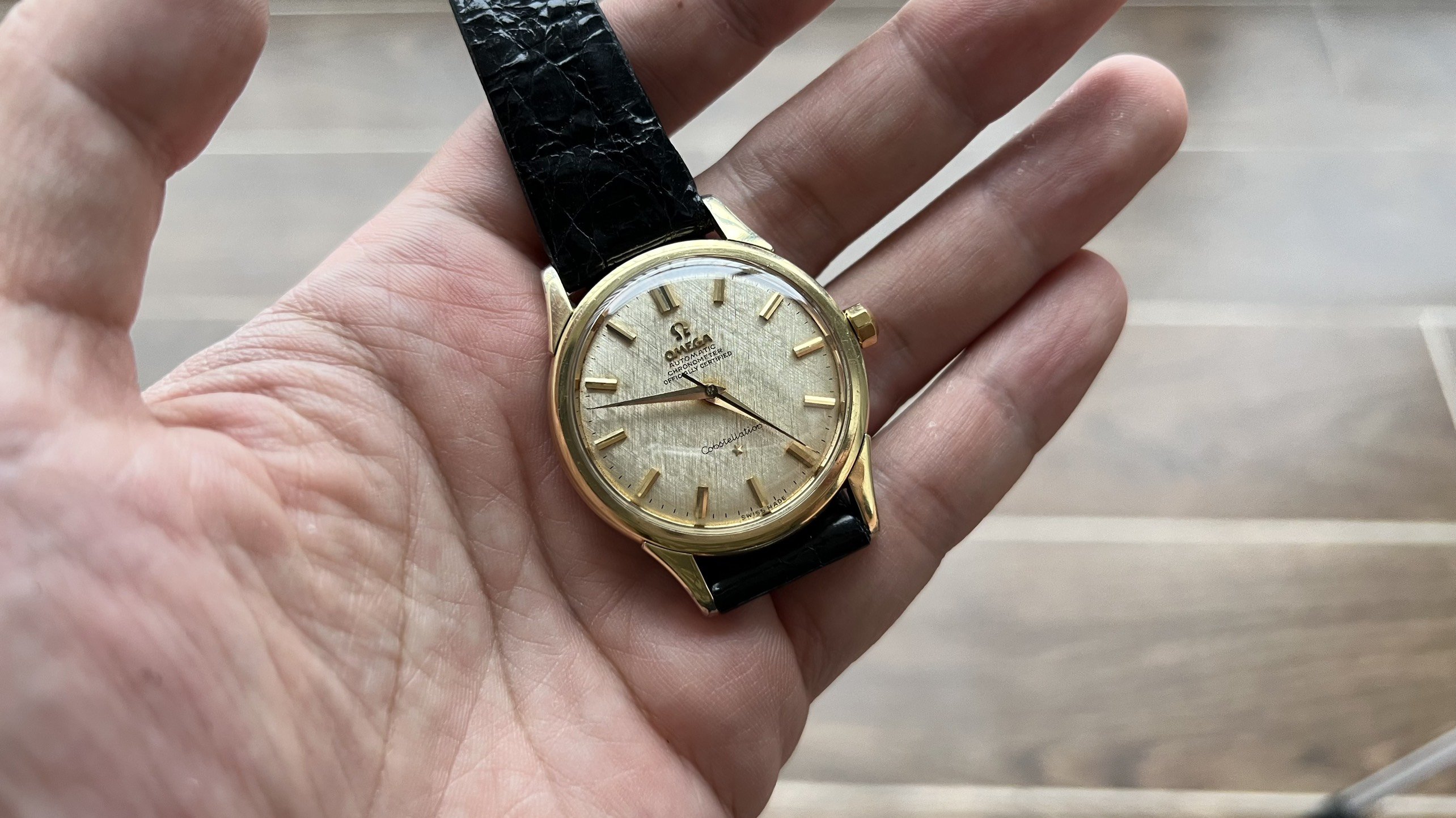 - Movement: Omega Cal 505, SN in 16mils range date it to 1958.