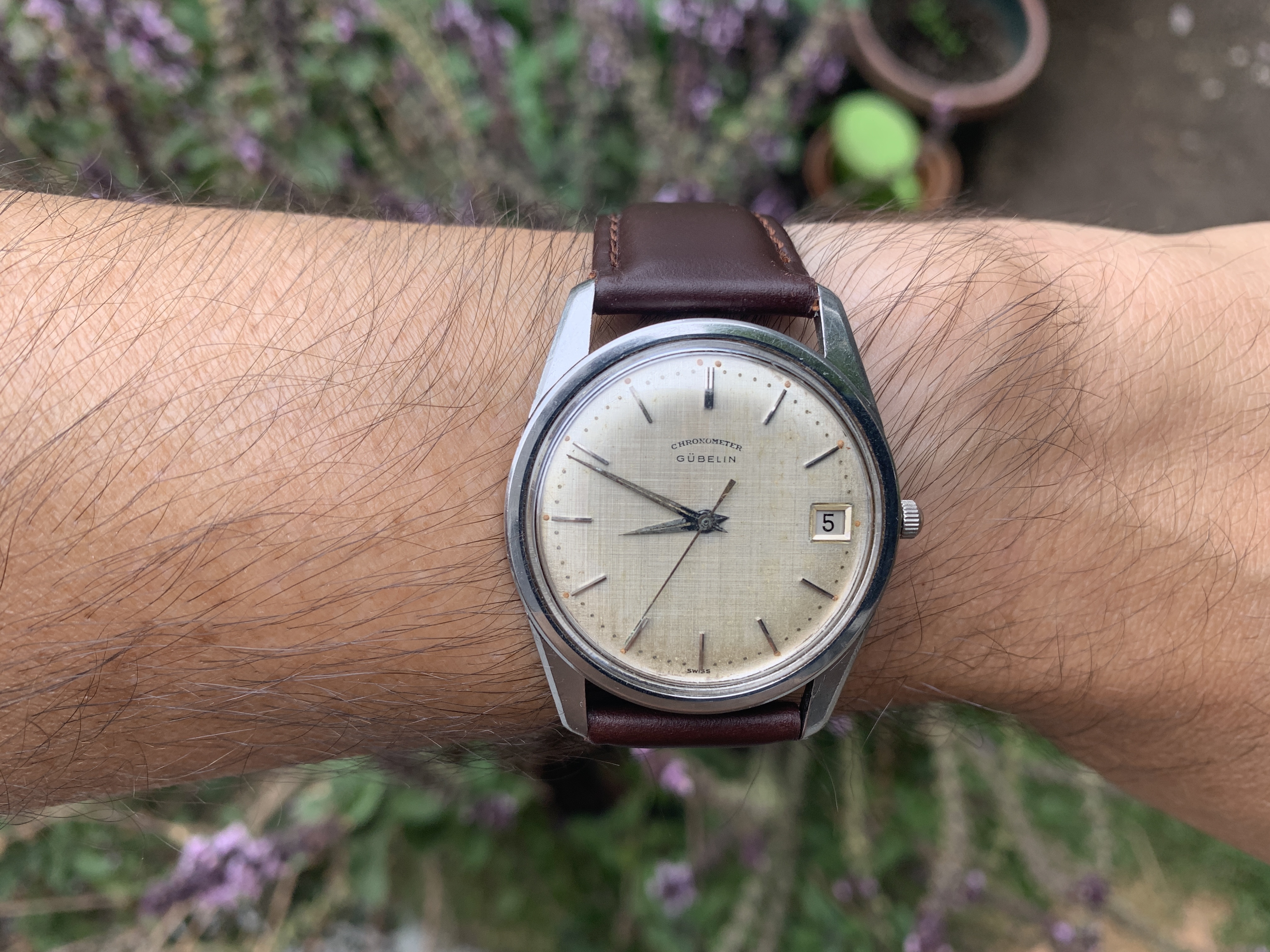 ·This is definitely one you don’t see every day - a midcentury Gubelin chronometer with a very sweet linen dial!