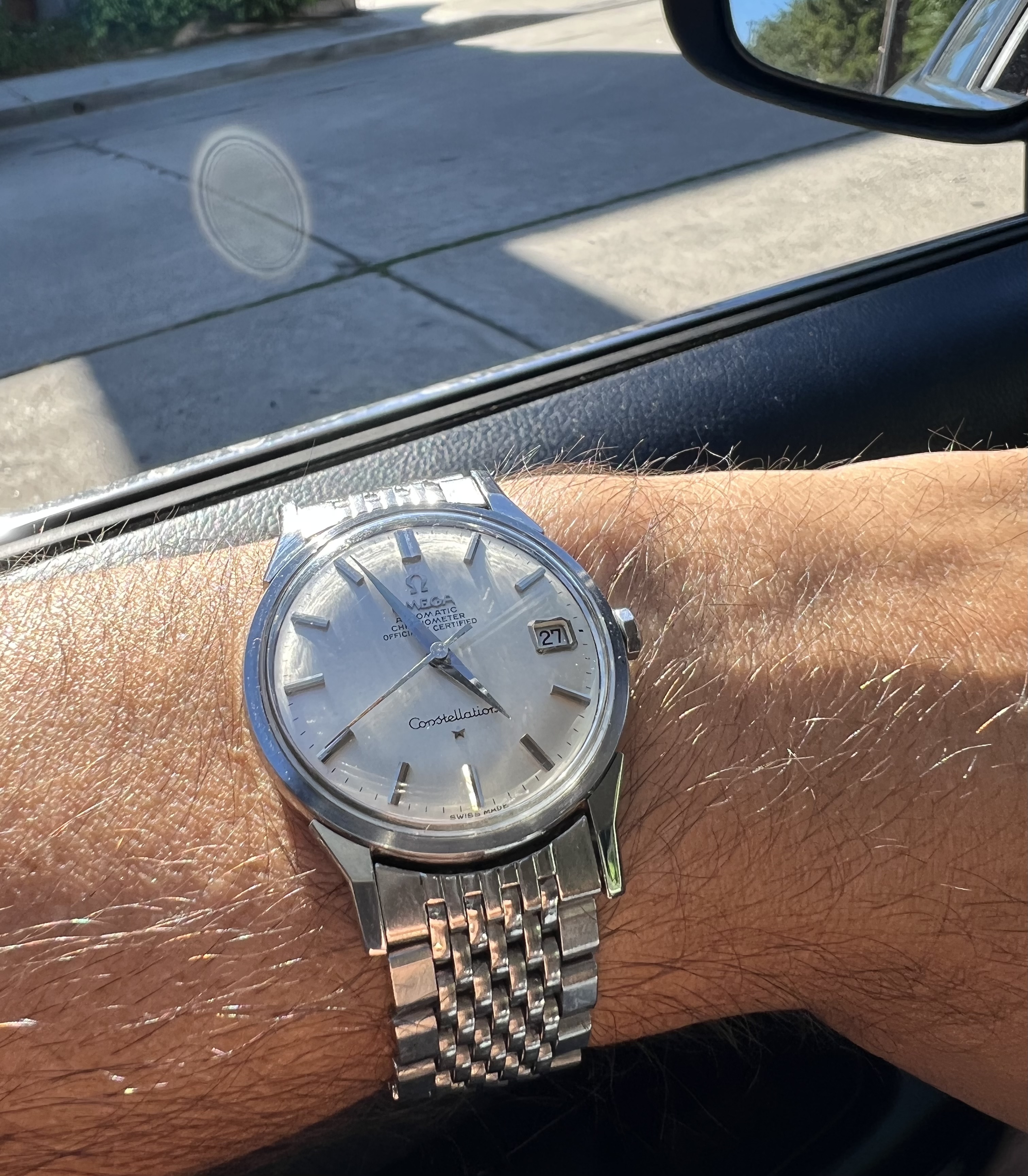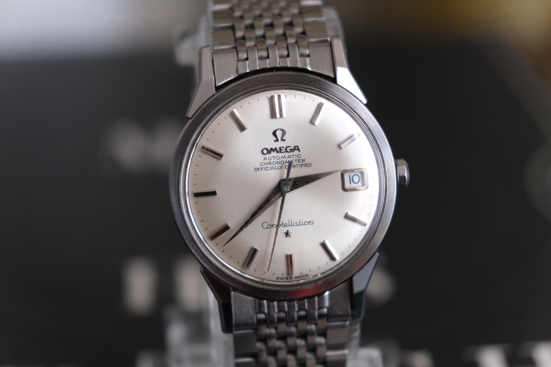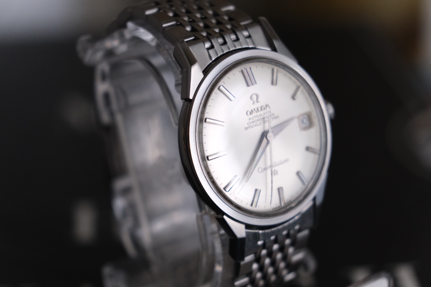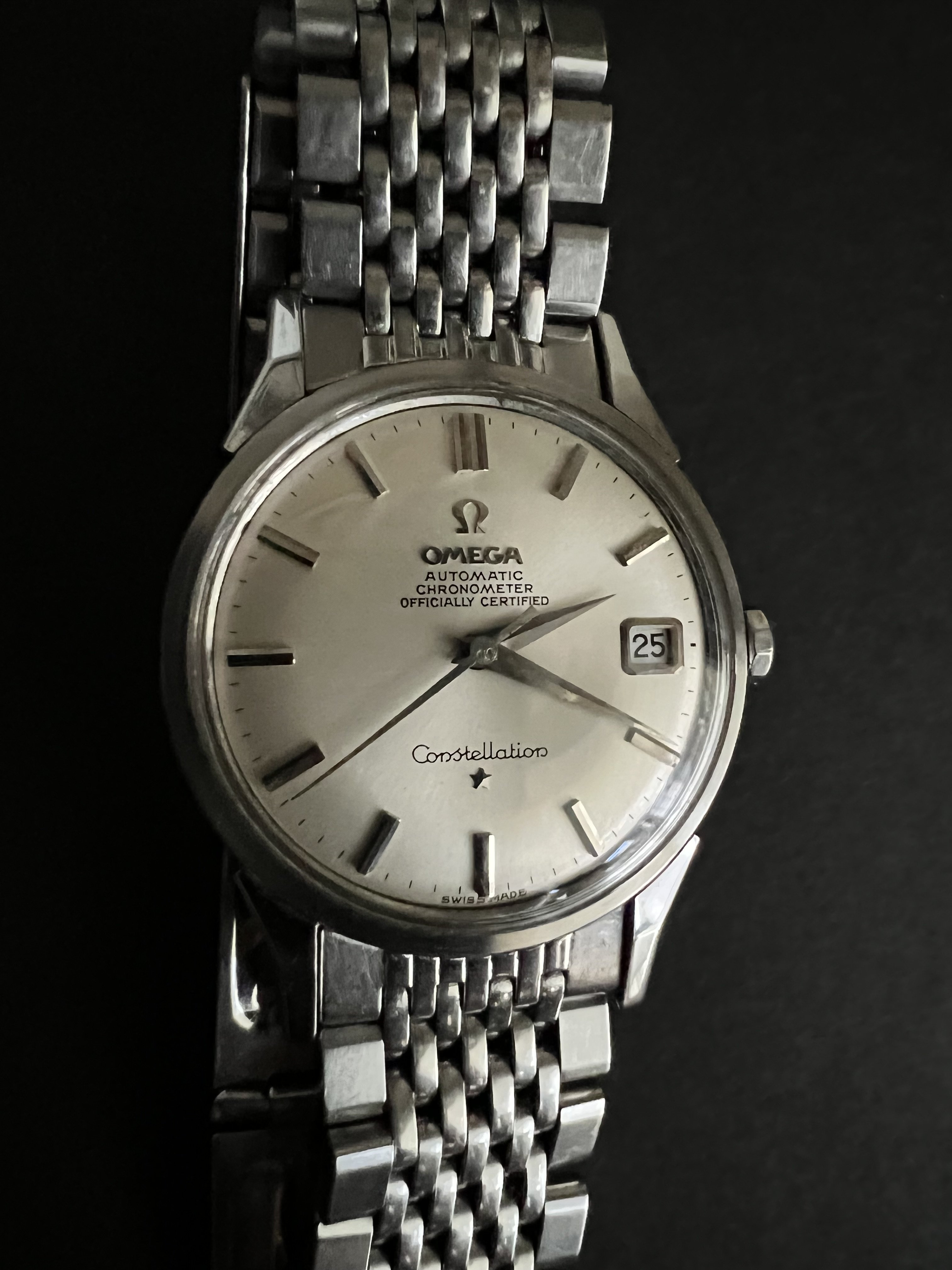 Offering up my 1966 Omega Constellation, reference 14902 62 SC with its BOR bracelet. Dog leg case with the dome dial - and a BEAUTIFUL dial it is! Case is beautiful as well, with nice defined lines and a very crisp medallion. Lots o' pics!
