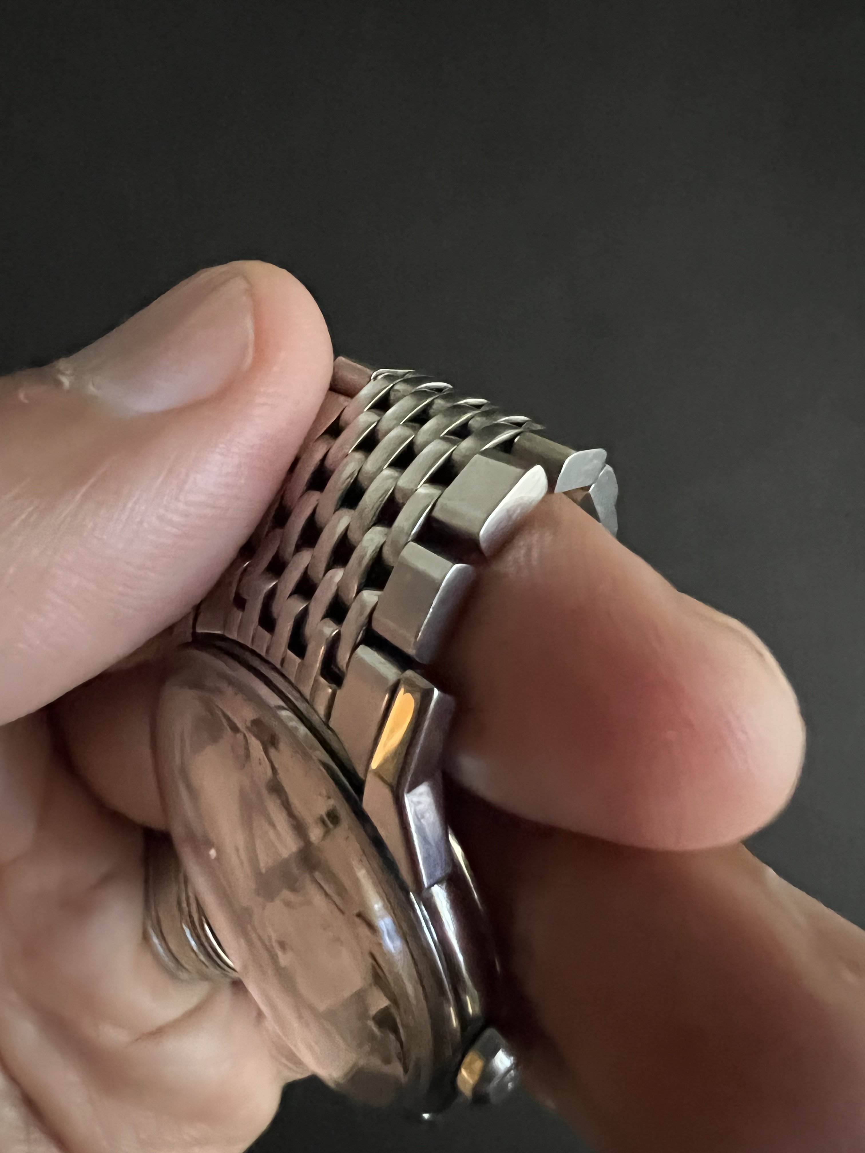 The 1037 beads of rice with matching 570 end links is fantastic, with minimal wear on the clasp. Currently sized for my just over 6.5 inch wrist, and it’s loose on the closest clasp adjustment, so should fit up to a 7.5 inch wrist, or slightly more.