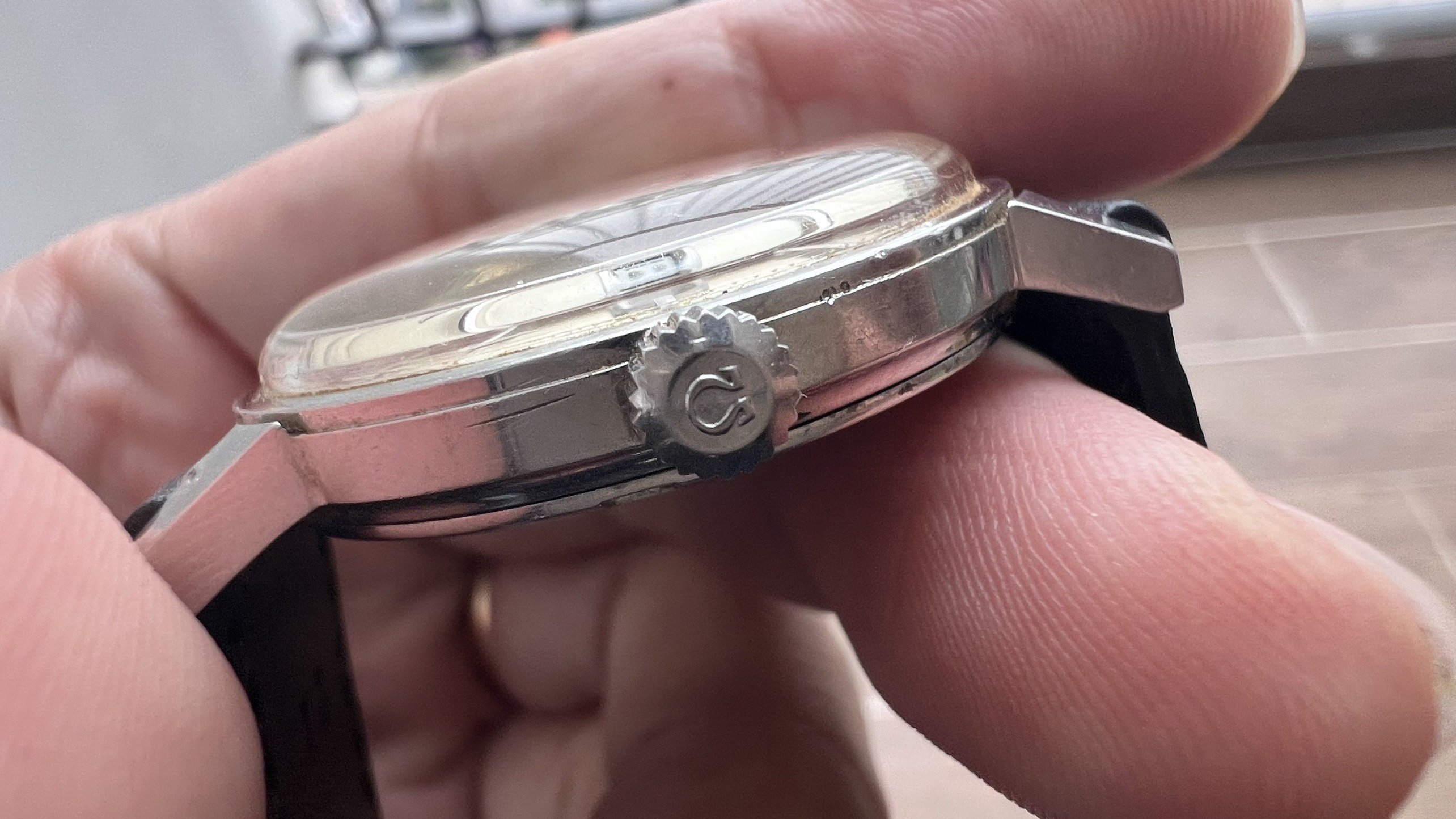 - Crown: Original Omega crown.