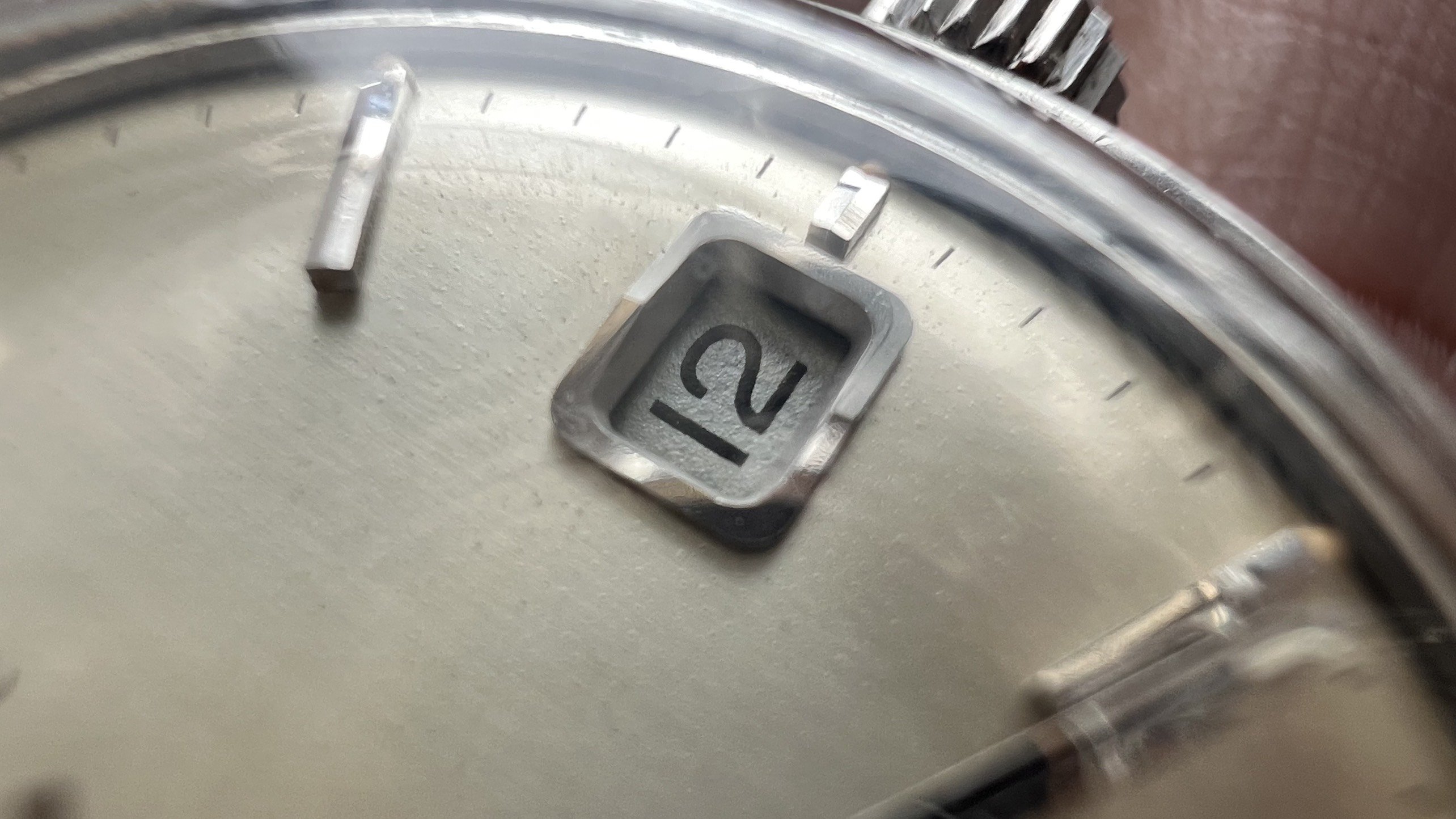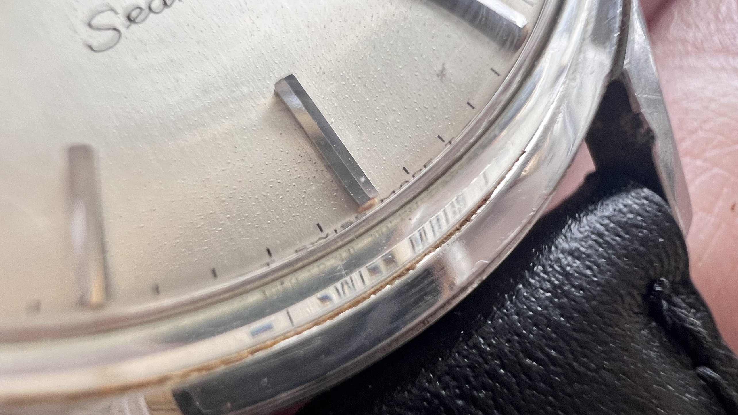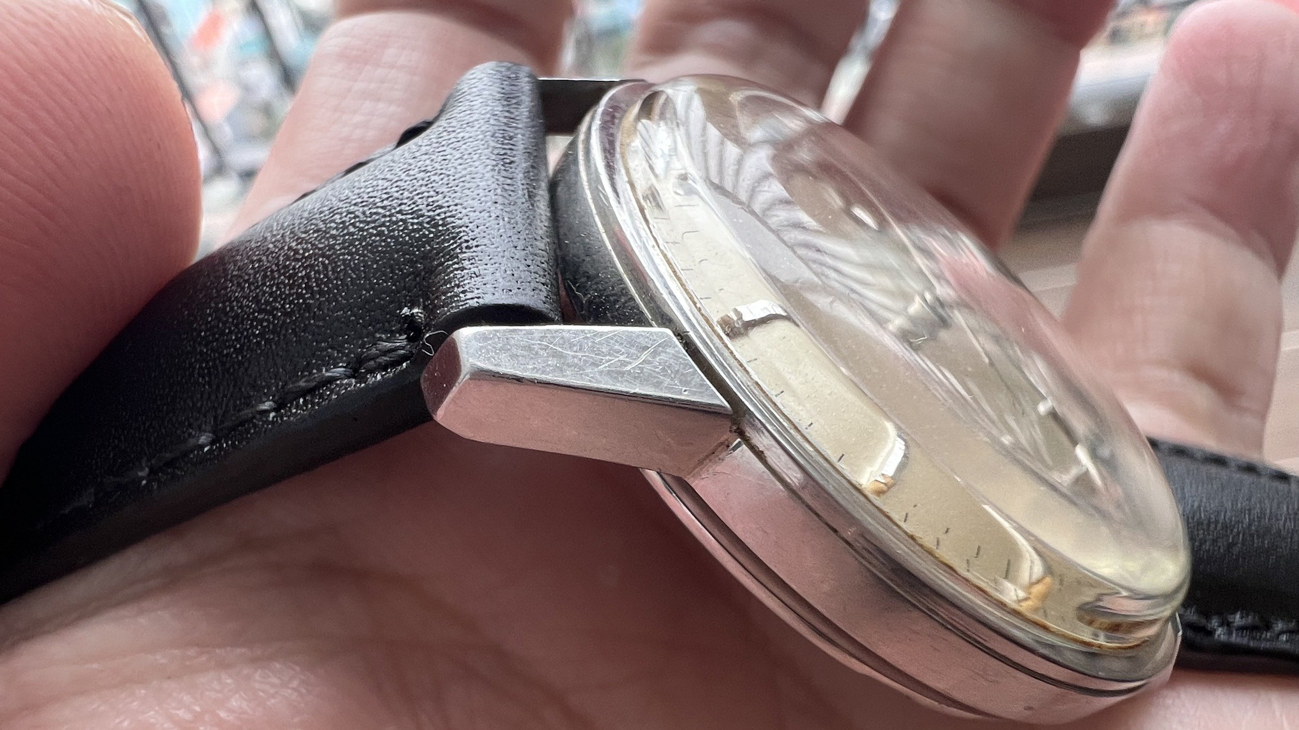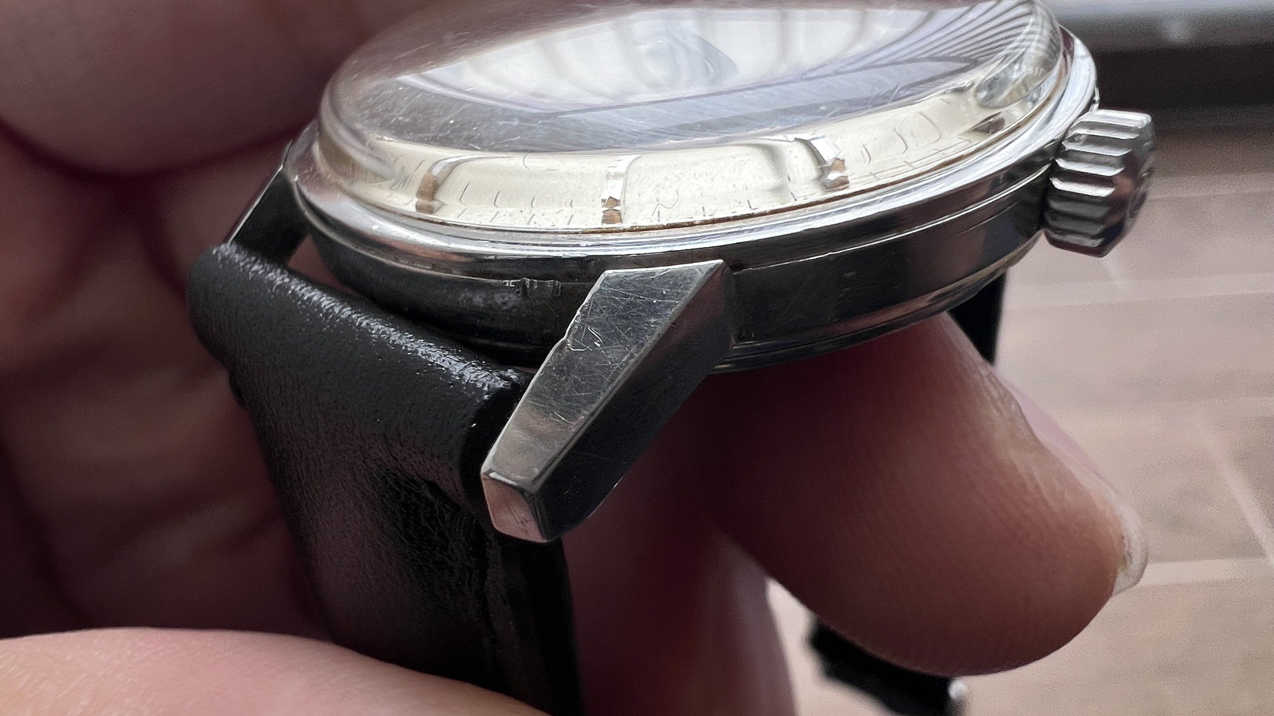 - Case: Unpolished case, with hairline scratches and a little dent at bottom right lugs.