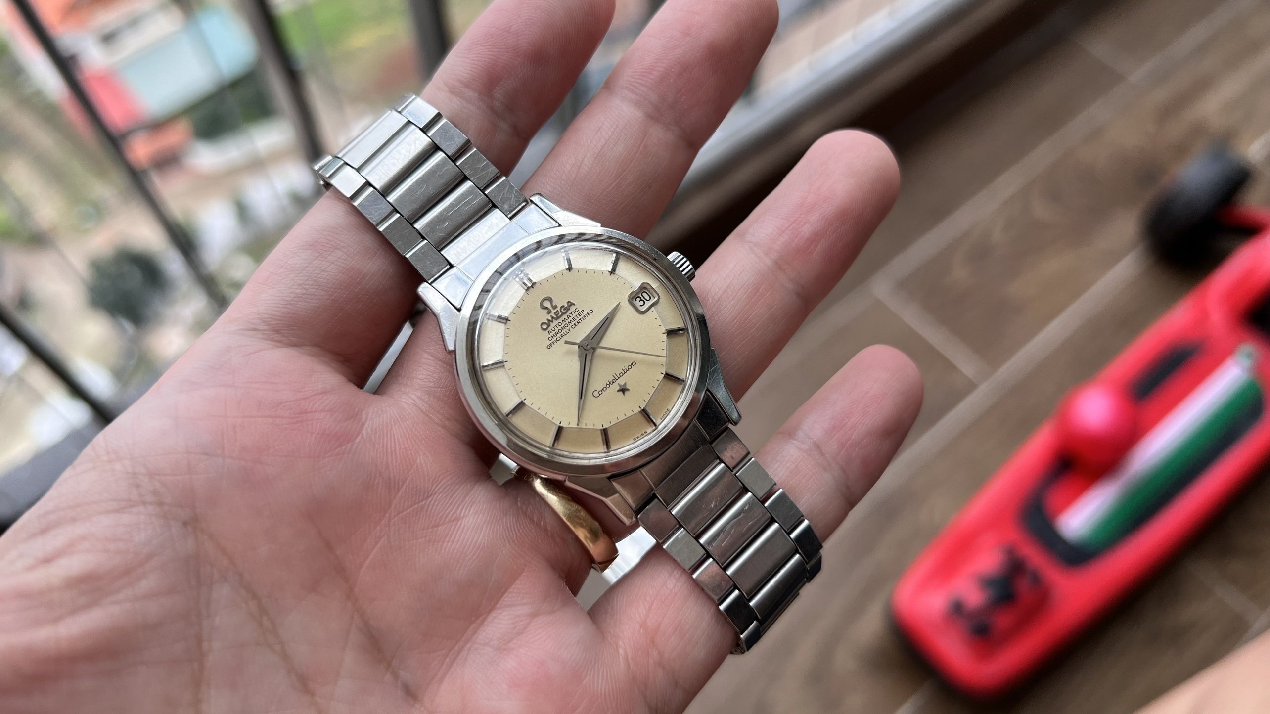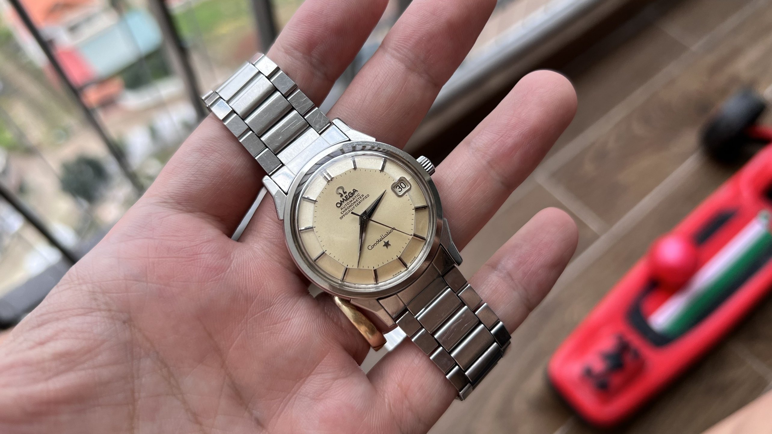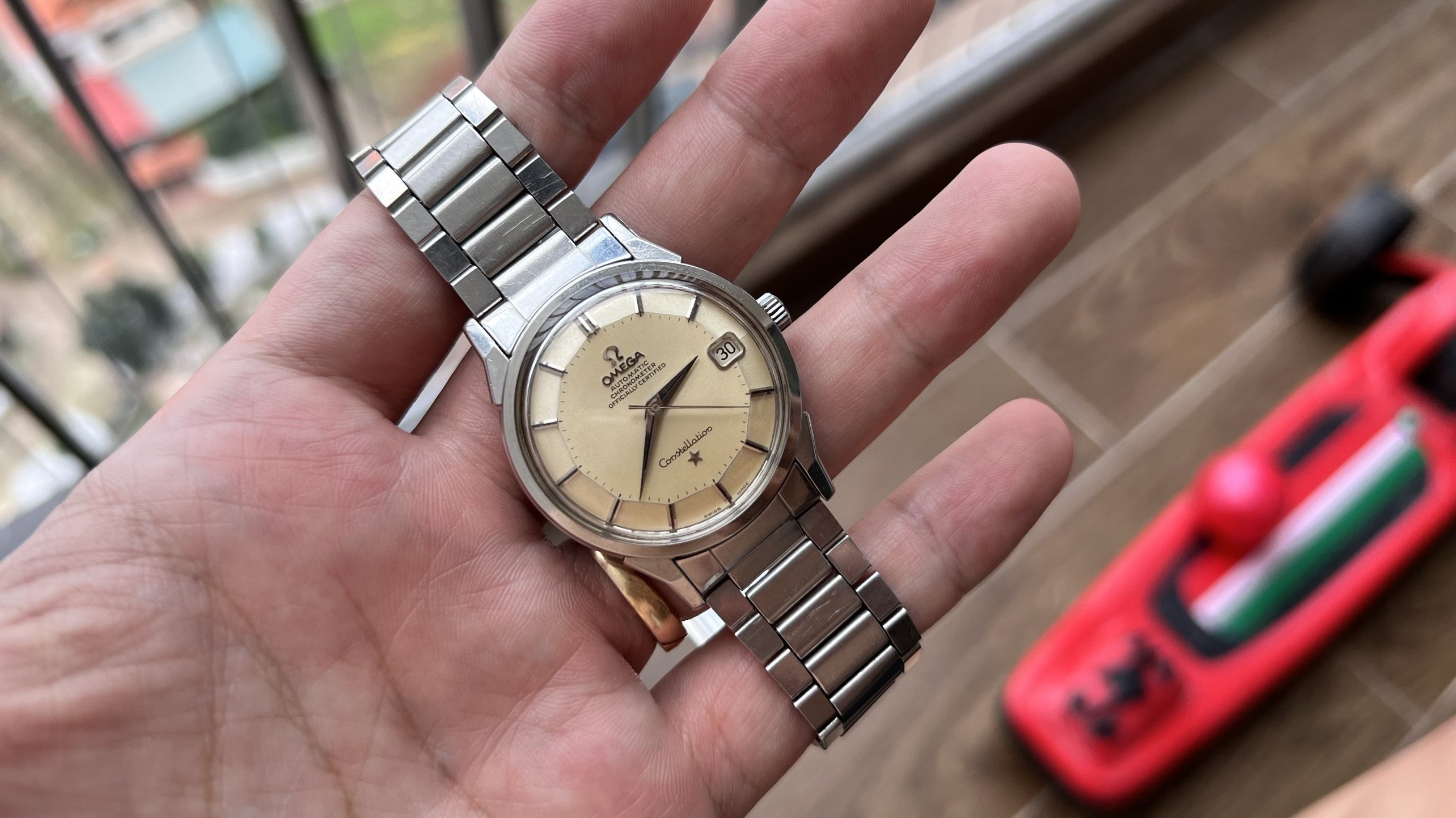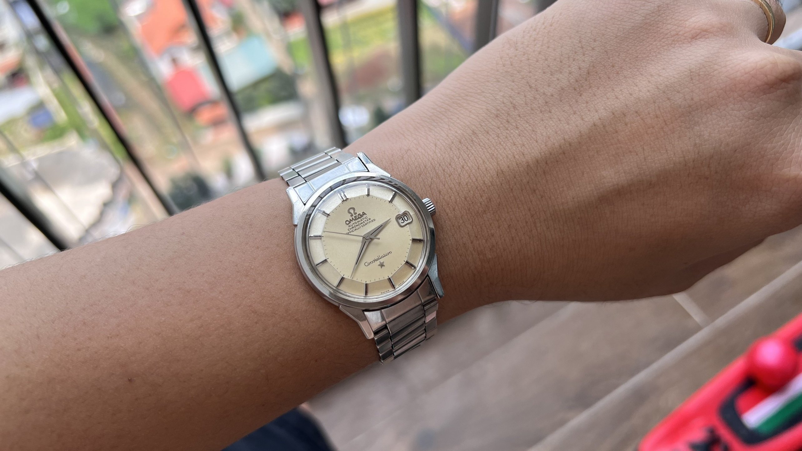 Brand: Omega, Model: Constellation, Reference No.: 168.005, Movement: Omega Chronometer Automatic Cal. 564, S.N: 25'XXX'XXX dating the watch to arround 1967