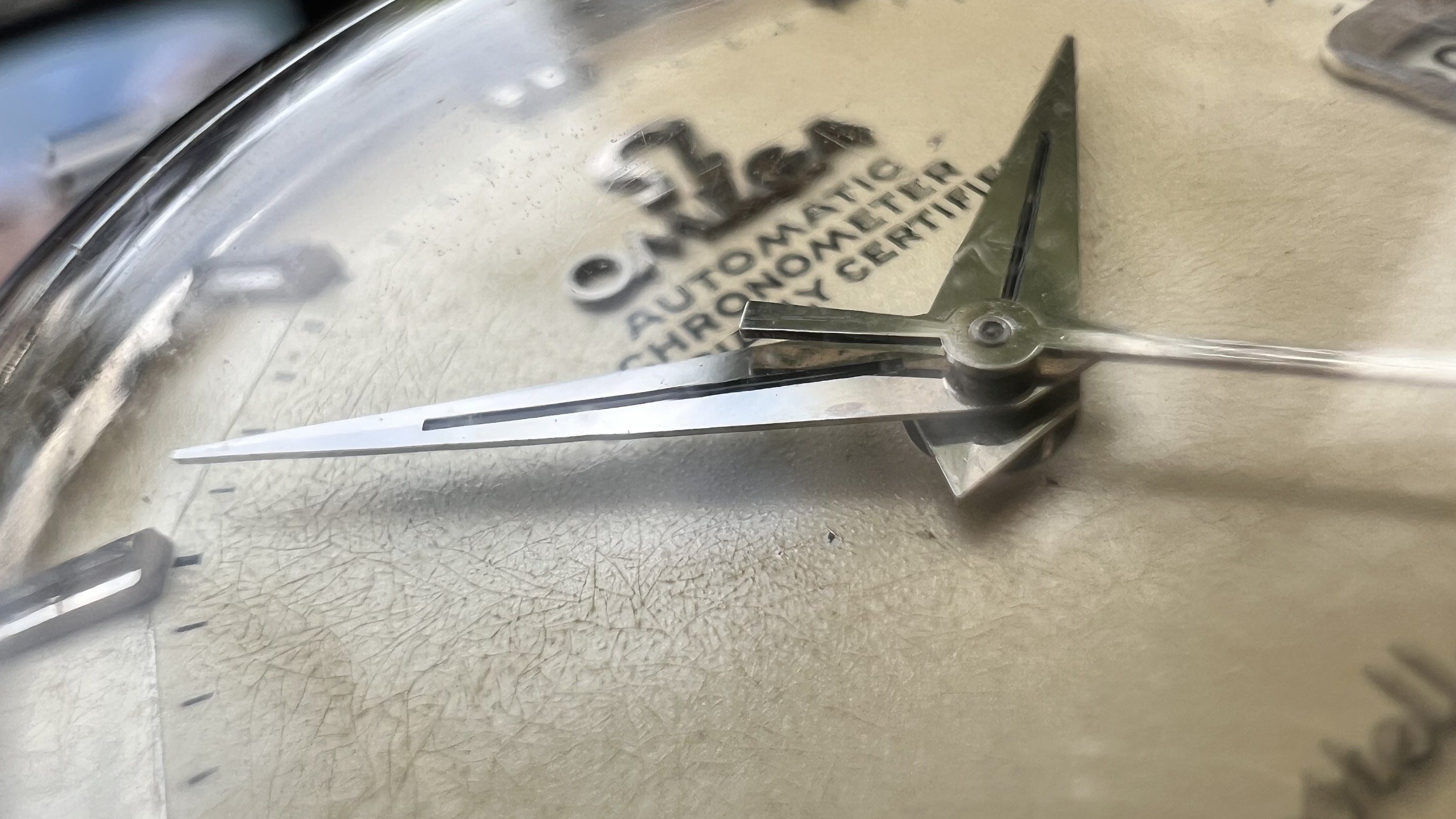 Dial: Original pie pan dial in average condition, turned into nice evenly champagne color. Correct set of dauphine hands in good condition.