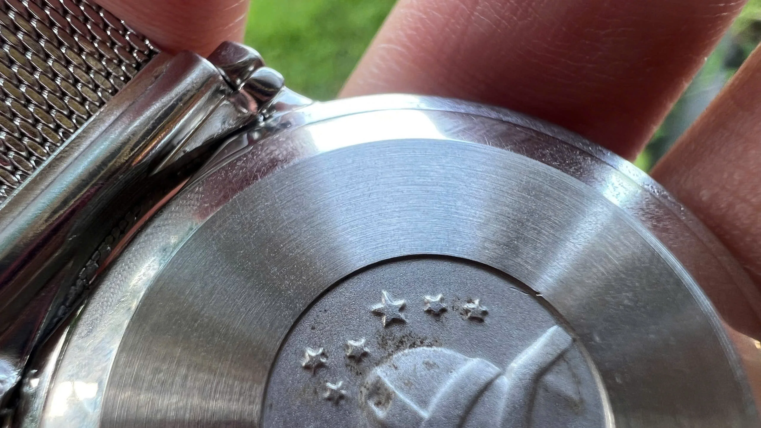 Caseback: Observatory medallion is sharp and well-defined with light aging.