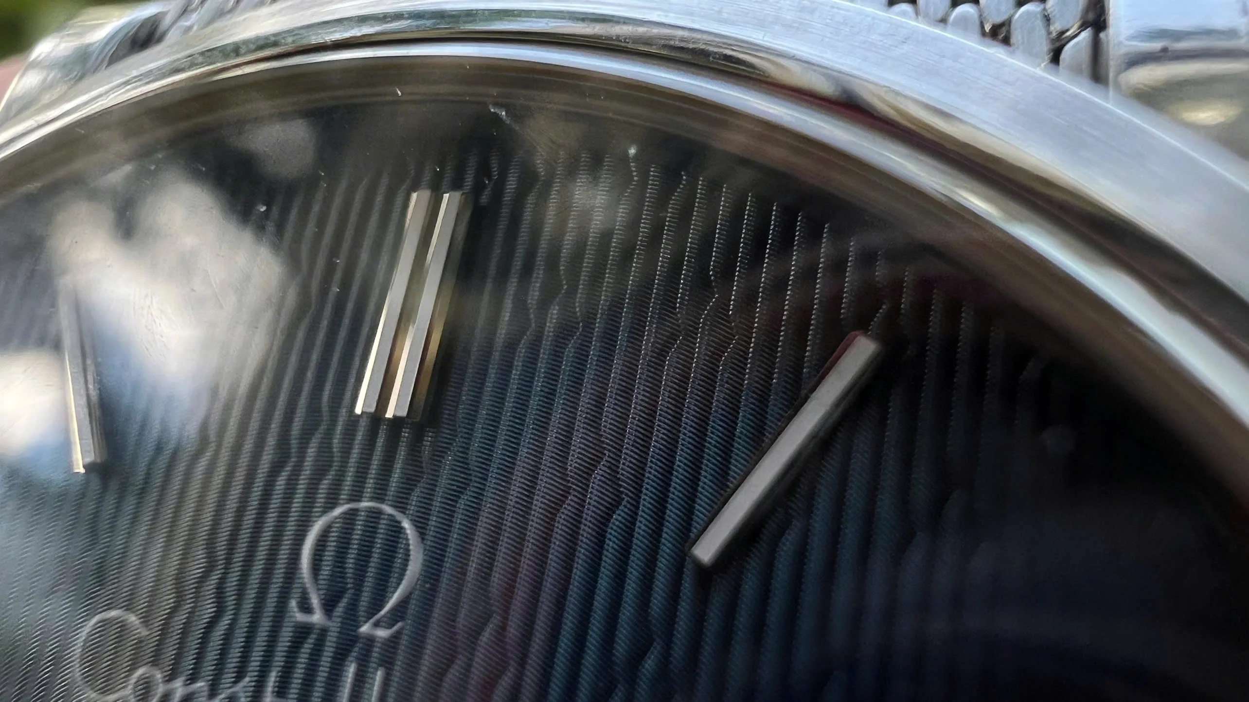 Dial: Original textured blue dial, untouched and in excellent condition. No relume or restoration.