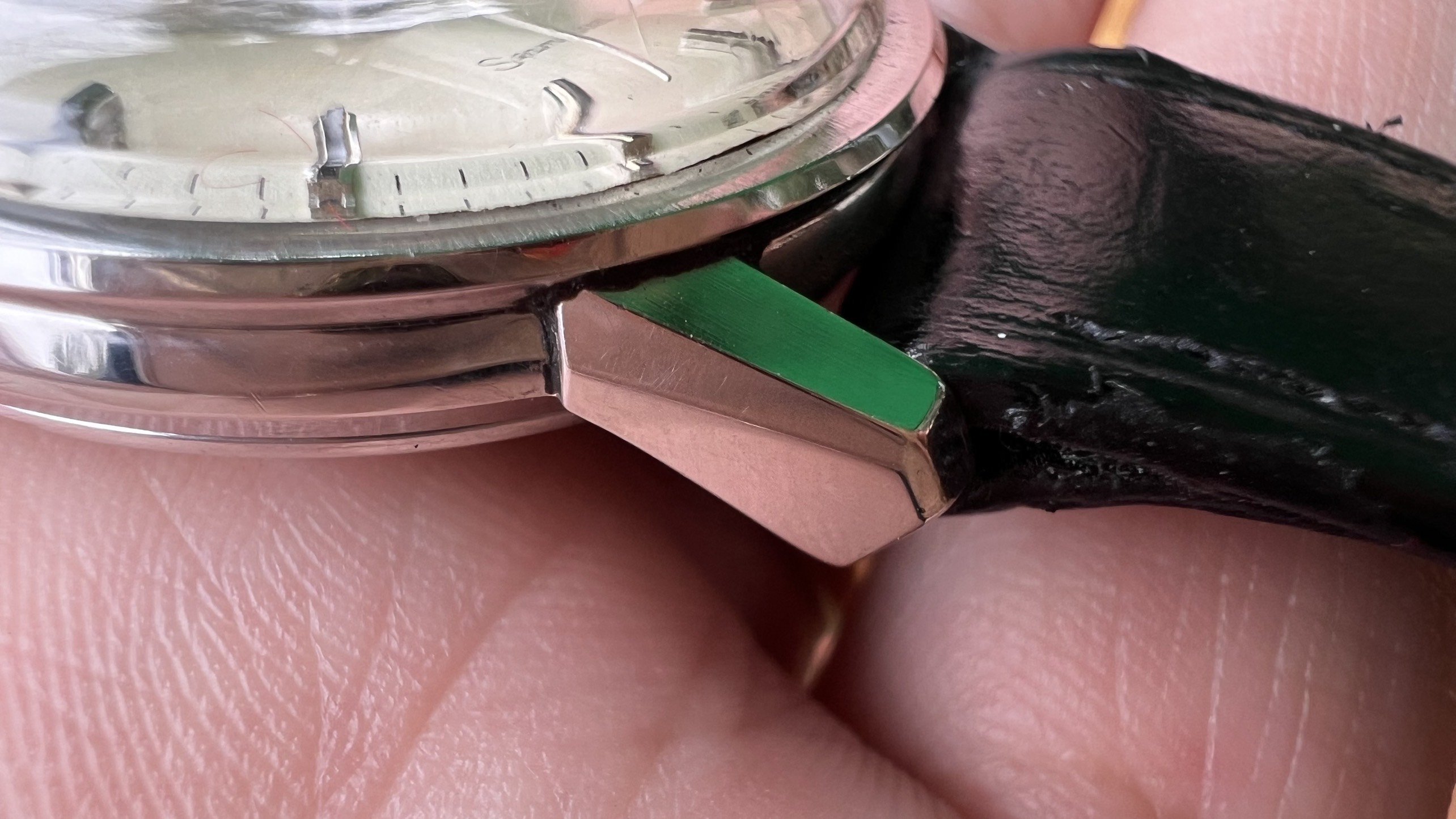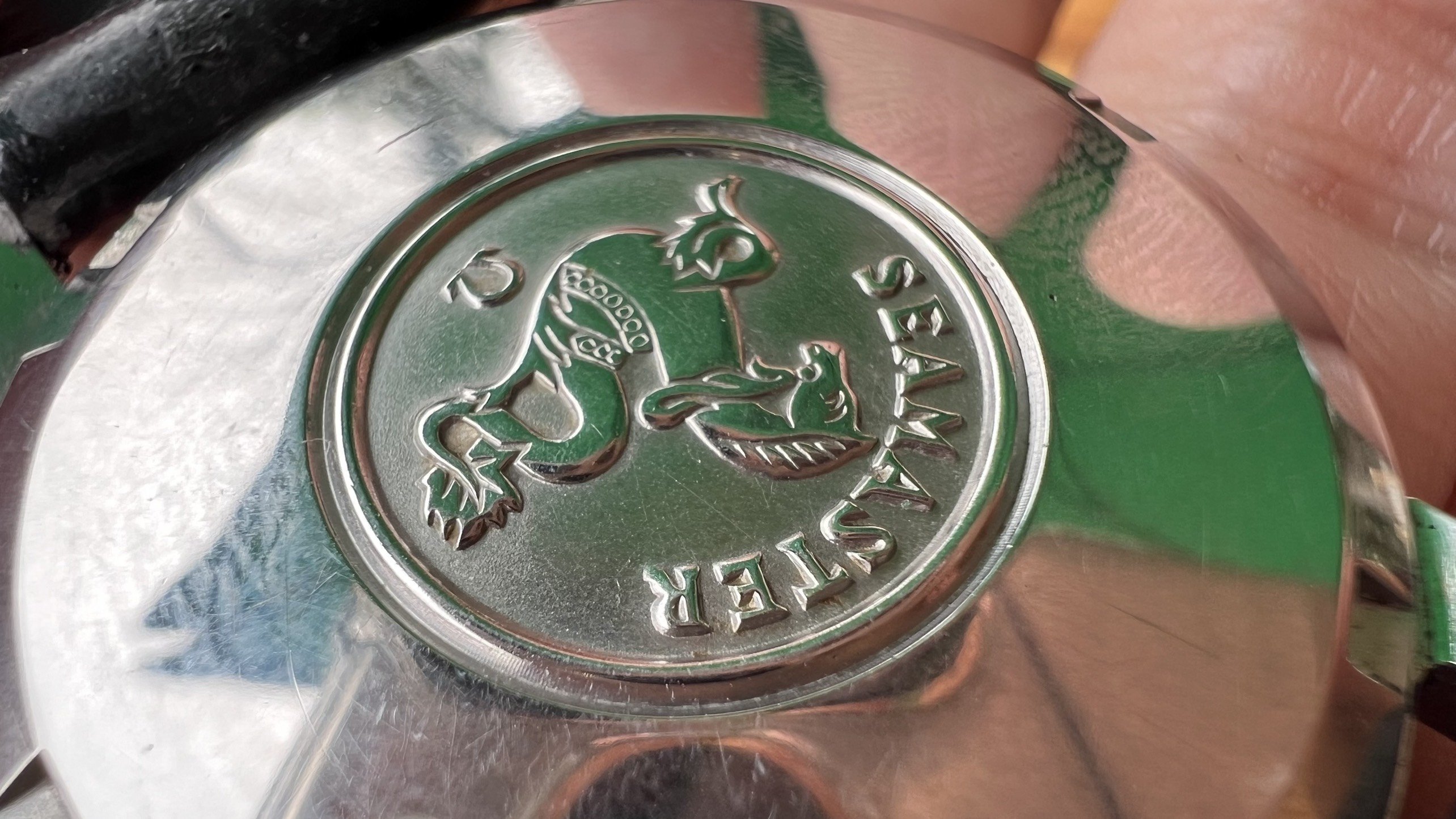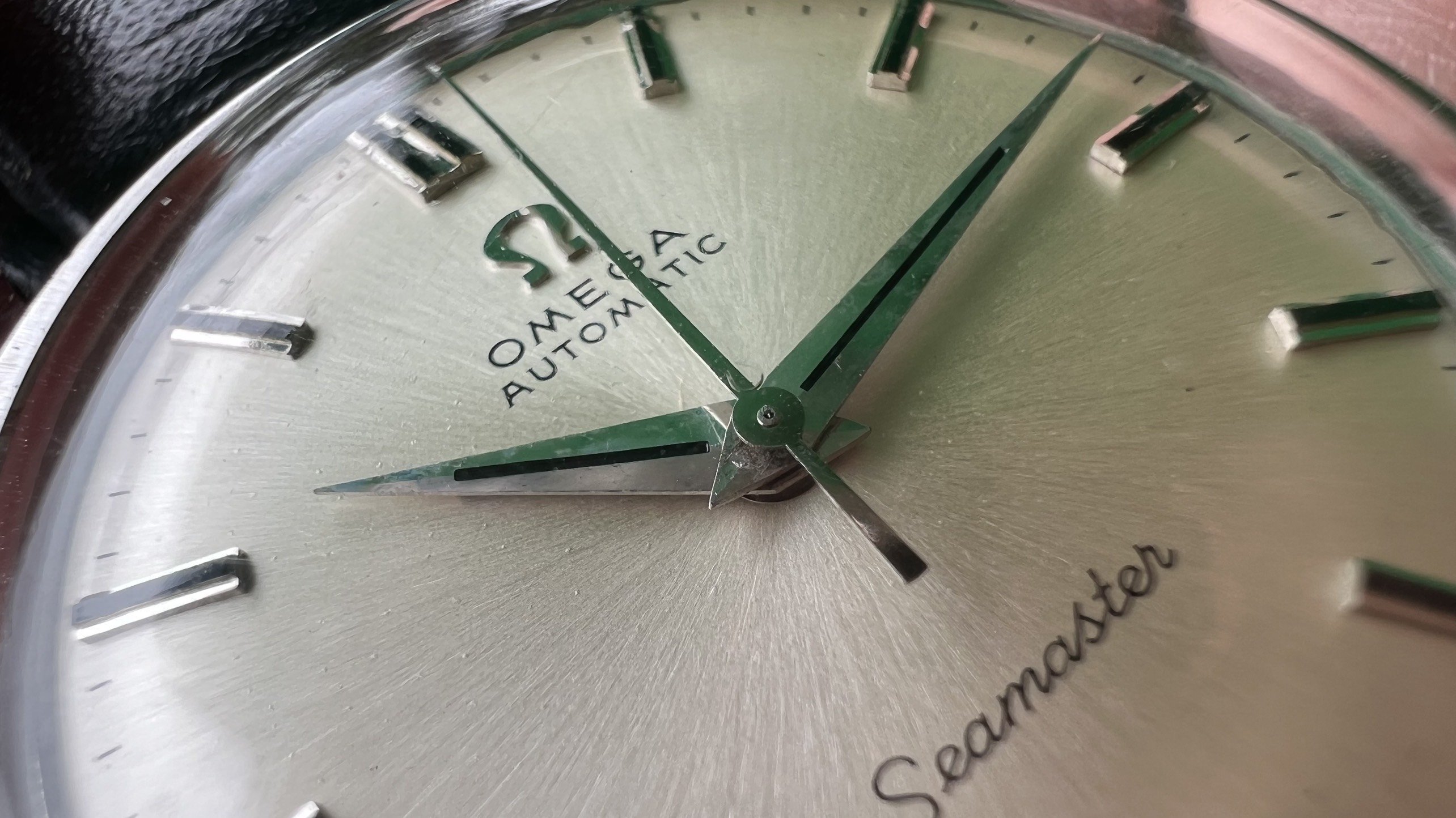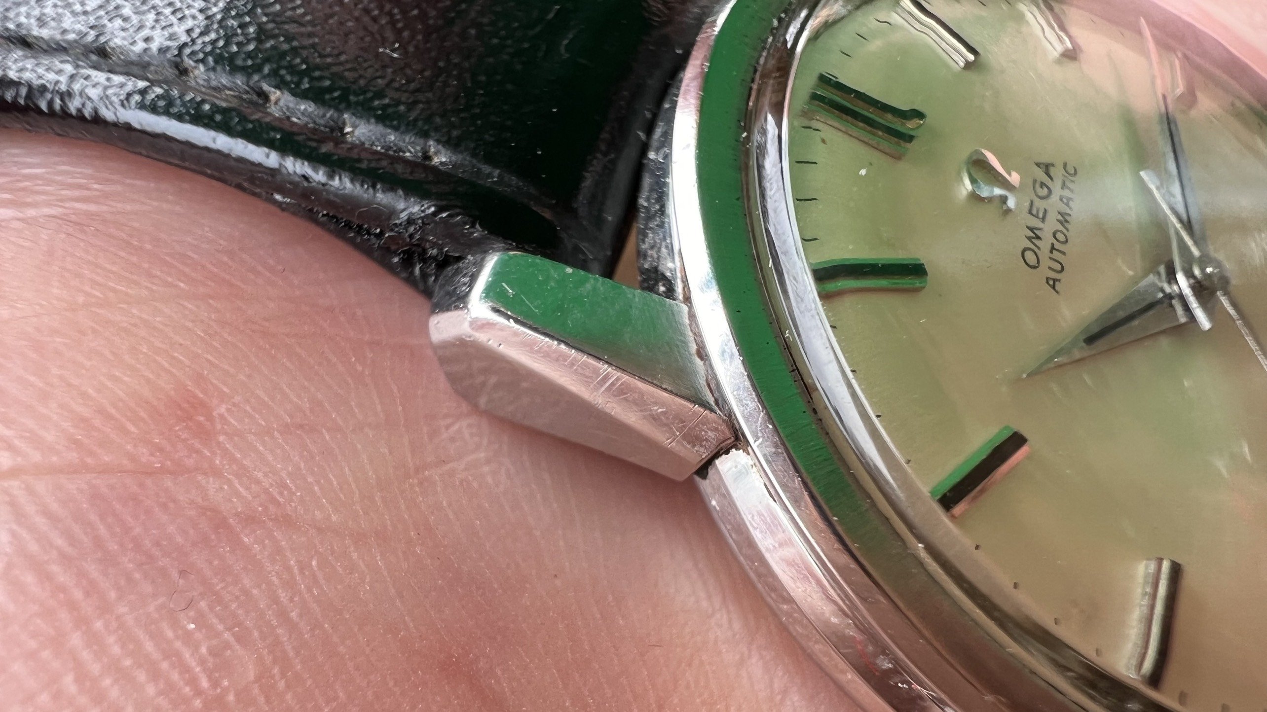 - Case: Sharp case, all facets are well visible, with hairline scratches, probably was polished slightly in the past. Seamaster logo on the back is in good condition.
