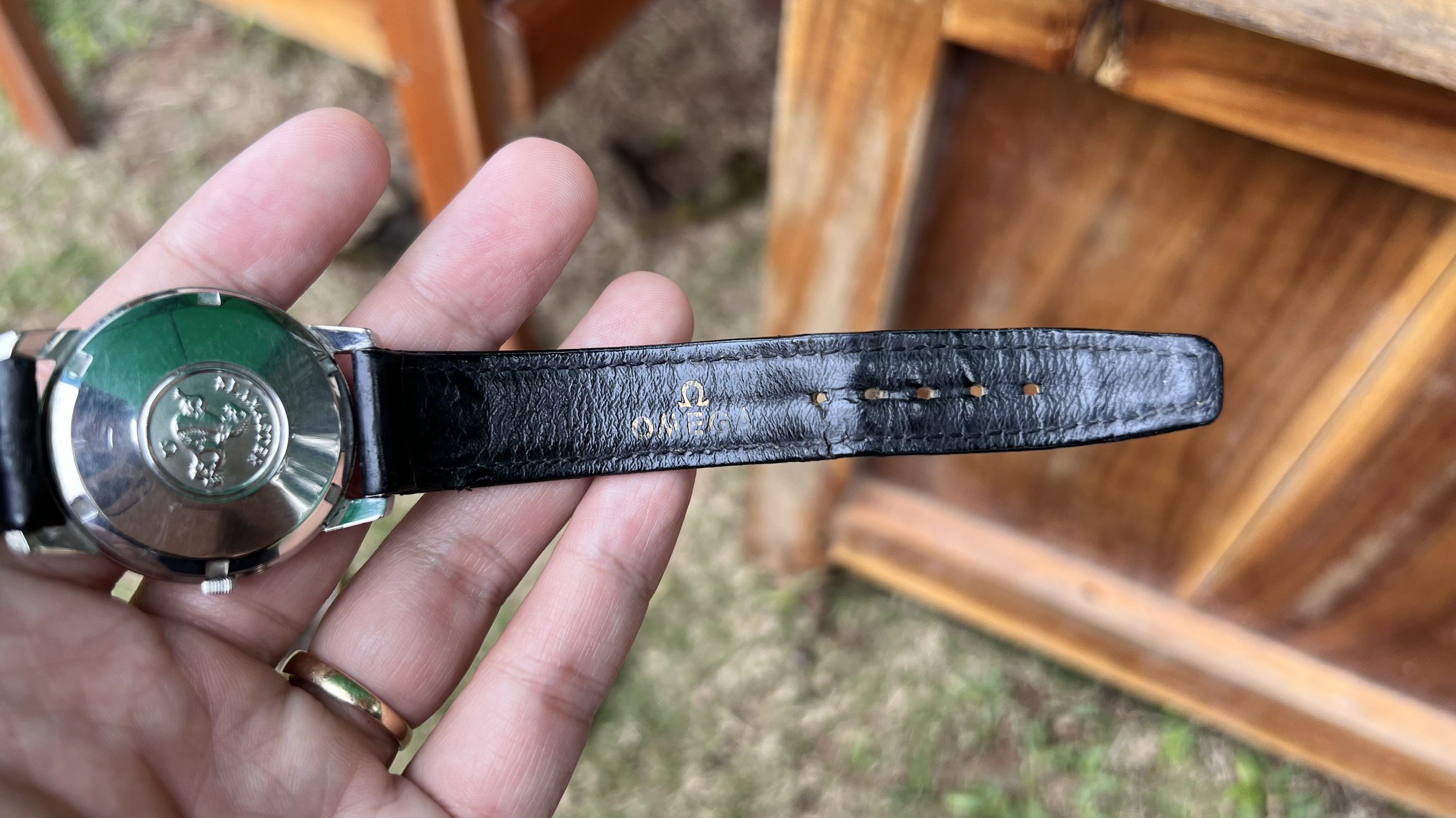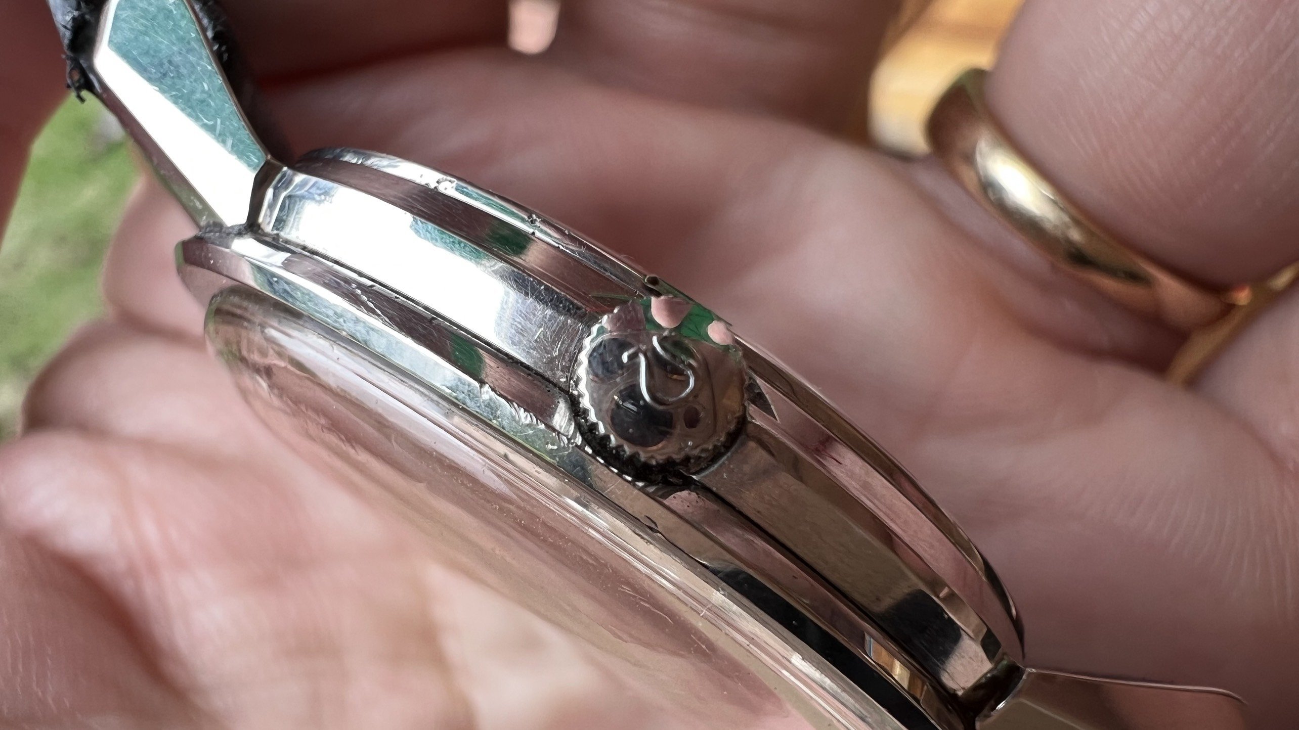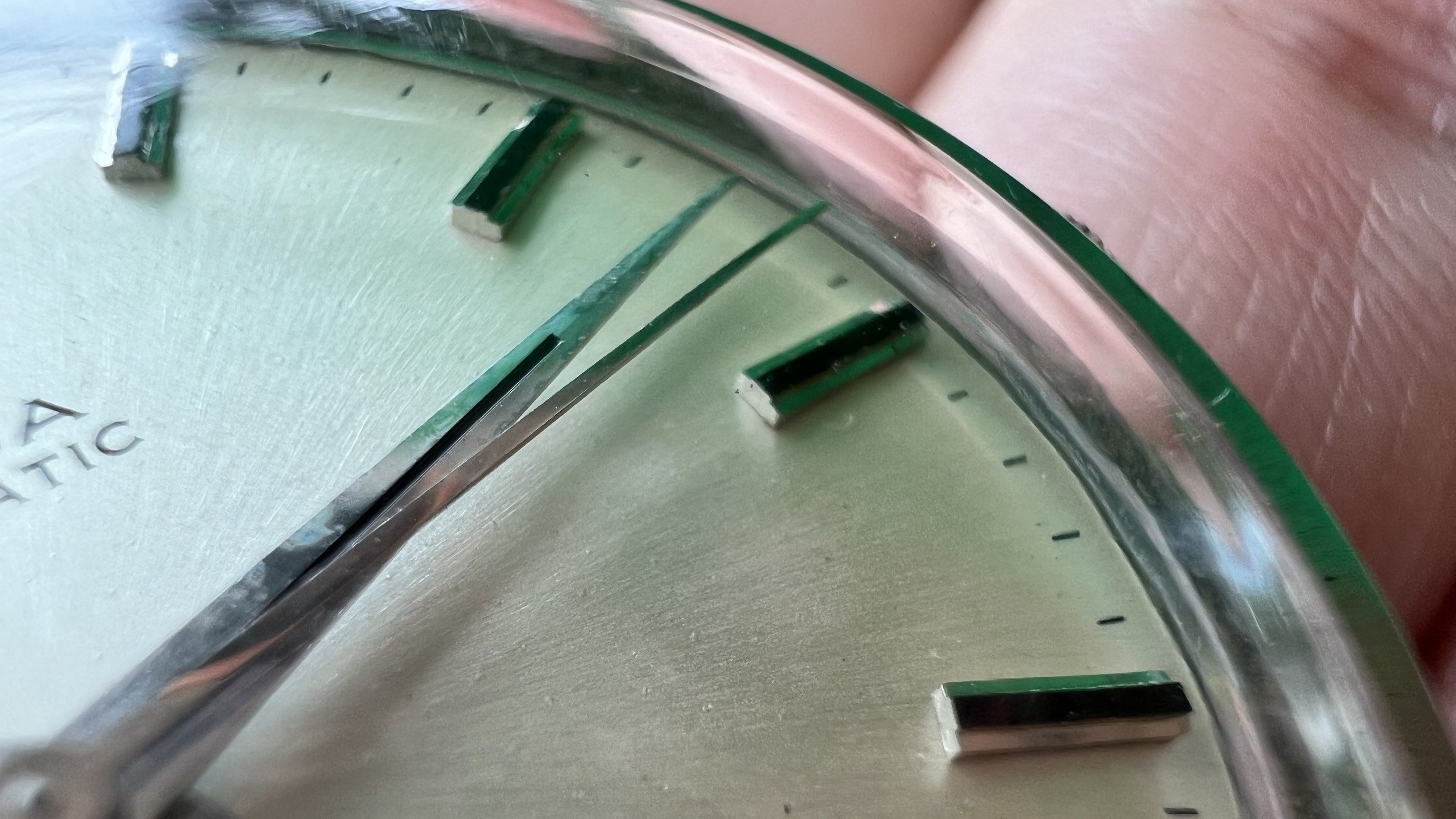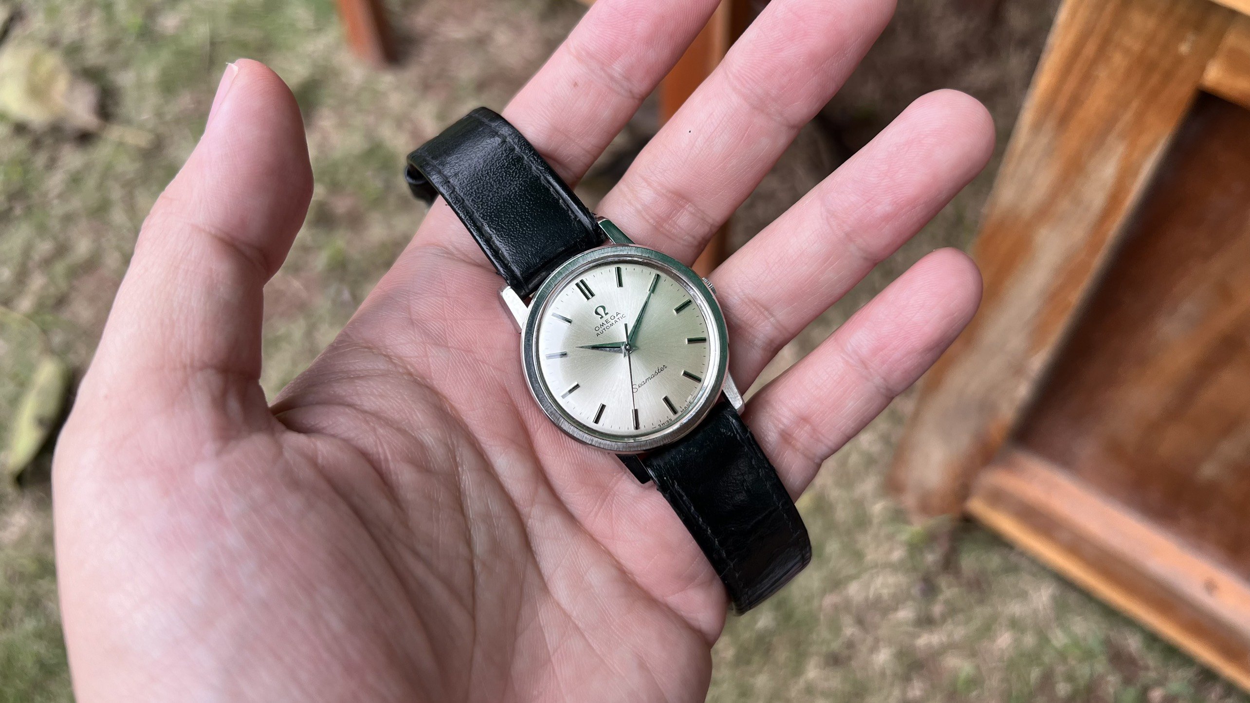 - Case: Sharp case, all facets are well visible, with hairline scratches, probably was polished slightly in the past. Seamaster logo on the back is in good condition.