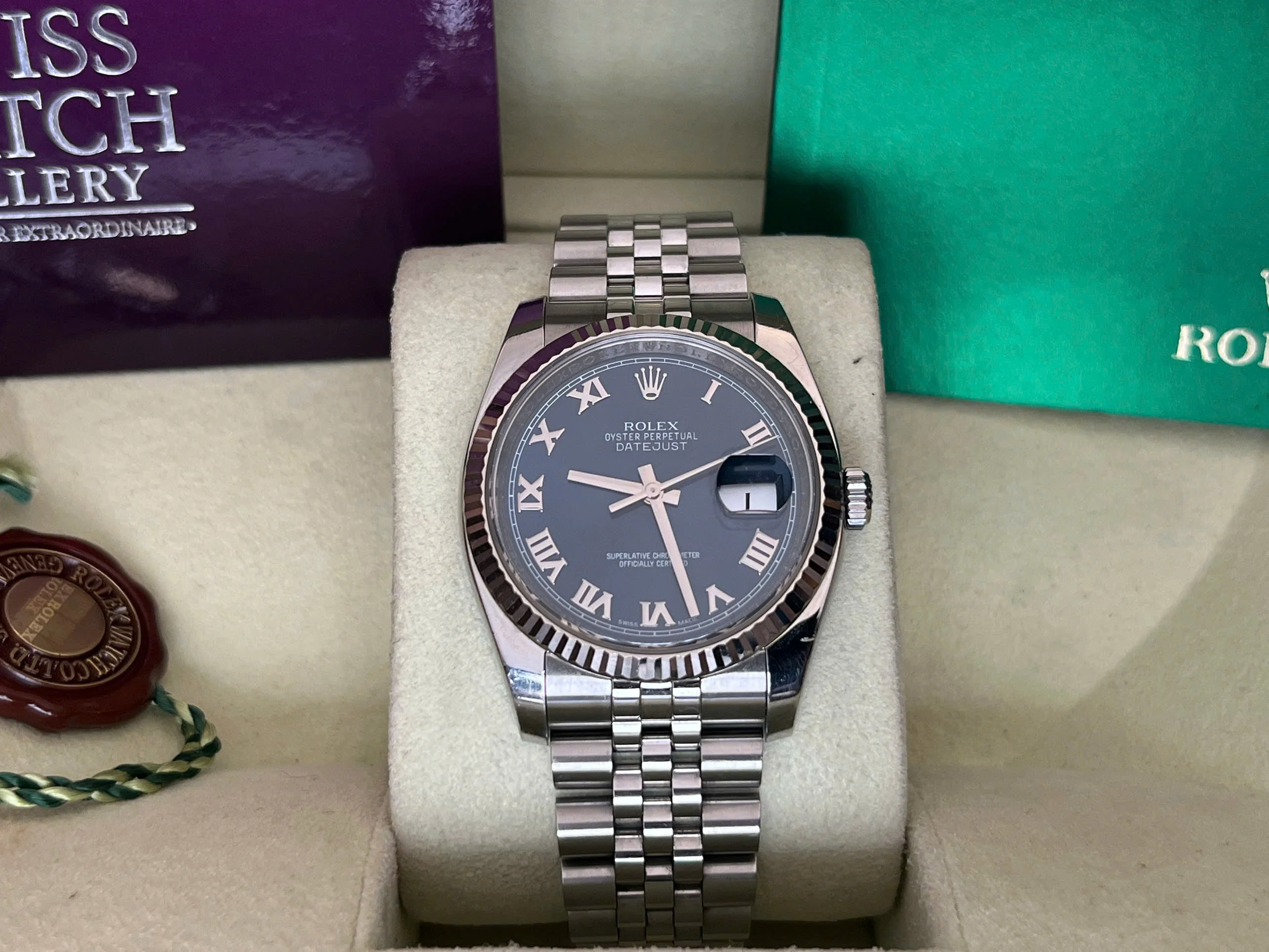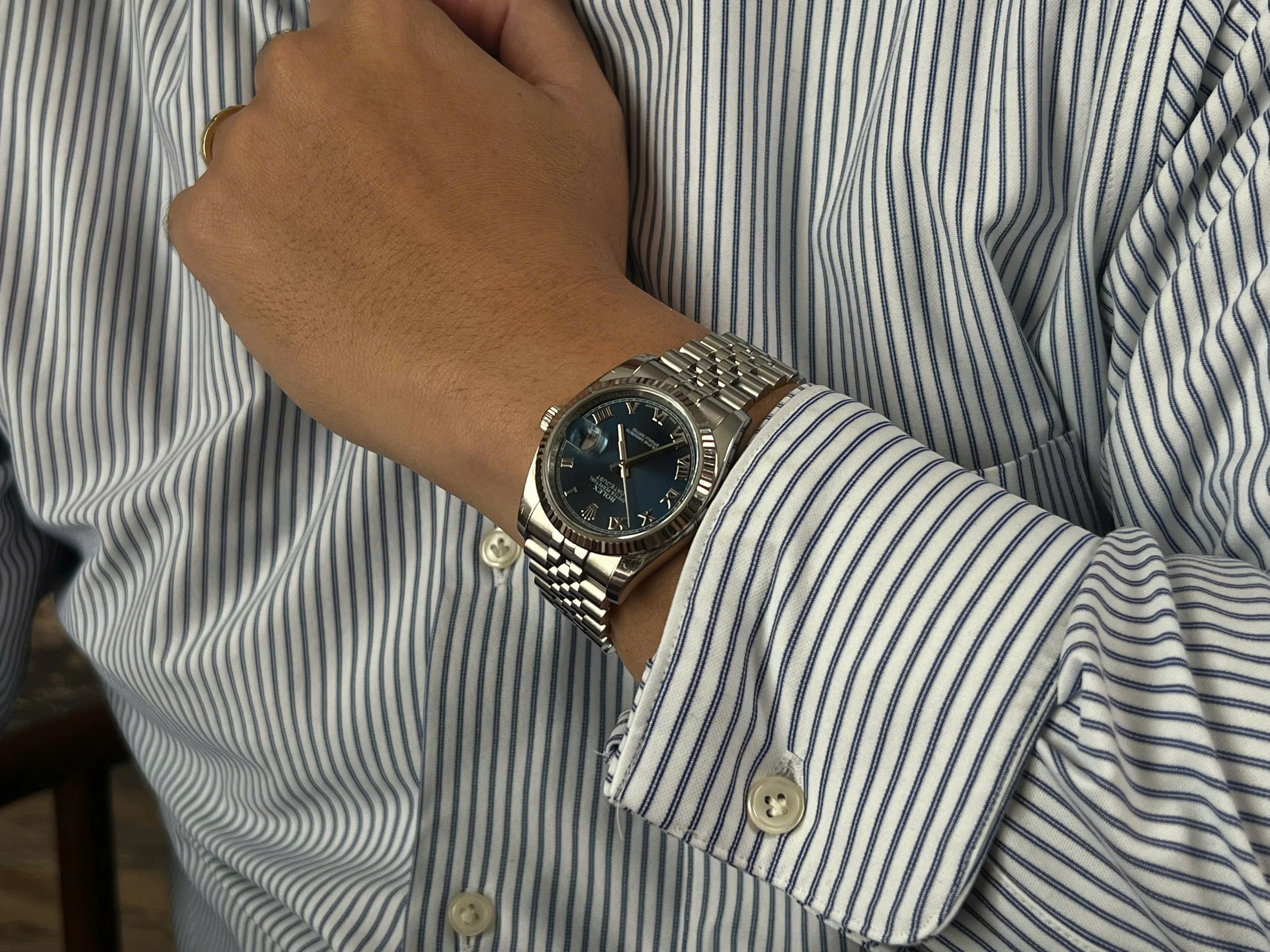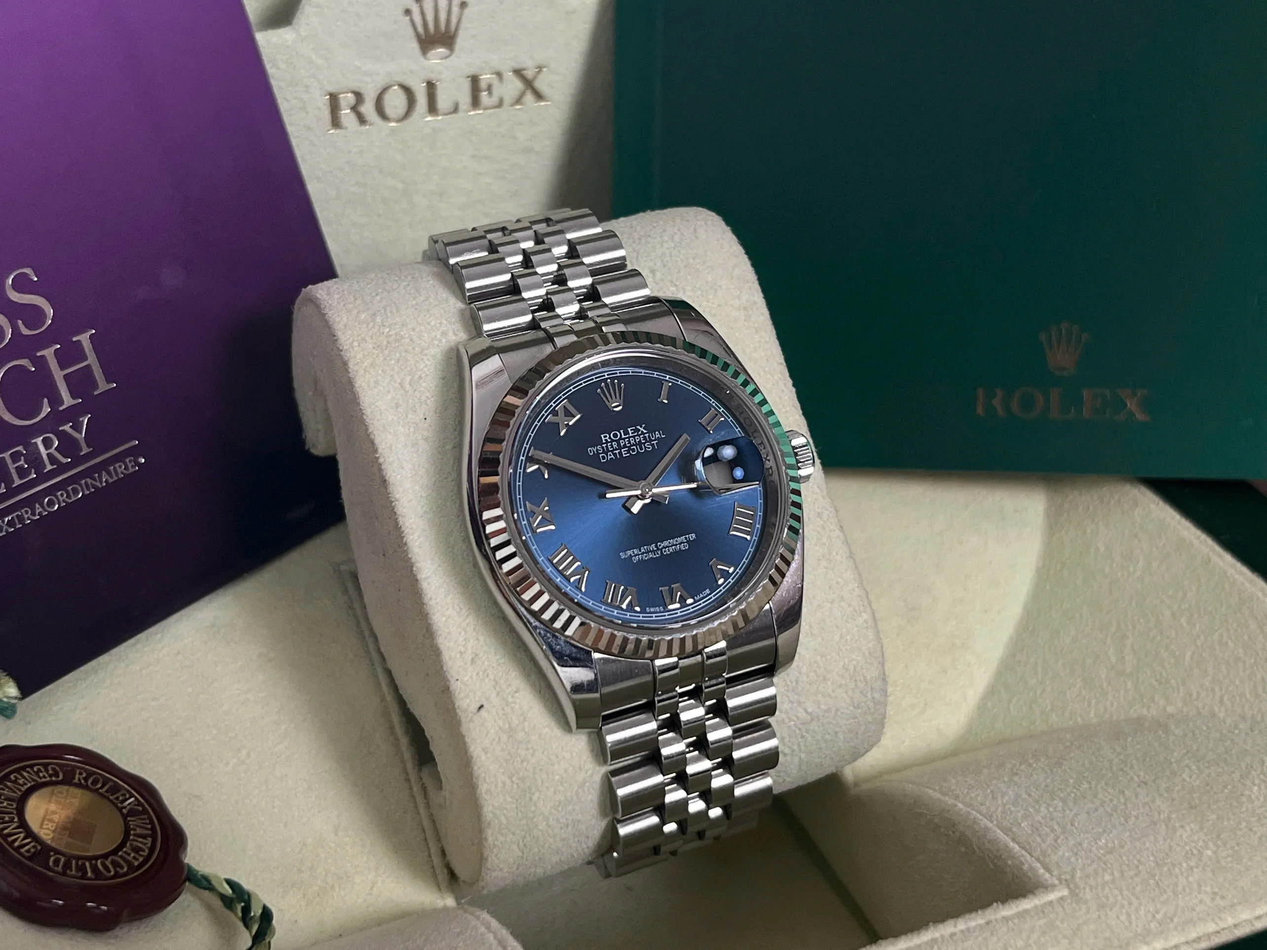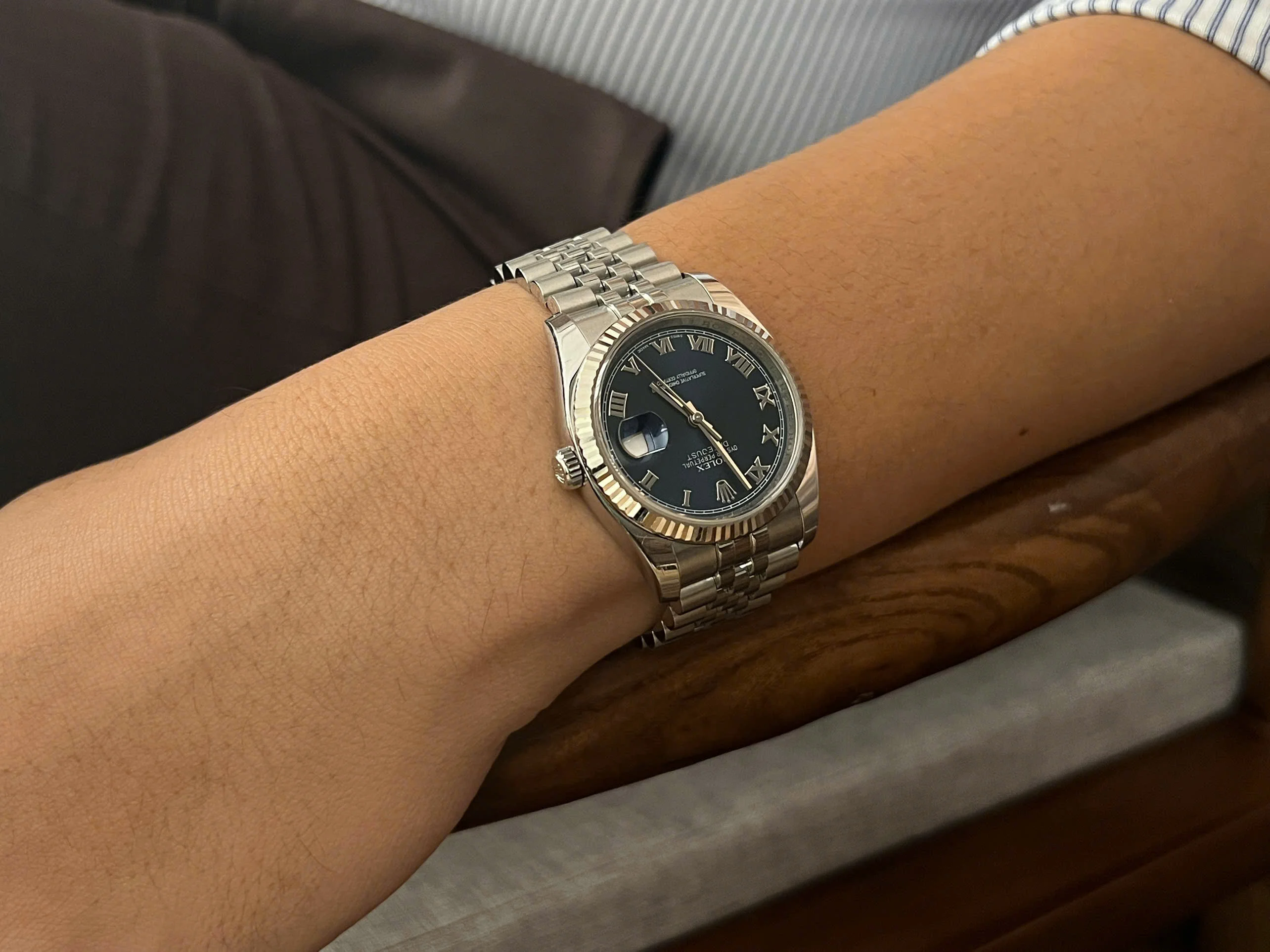 The dial is in flawless condition. A blue dial with Roman numerals is exactly the combination I wanted when I was looking for a Datejust.