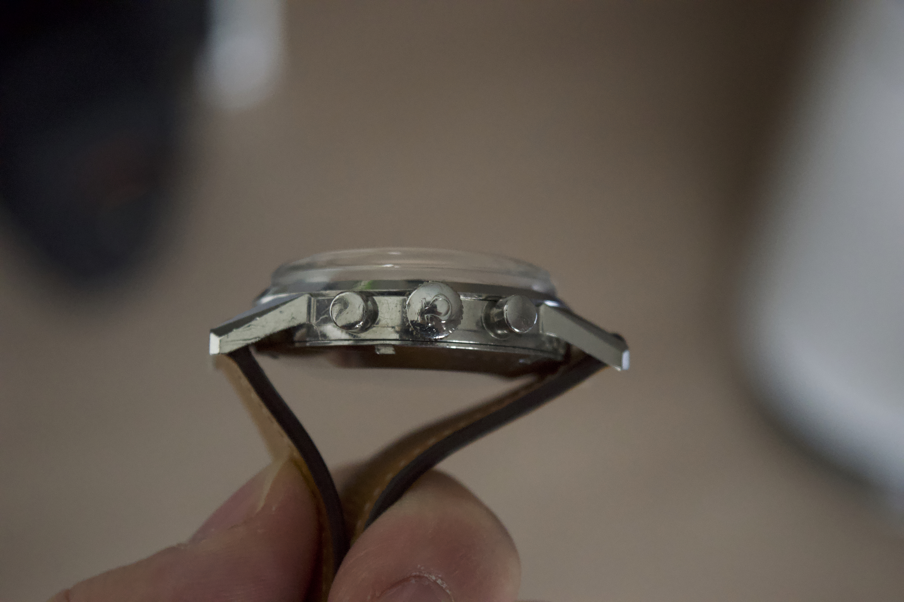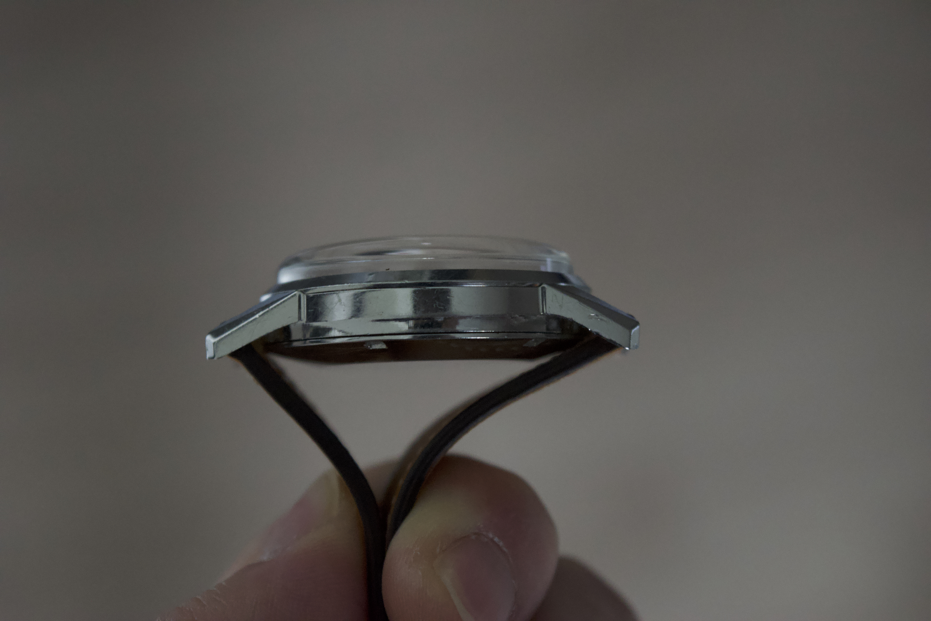 Dial & hands- Some freckling on the dial surface and edge, changes color a lot depending on the light. The alpha minute hand has a bit of lume fallen off. I chose to not relume and leave them be.