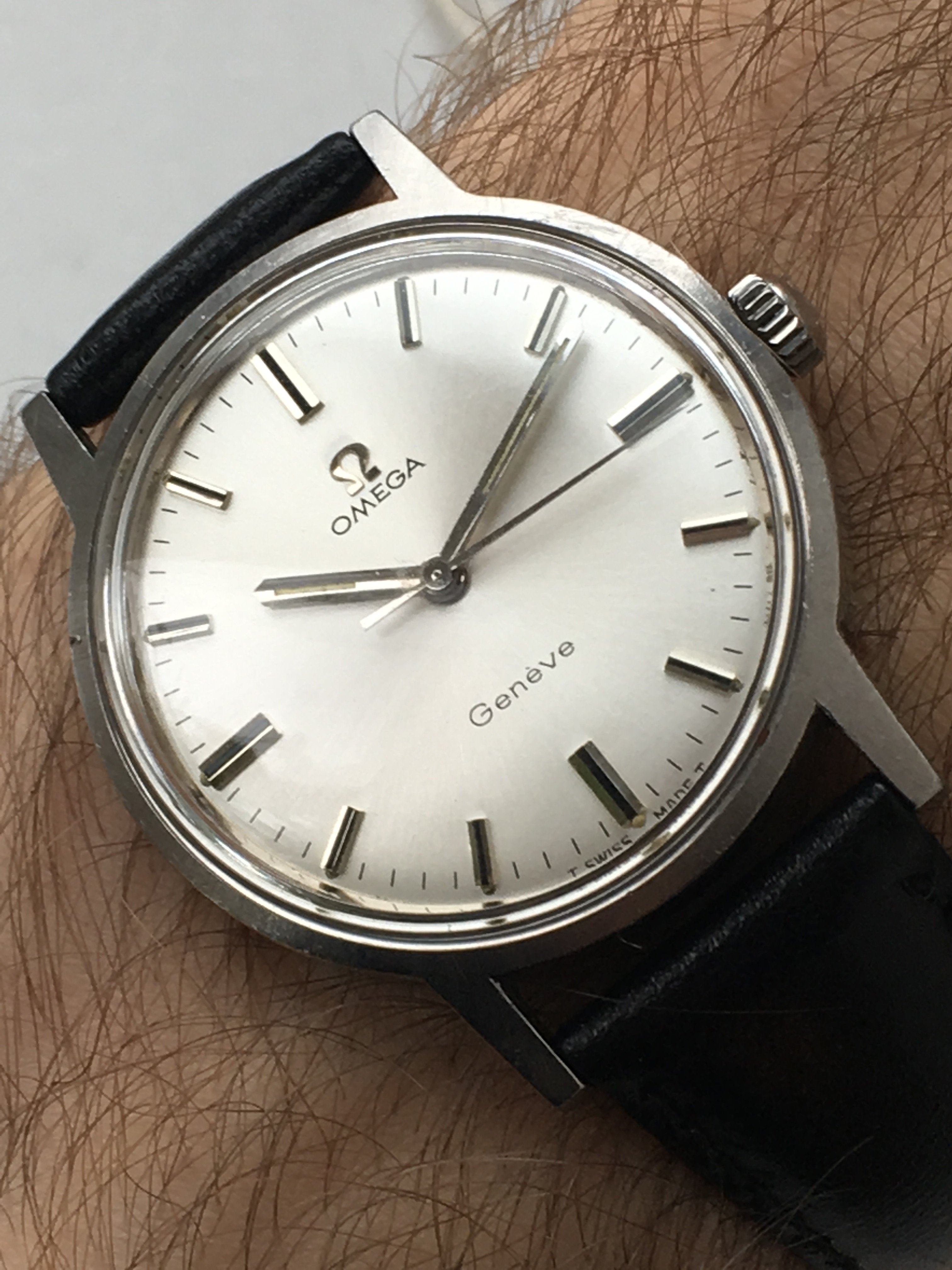 For sale is a very classic and clean Omega Genève from 1969 with a perfect sunburst silver dial. The reference is 135.070 and the movement is a cal. 601.