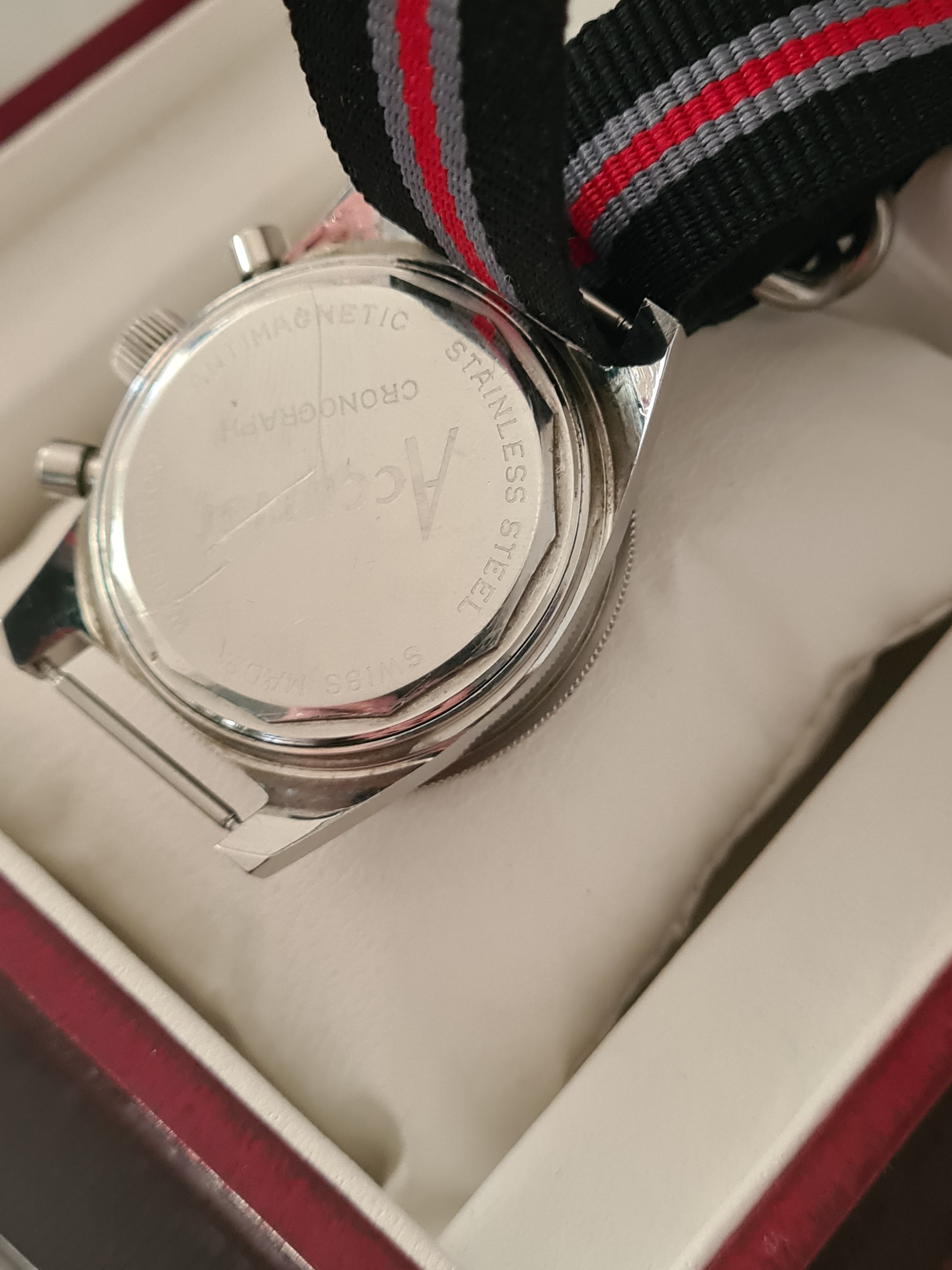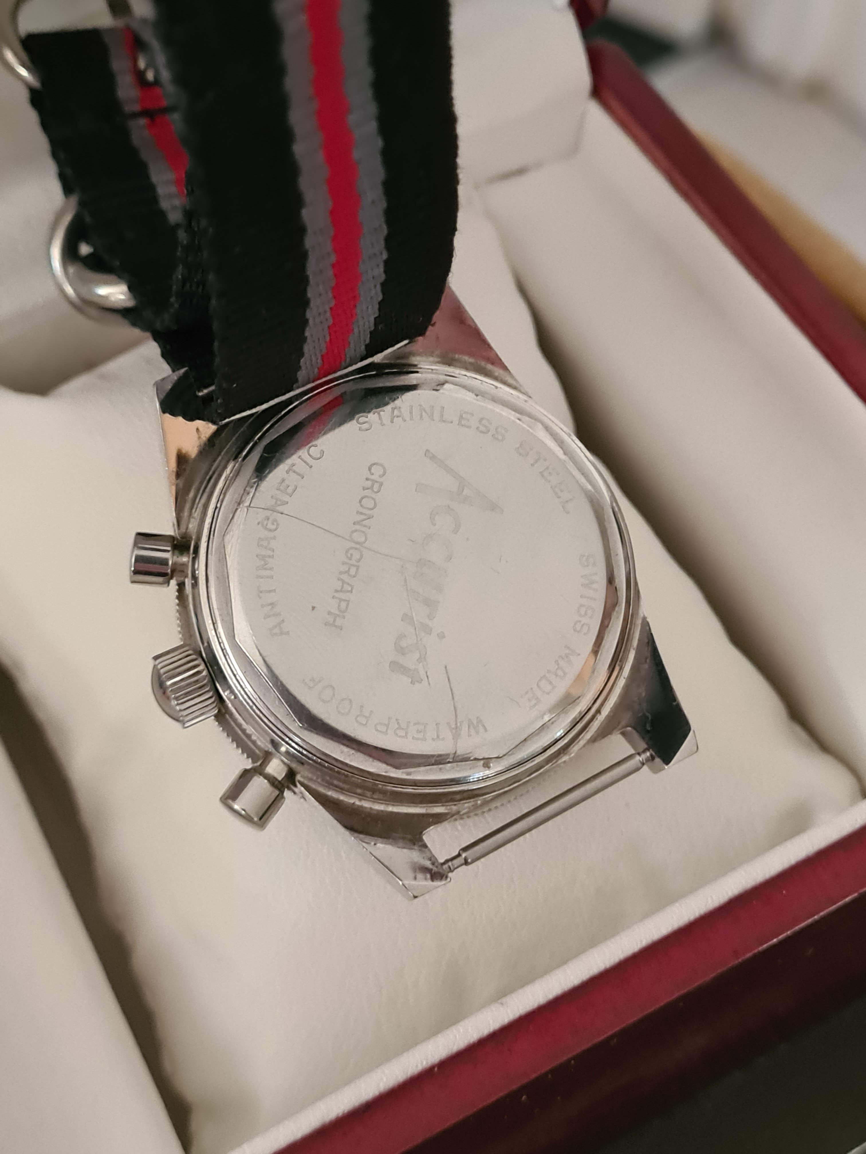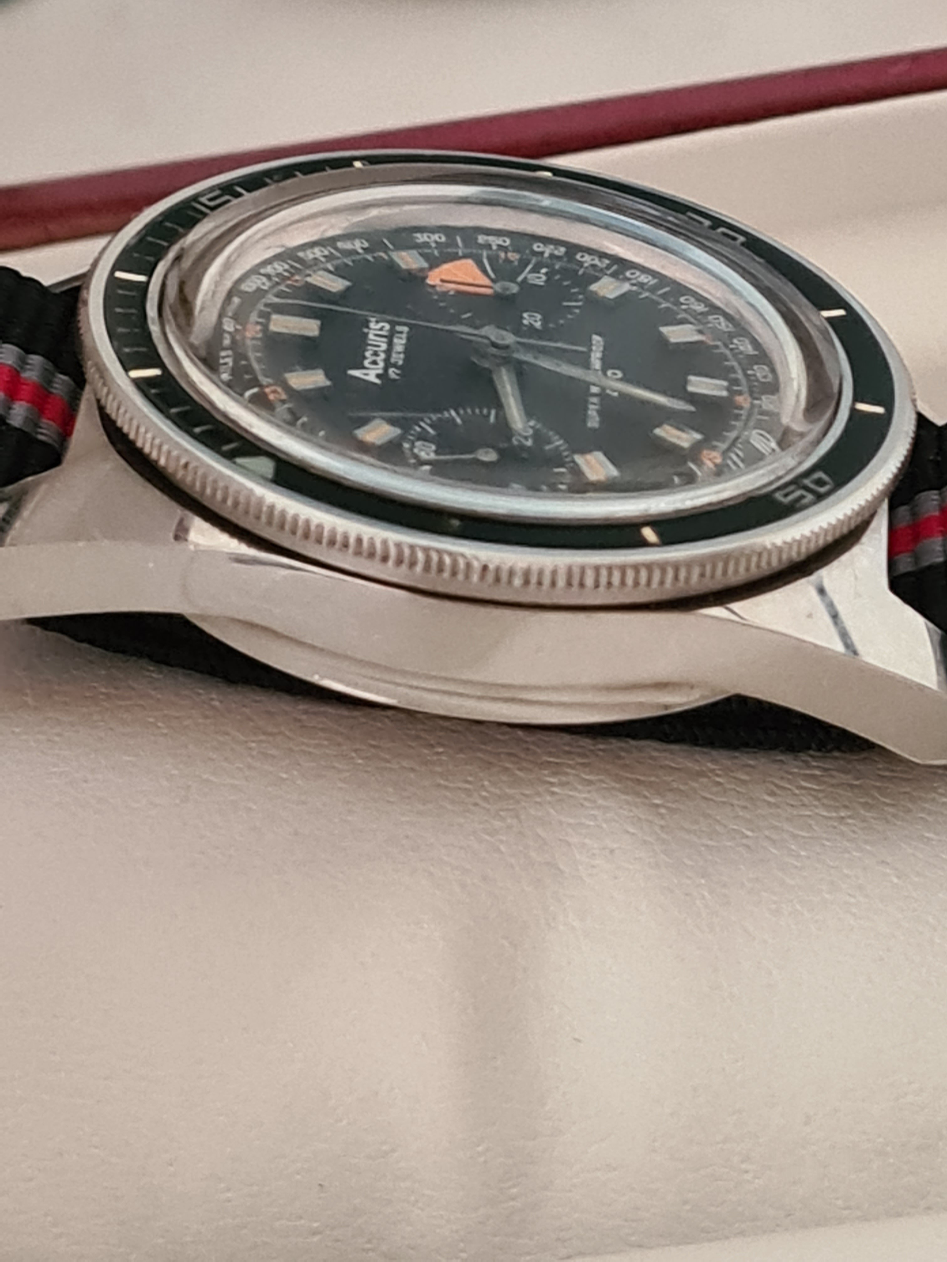 Movement: Landeron 51 movement. Very clean with intact gasket. Keeping good time and chrono resets exactly to zero. Service history unknown, but previous owner took good care of it, it would seem.