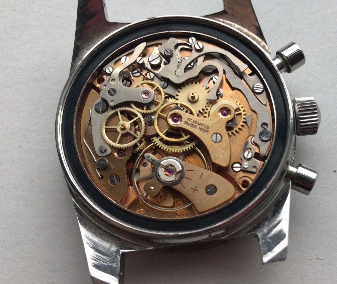 Crown and Pushers: All original, screw-down crown. Original pushers in fine fettle.