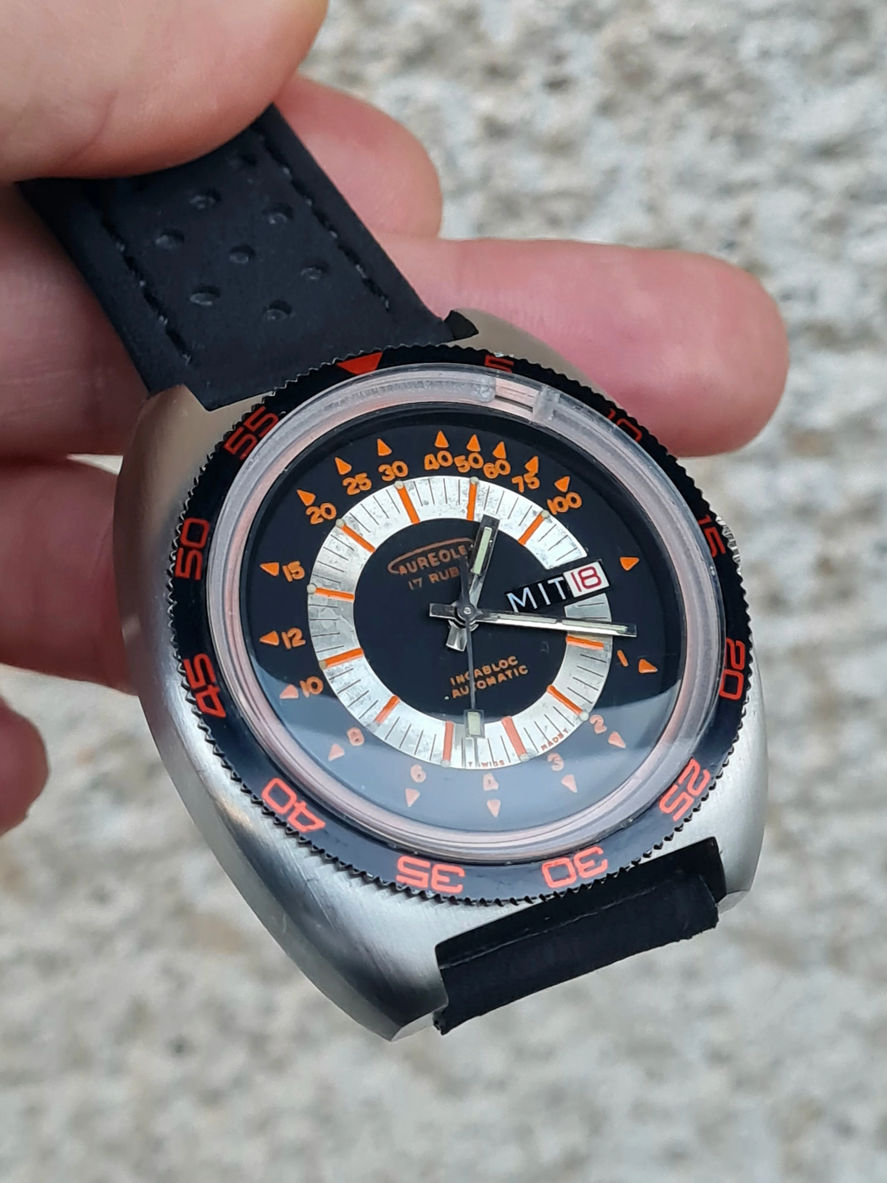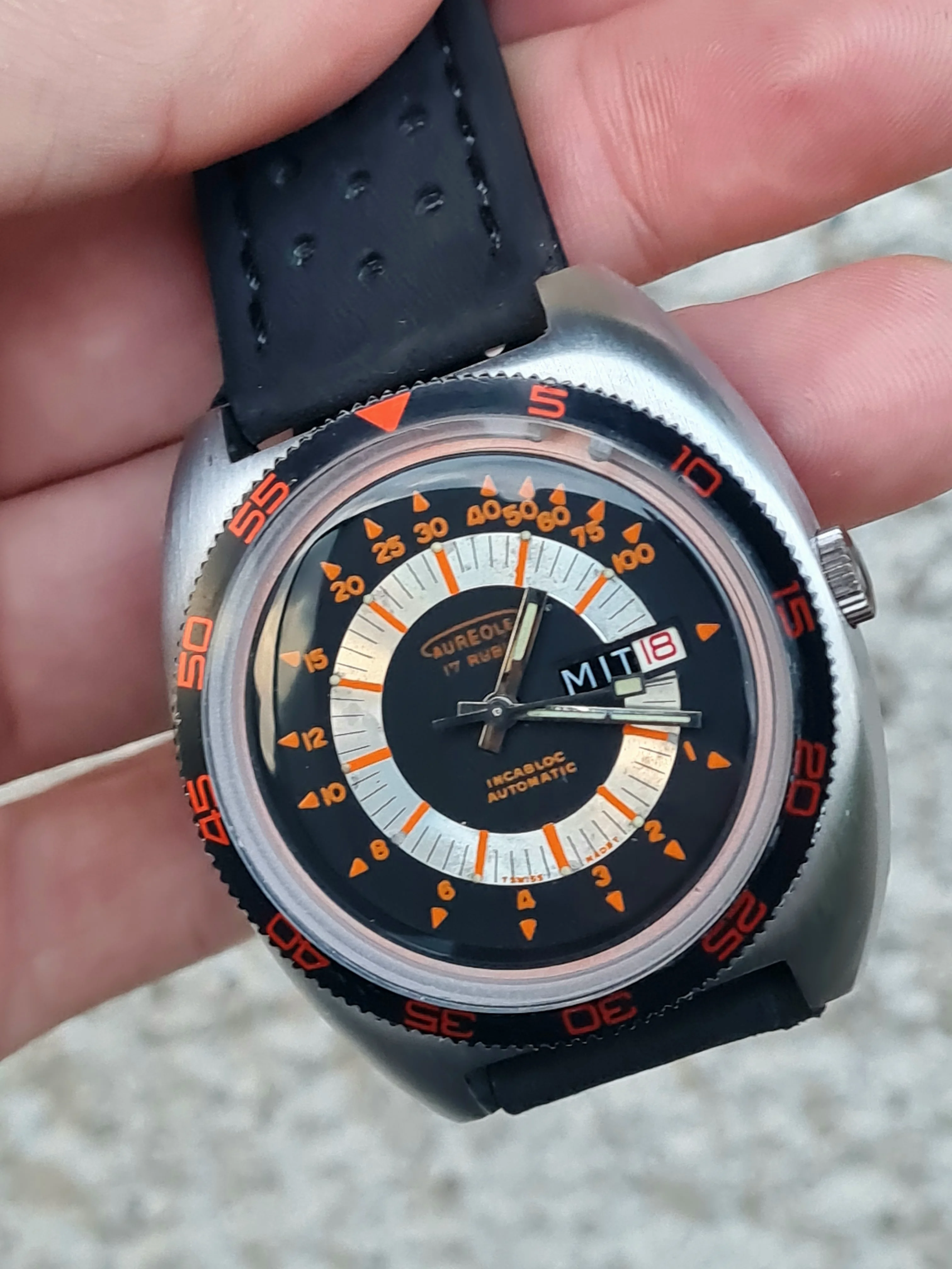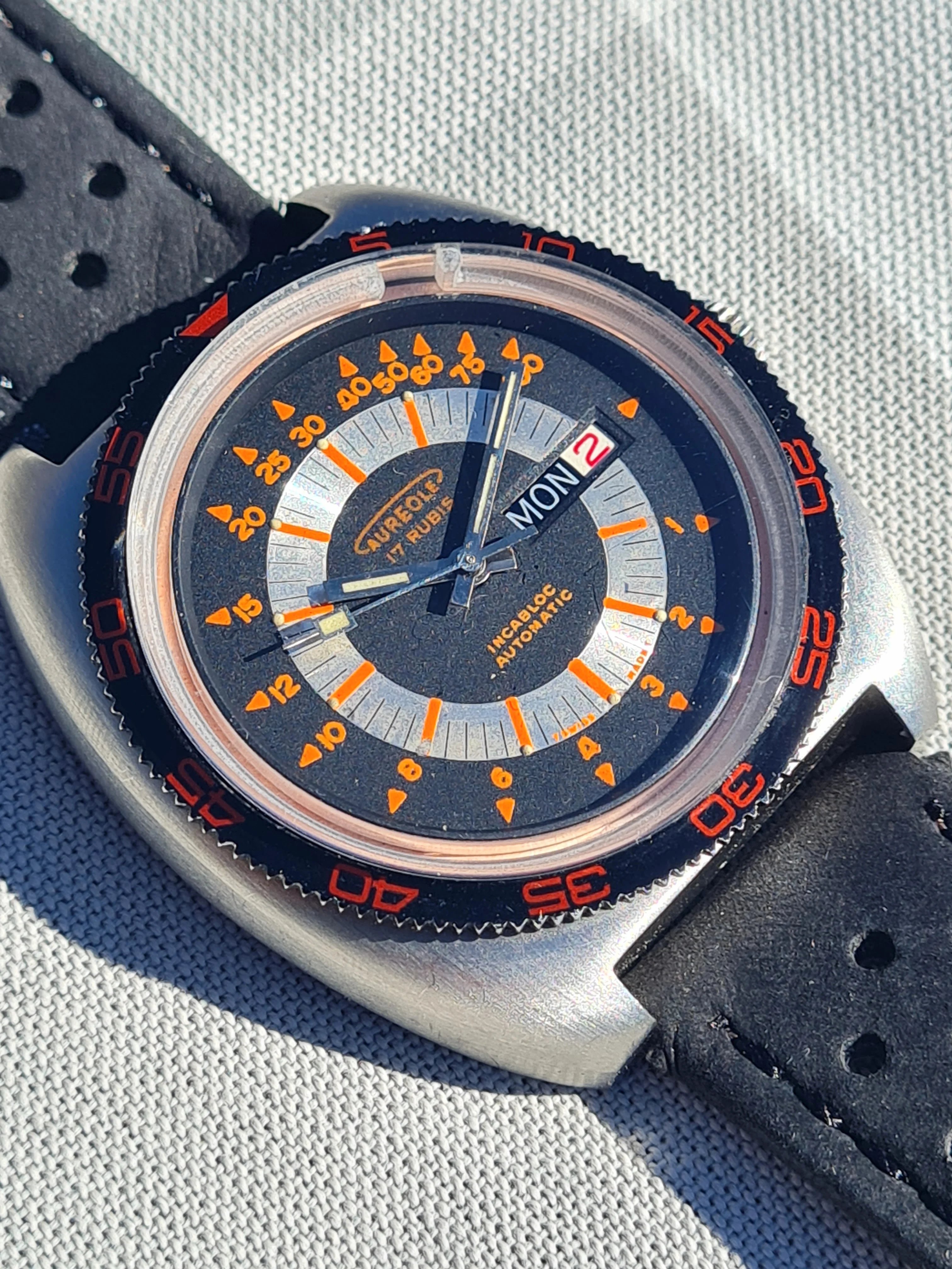Dial: black, silver, orange