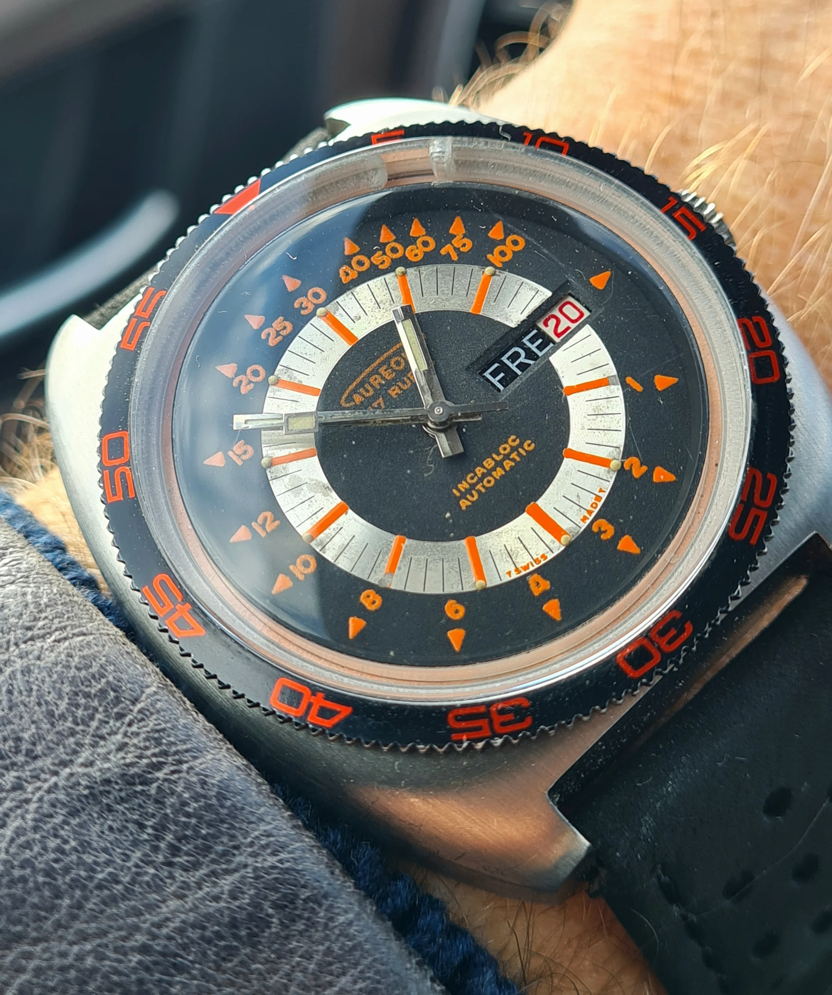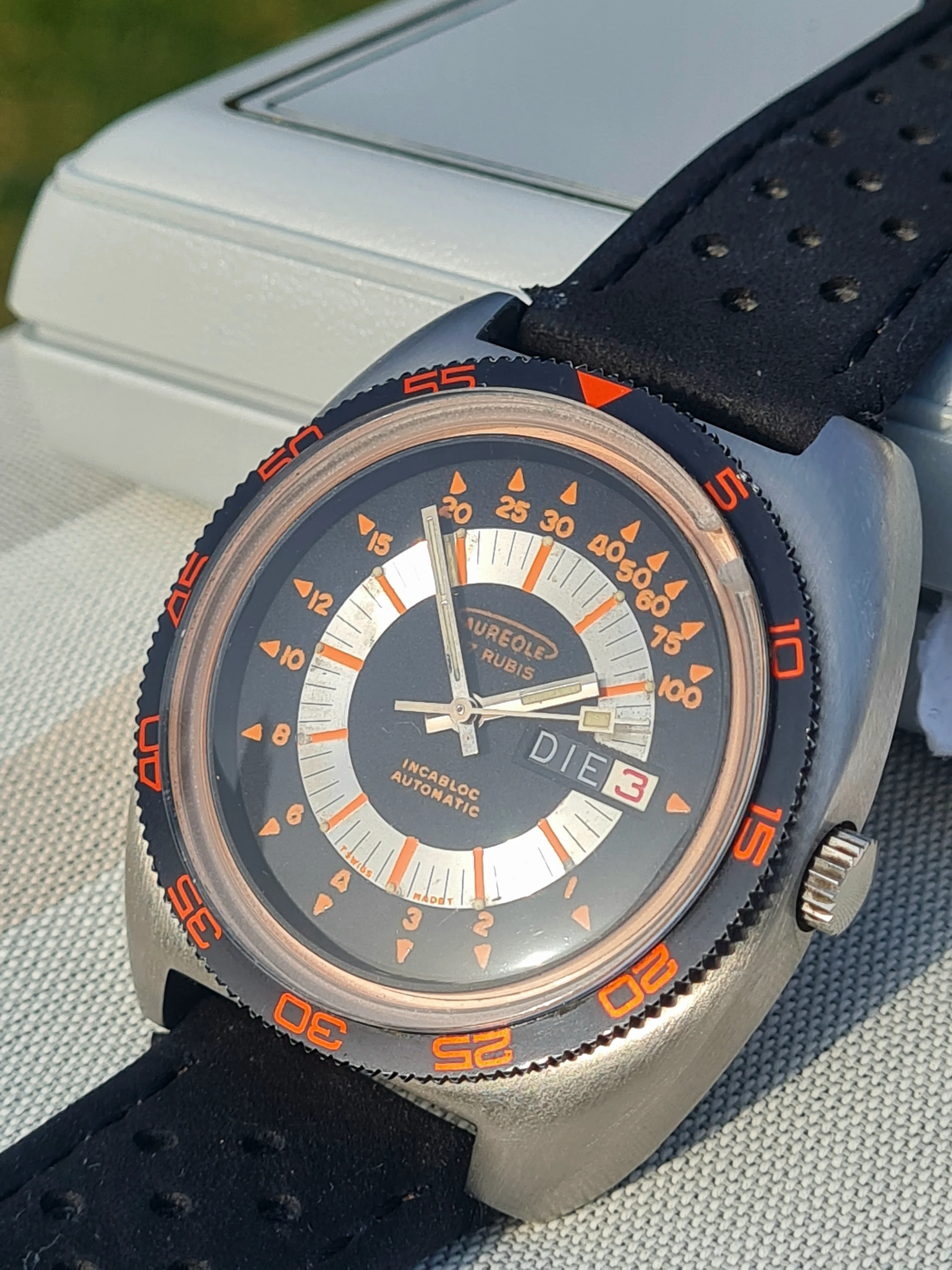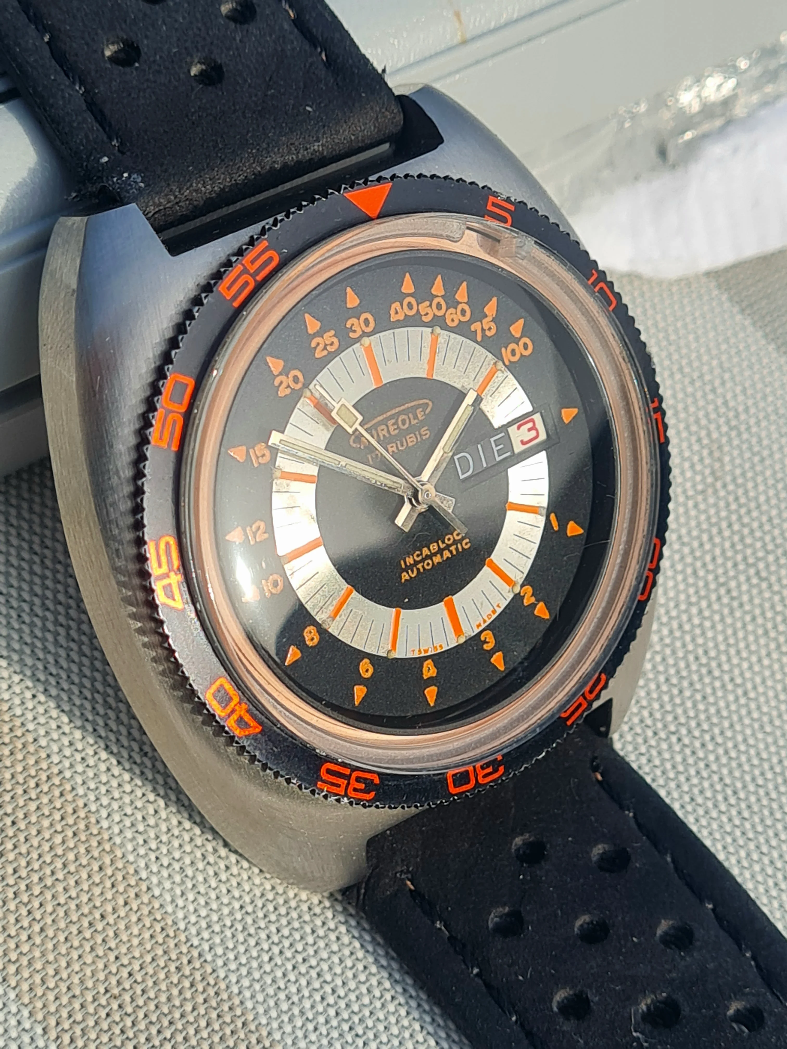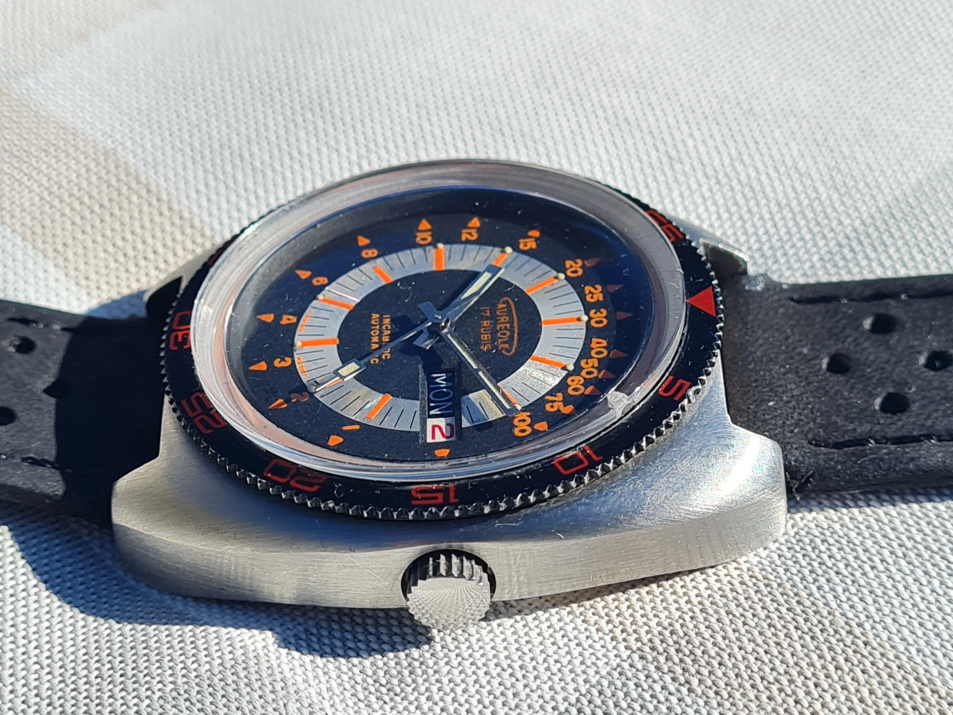 Dial: black, silver, orange