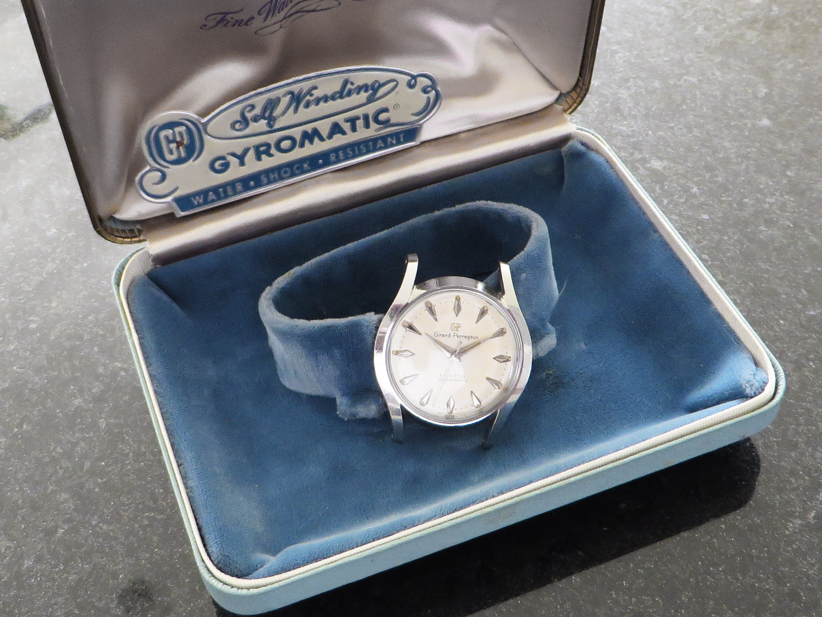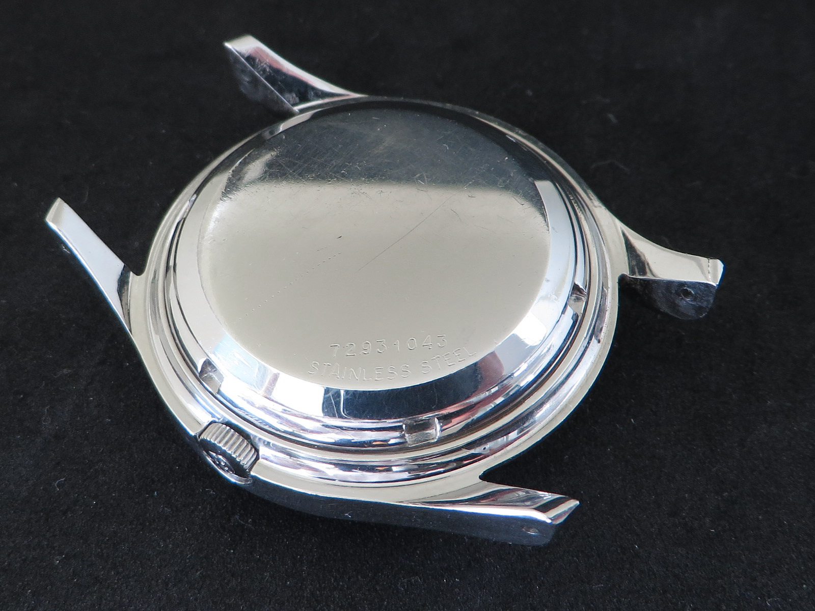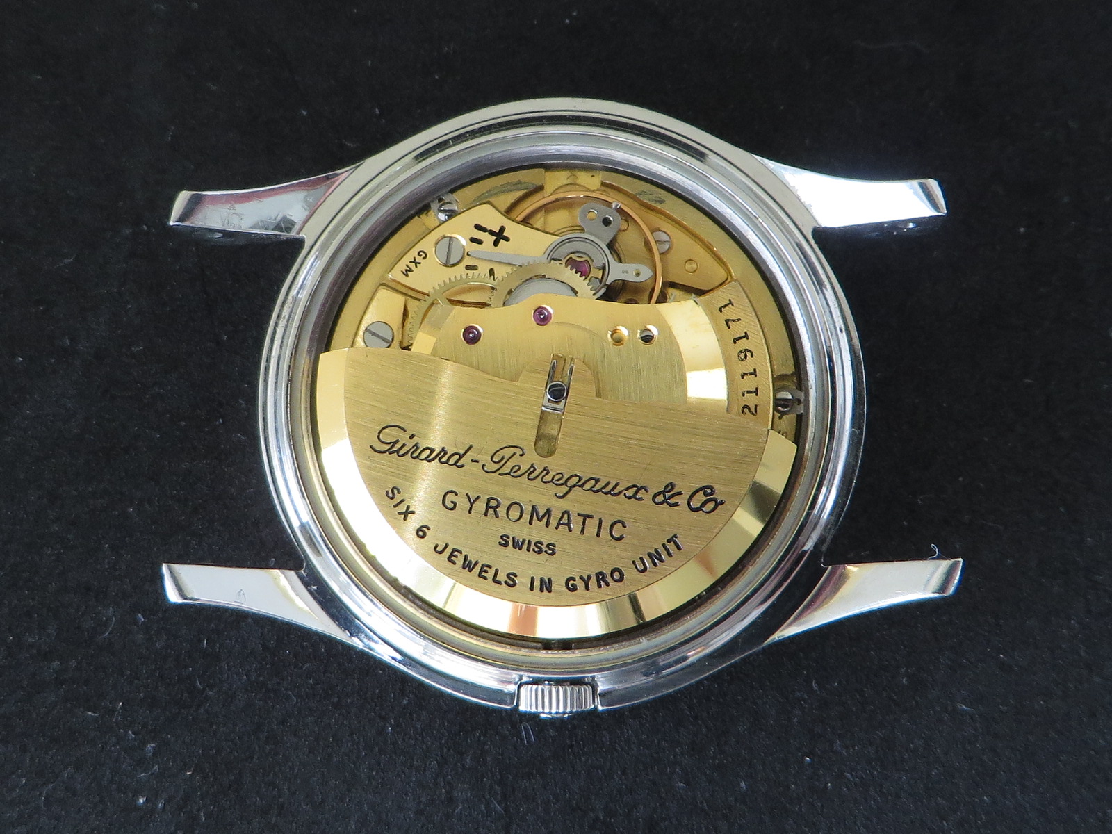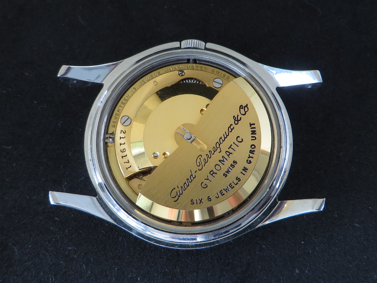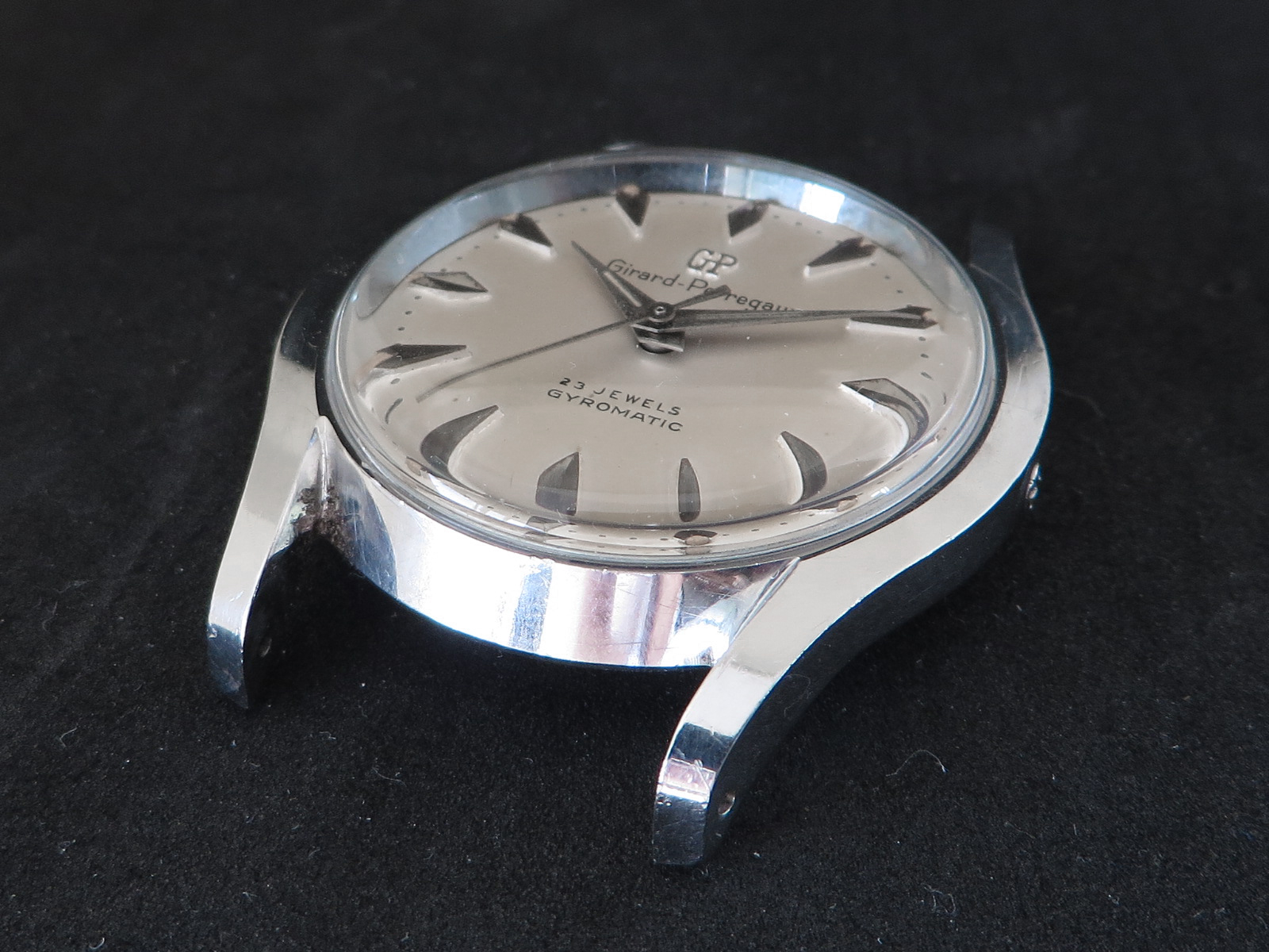Unusual stainless steel screw back case with fancy Bombe lugs and GP signed hidden crown.