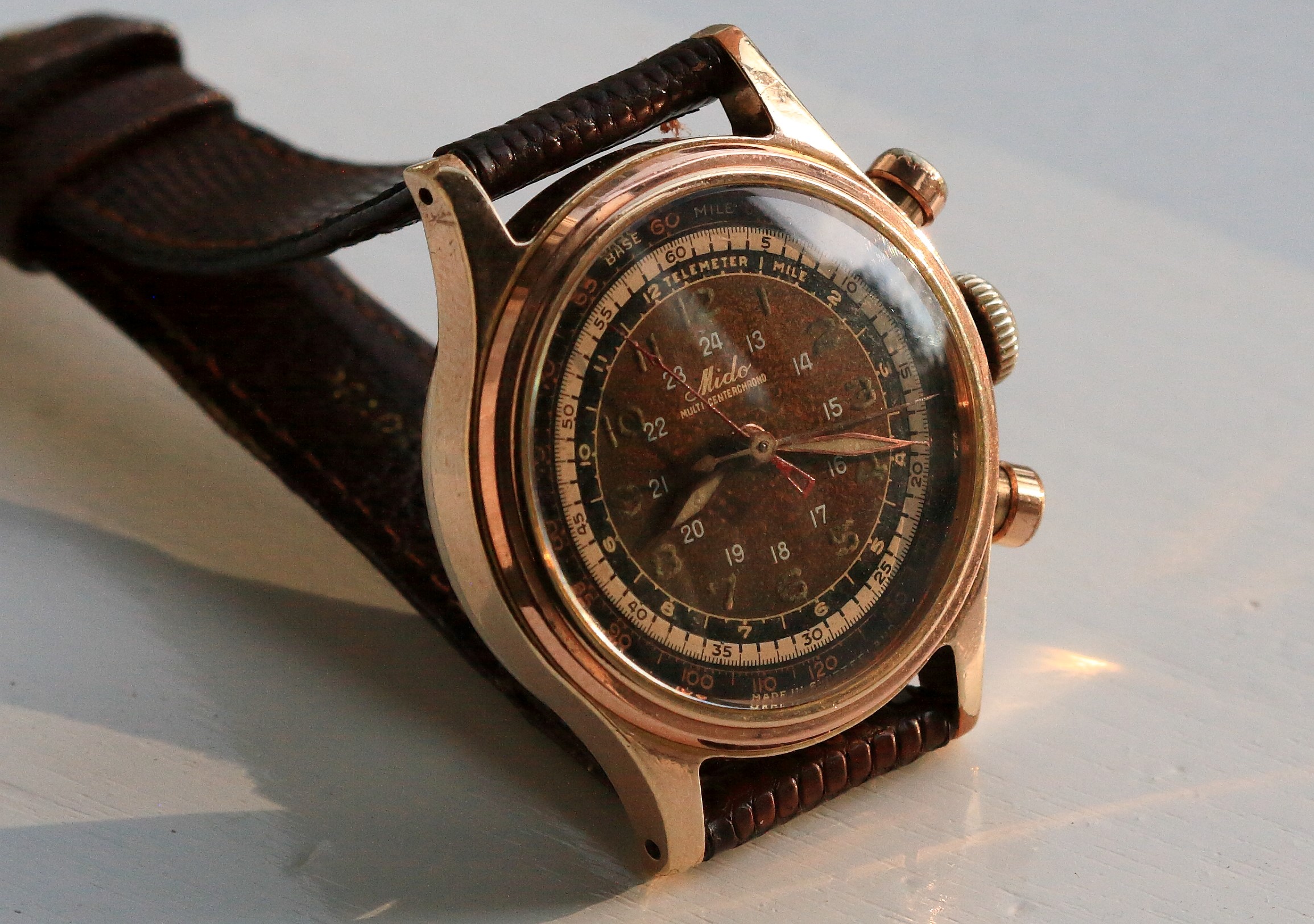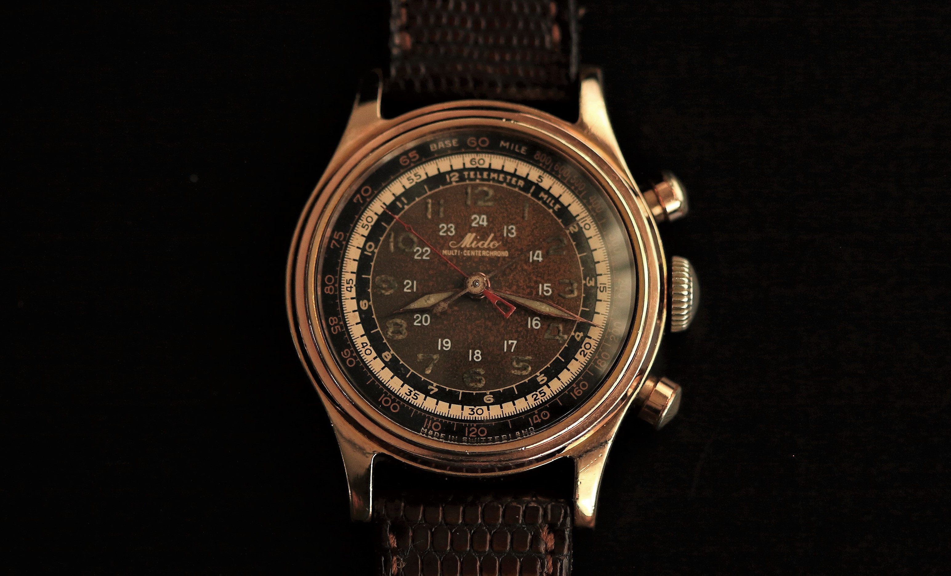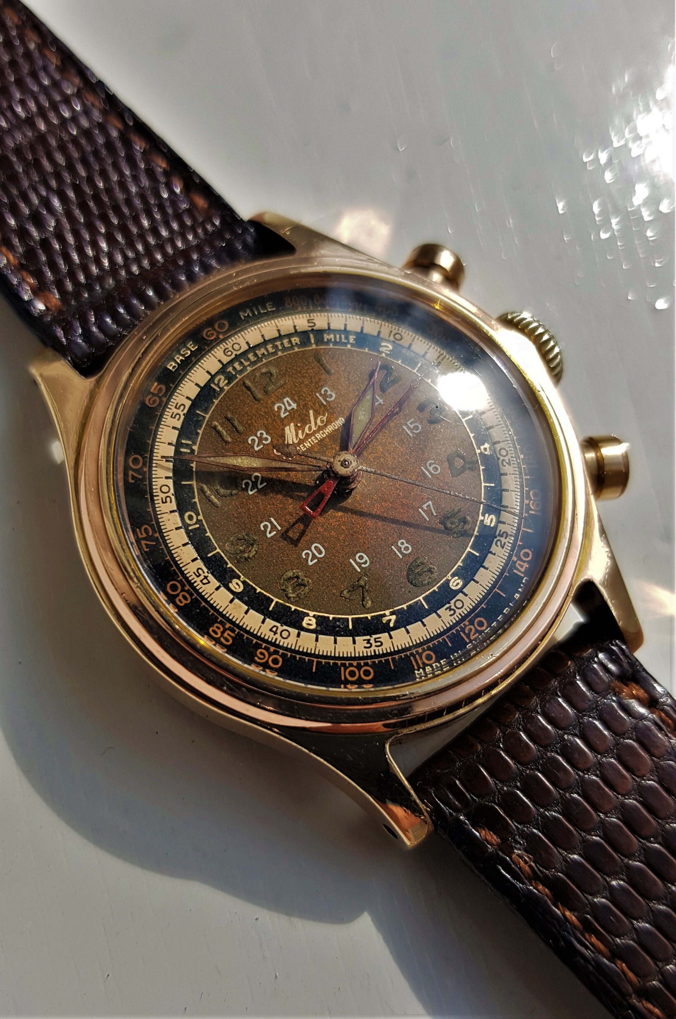 ·Here for sale today a lovely early 1940's Mido Multicenter-Chrono with a really fantastic copper-toned tropical dial and with a fully serviced movement.