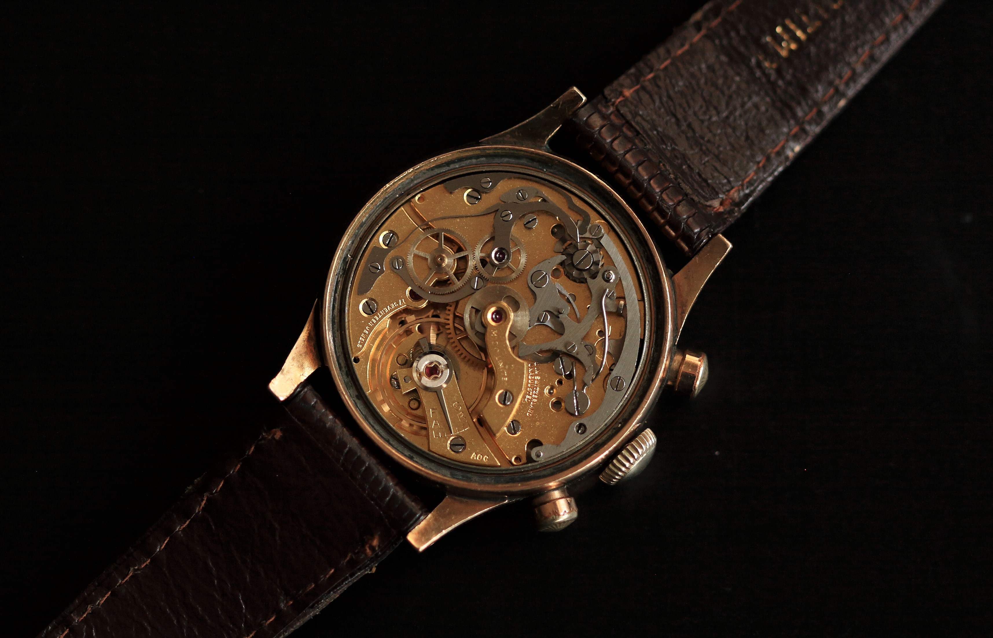 Mido produced these chronographs between the early 1940's and 1950's and they have something of a unique design style with no sub dials and 4 central hands, two of which are for the 60 minute counter.