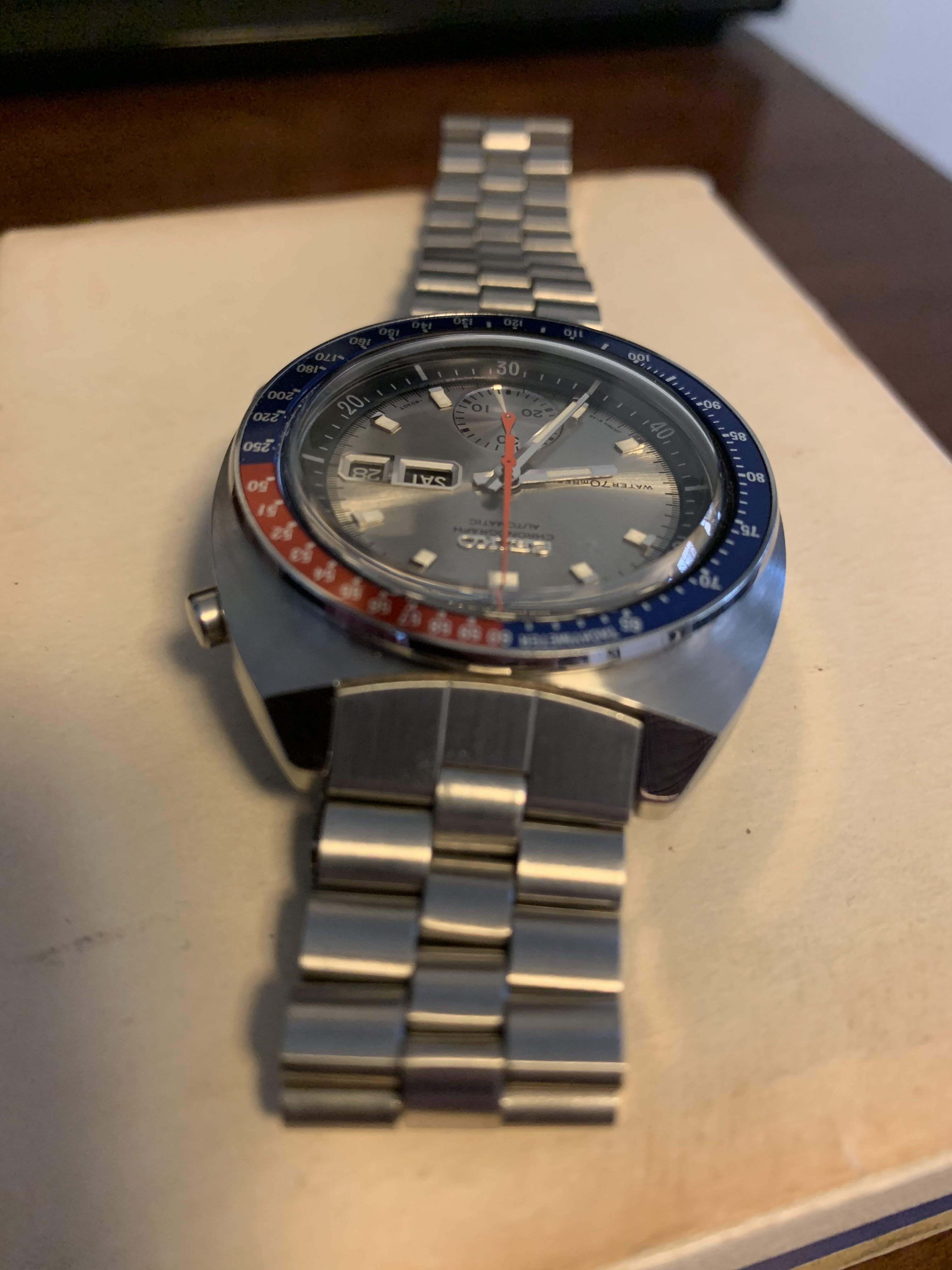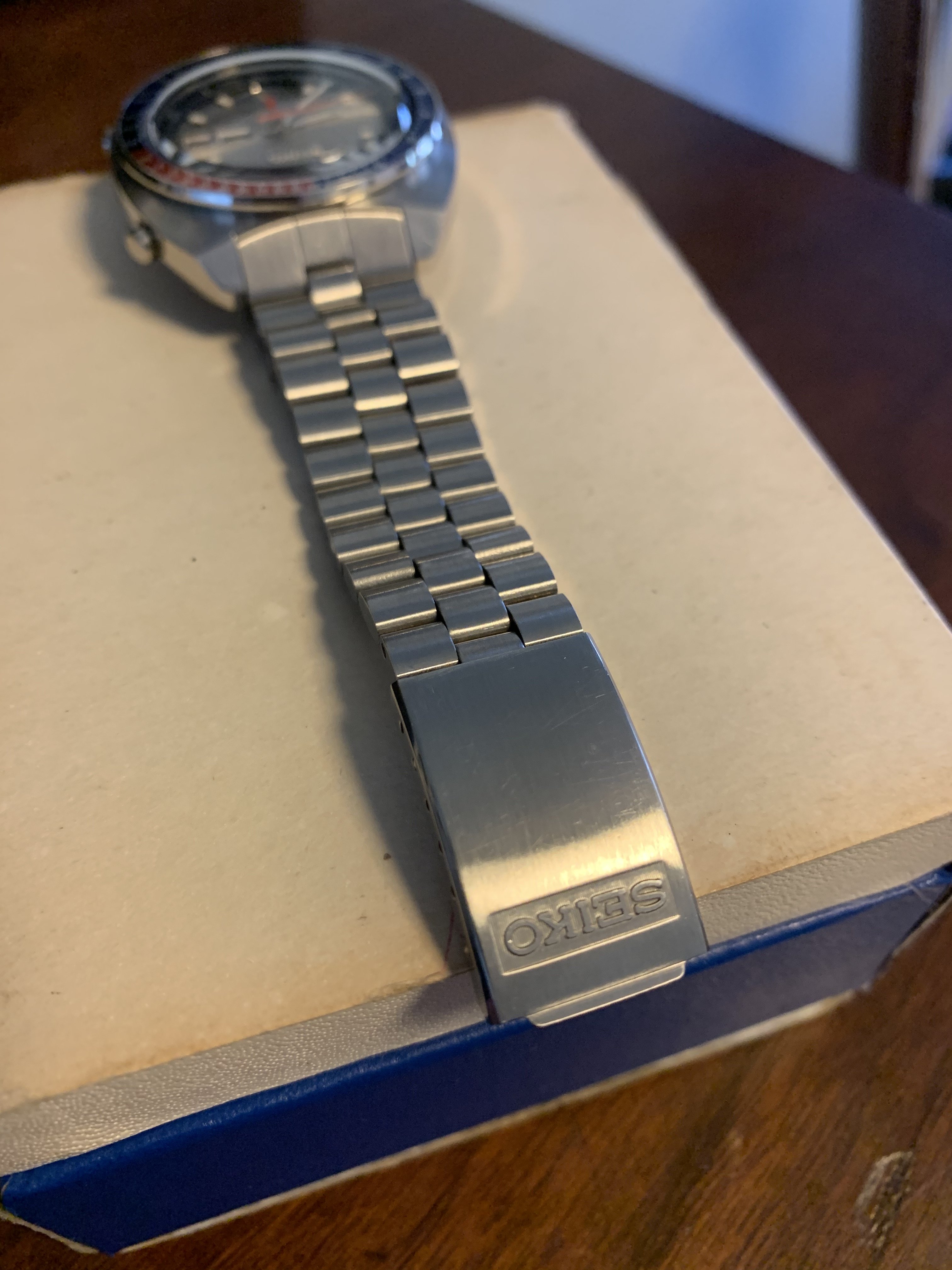 I only wore it a few times and it still looks borderline immaculate, with a dial that pops, a clean bezel and great lume. It is a real stunner on the wrist but I need to trim my collection down. There are some light scuff marks on the clasp and some minor bracelet wear in the top link (pictured), but otherwise this has not been polished and comes with the original bracelet. All functions work perfectly, but you can always feel free to ask me to send you of a pic the watch set at a date or time if you like.