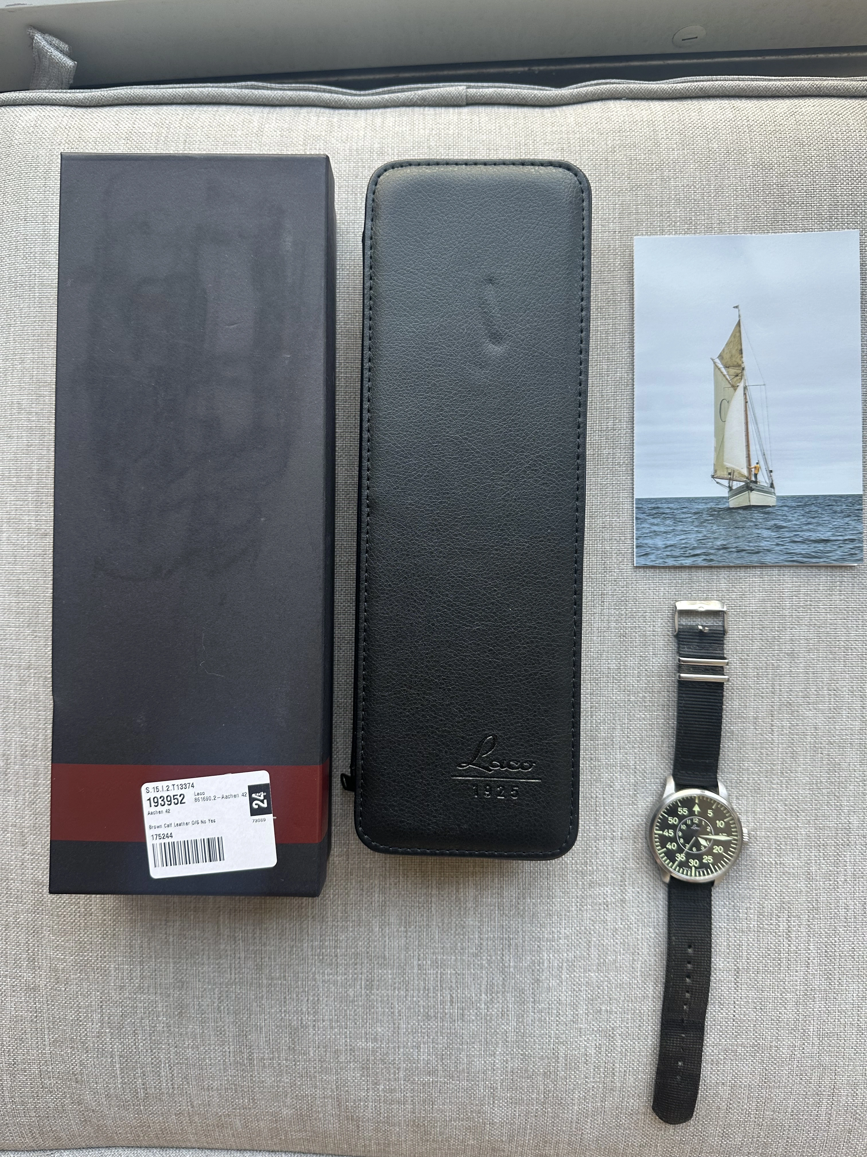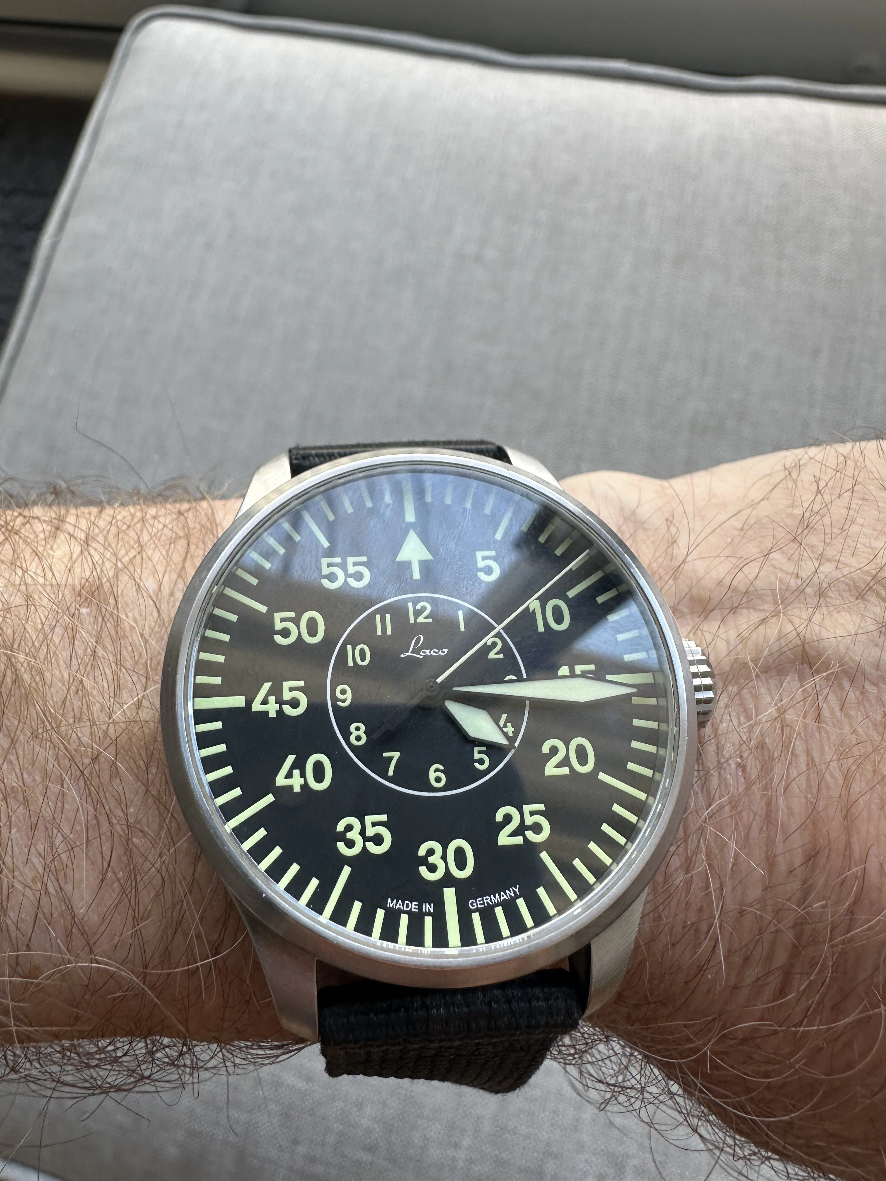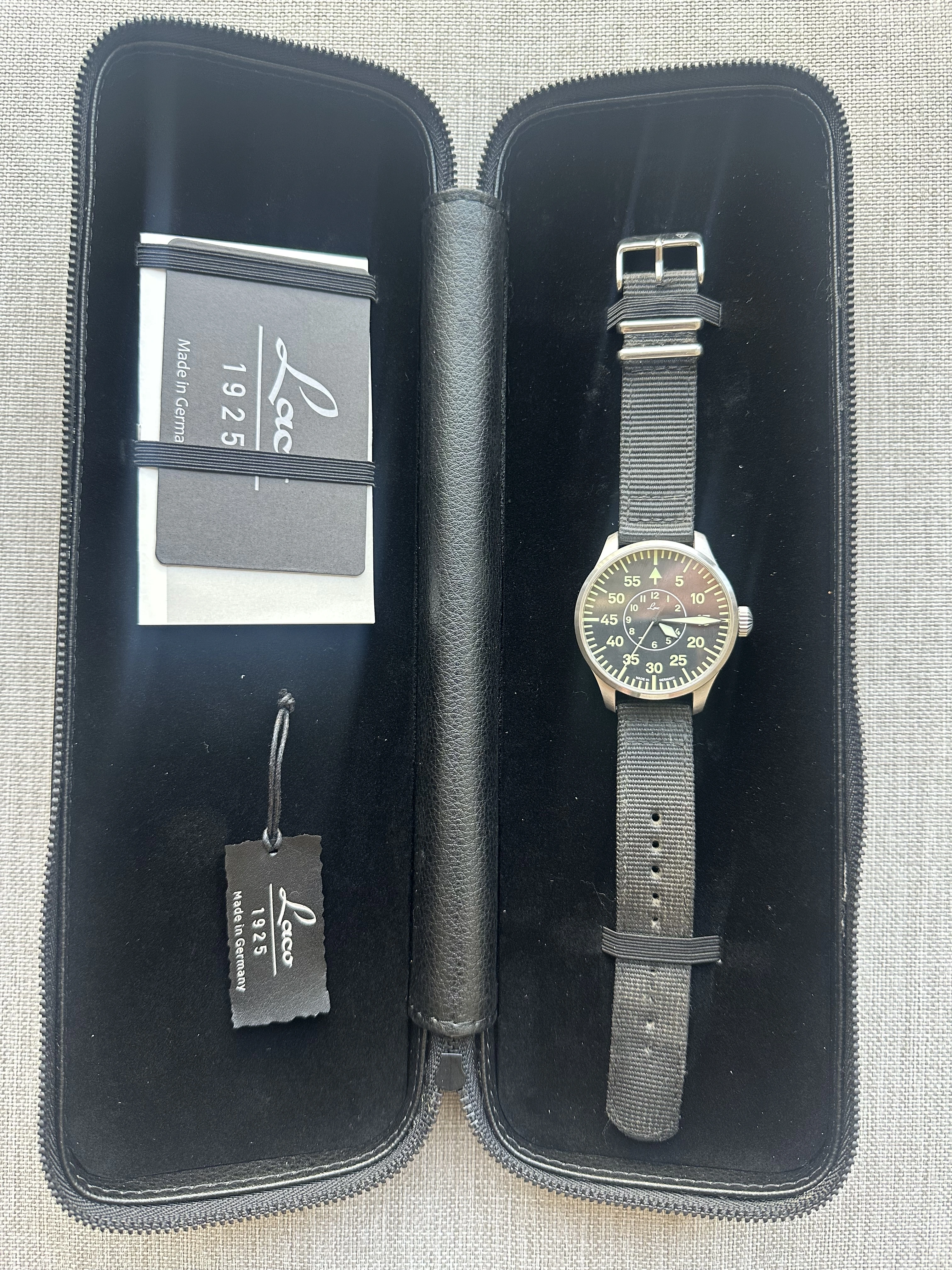 I am selling my automatic Laco German Flieger 42mm timepiece. I am a licensed airplane pilot and a licensed instructor for airplanes, helicopters, gliders, and hot-air balloons. This German Flieger has served me well in the times I have used it. I purchased this timepiece brand new for 410.00 plus tax. I am now selling it; the BUY NOW PRICE is 250 plus shipping (275.00 plus shipping) in the United States, which is where I am located. I have priced this Flieger at a very respectable and reasonable price so I can move it quickly. As you can see through the attached photos, the Flieger is in very good condition and very well taken care of. Please PM me for a sale or ask any questions you may have.