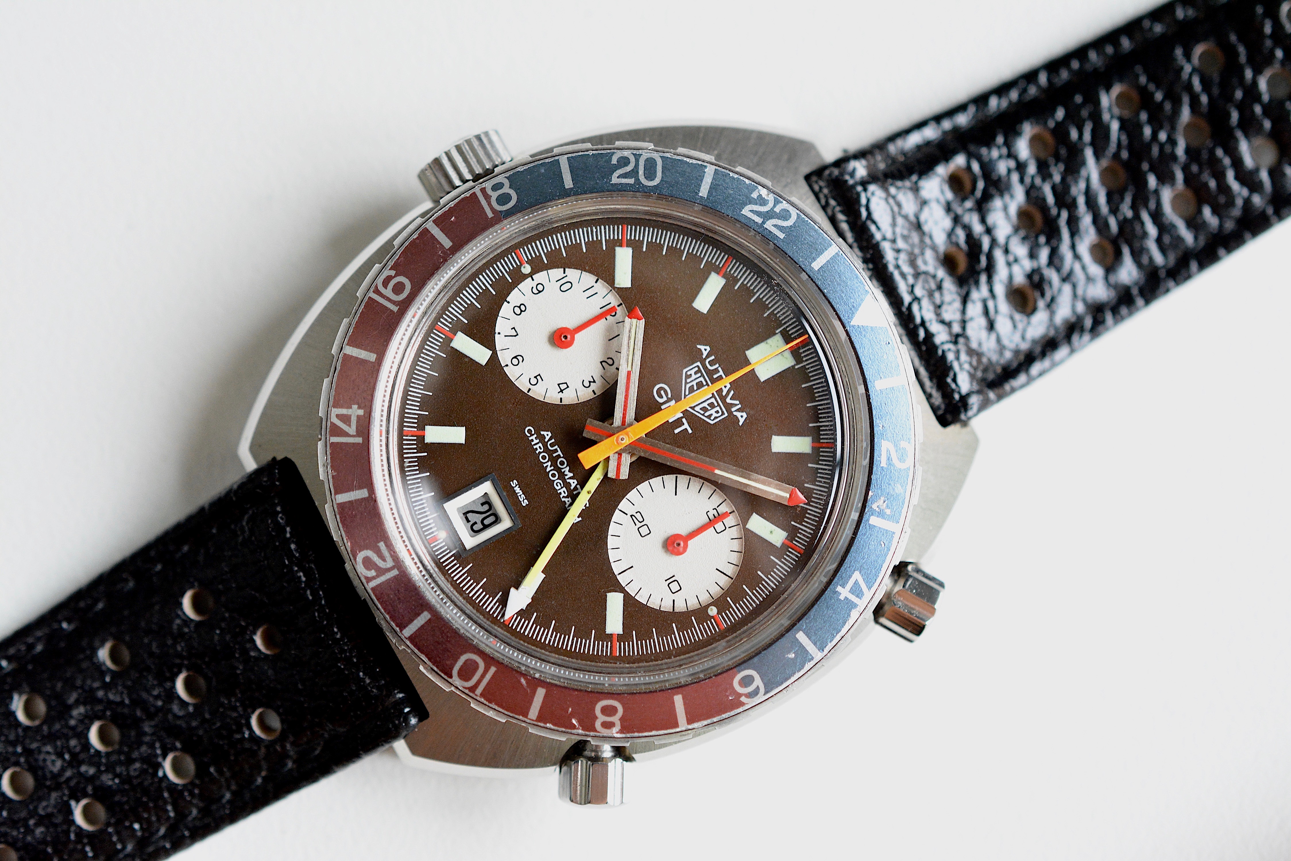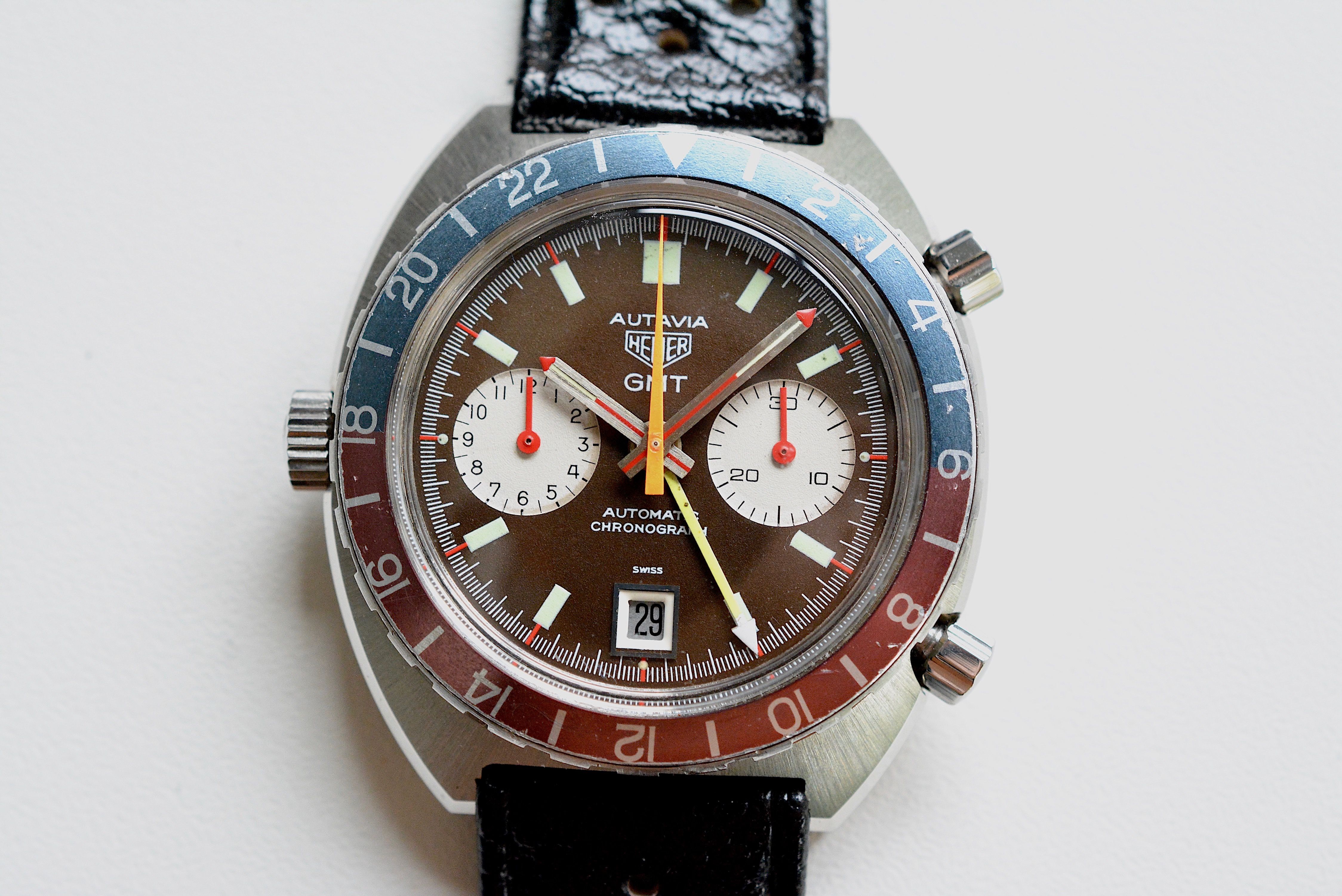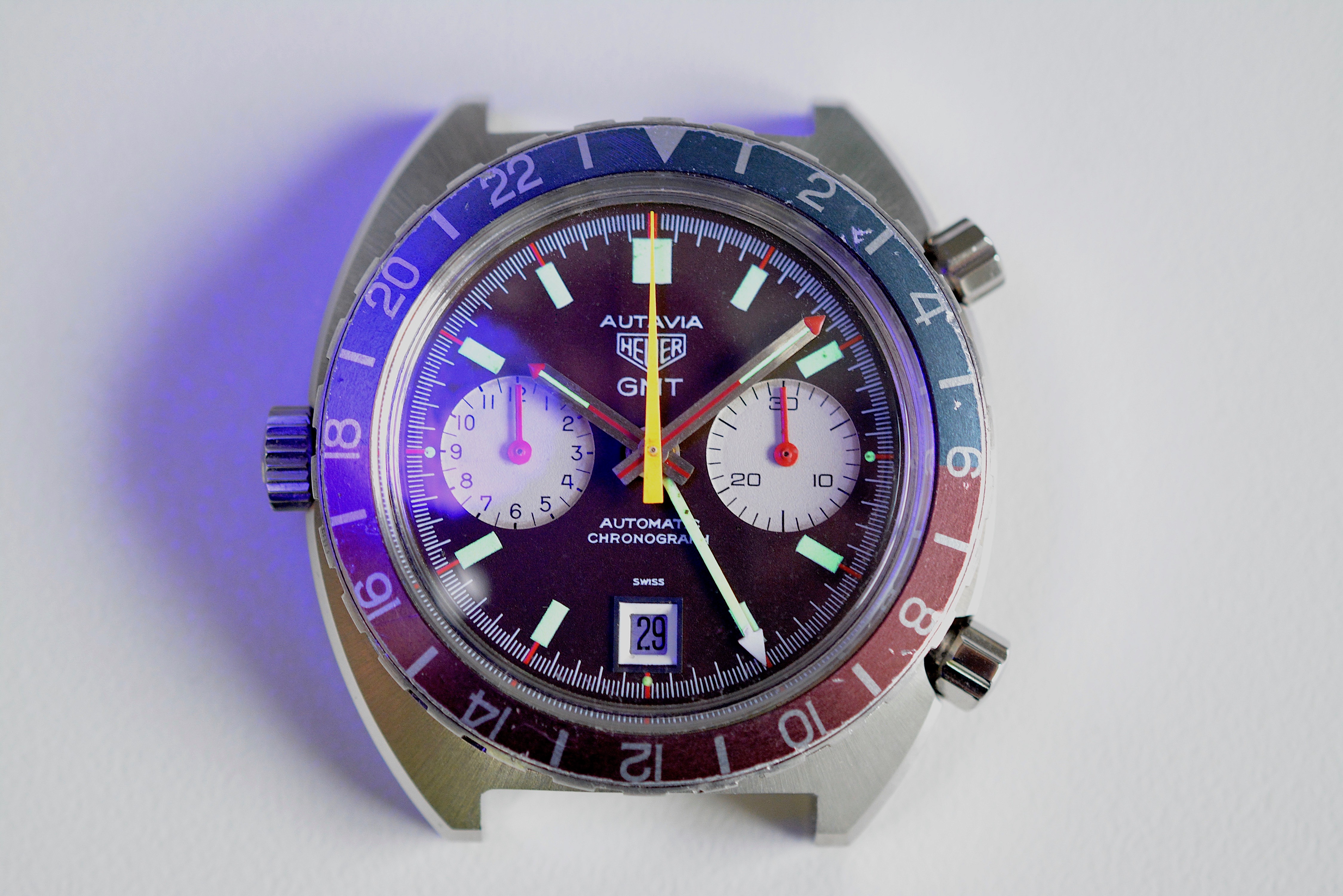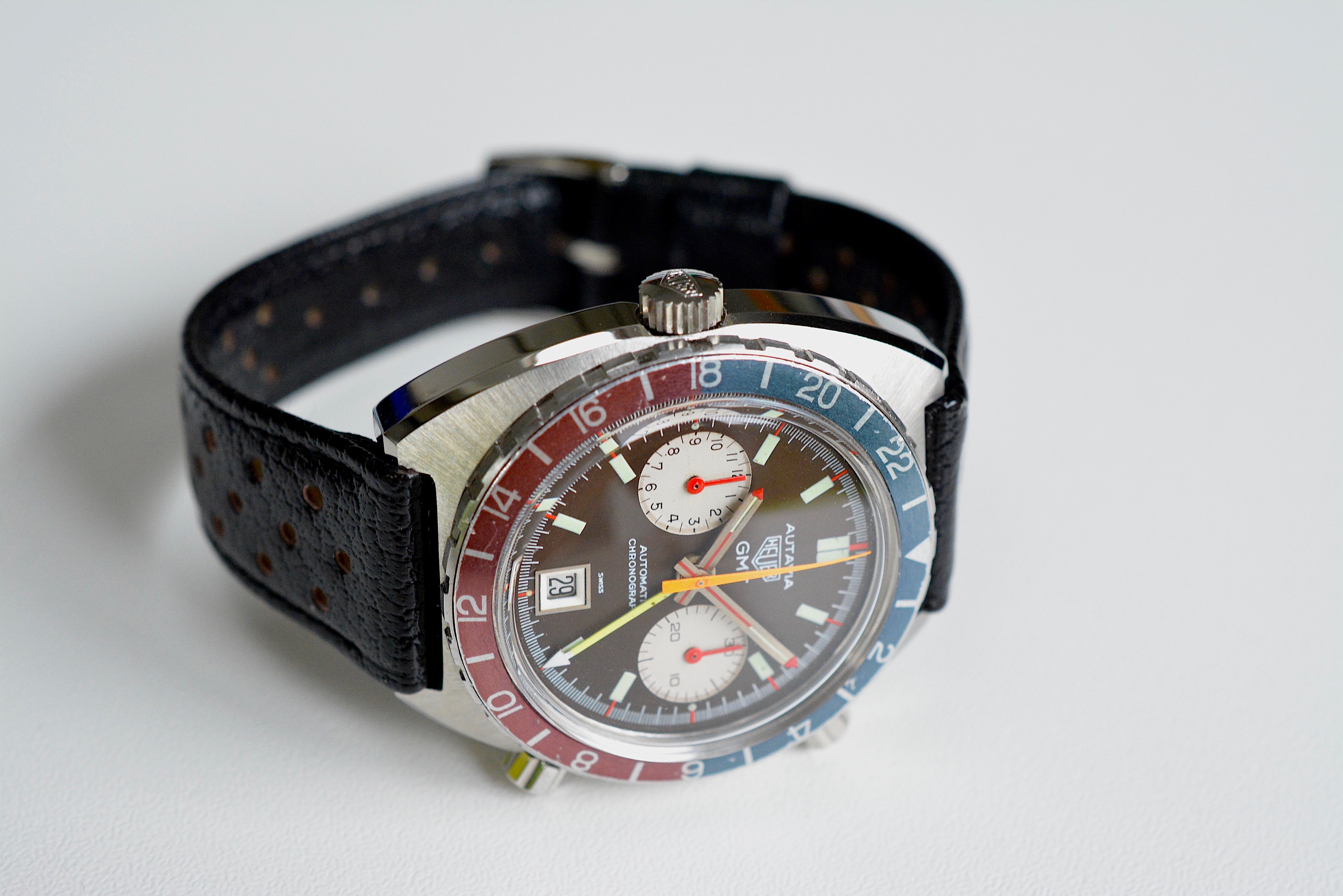 I am selling this very nice and also very rare Heuer Autavia 1163 GMT "red needles".
