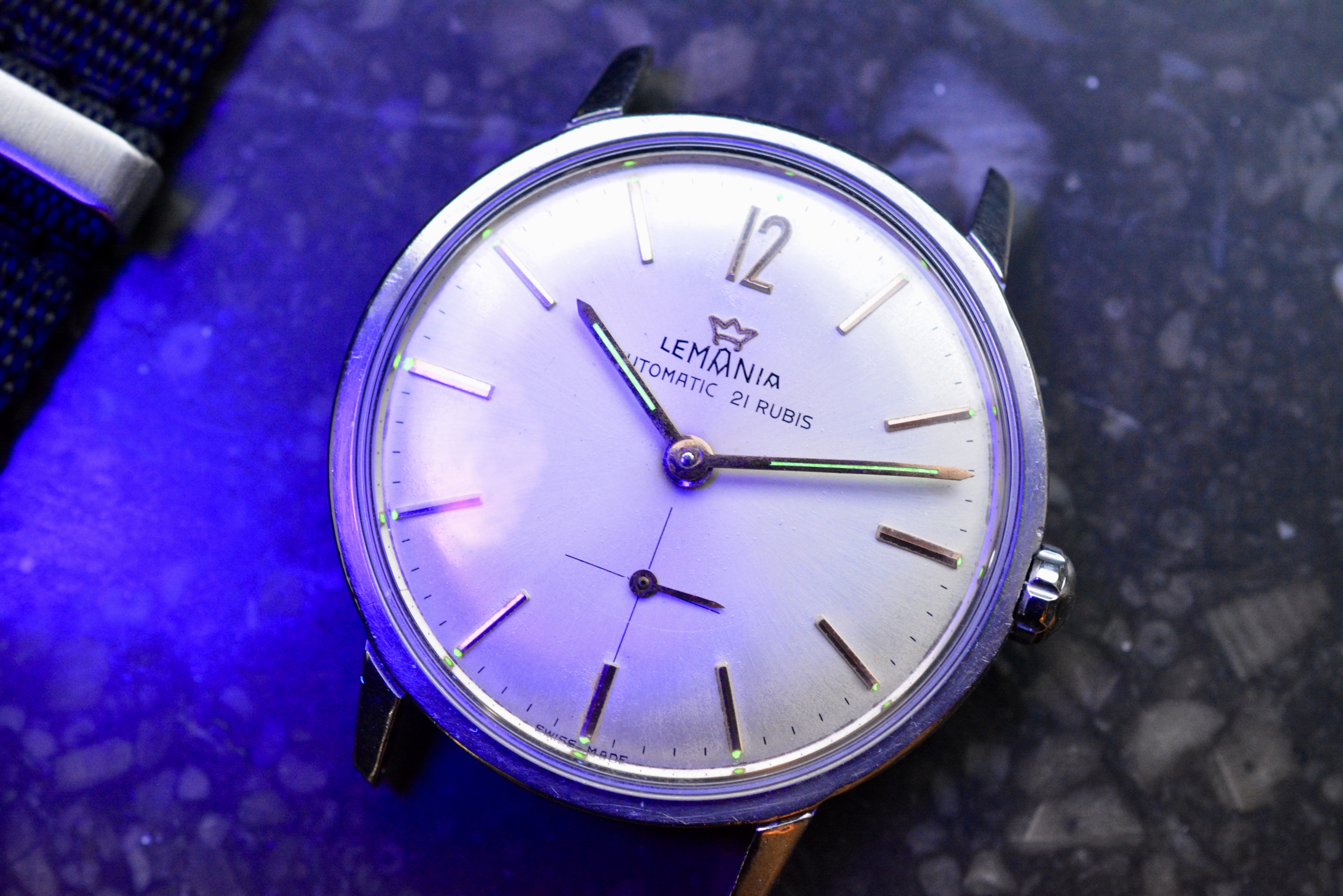 Both hands and indices still have all the original tritium. First picture is taken under UV light.