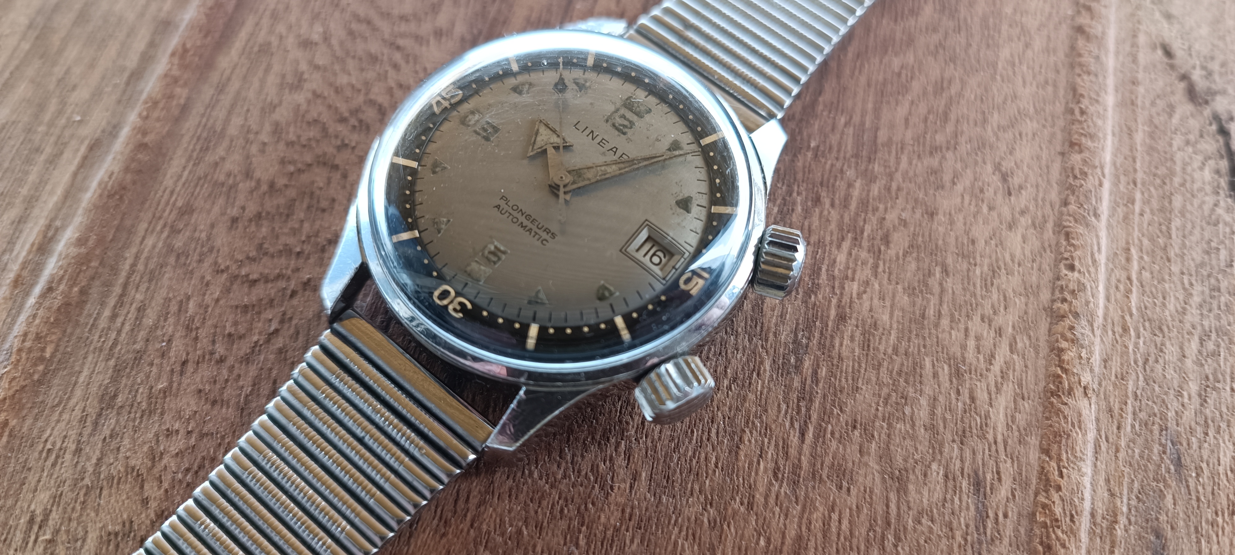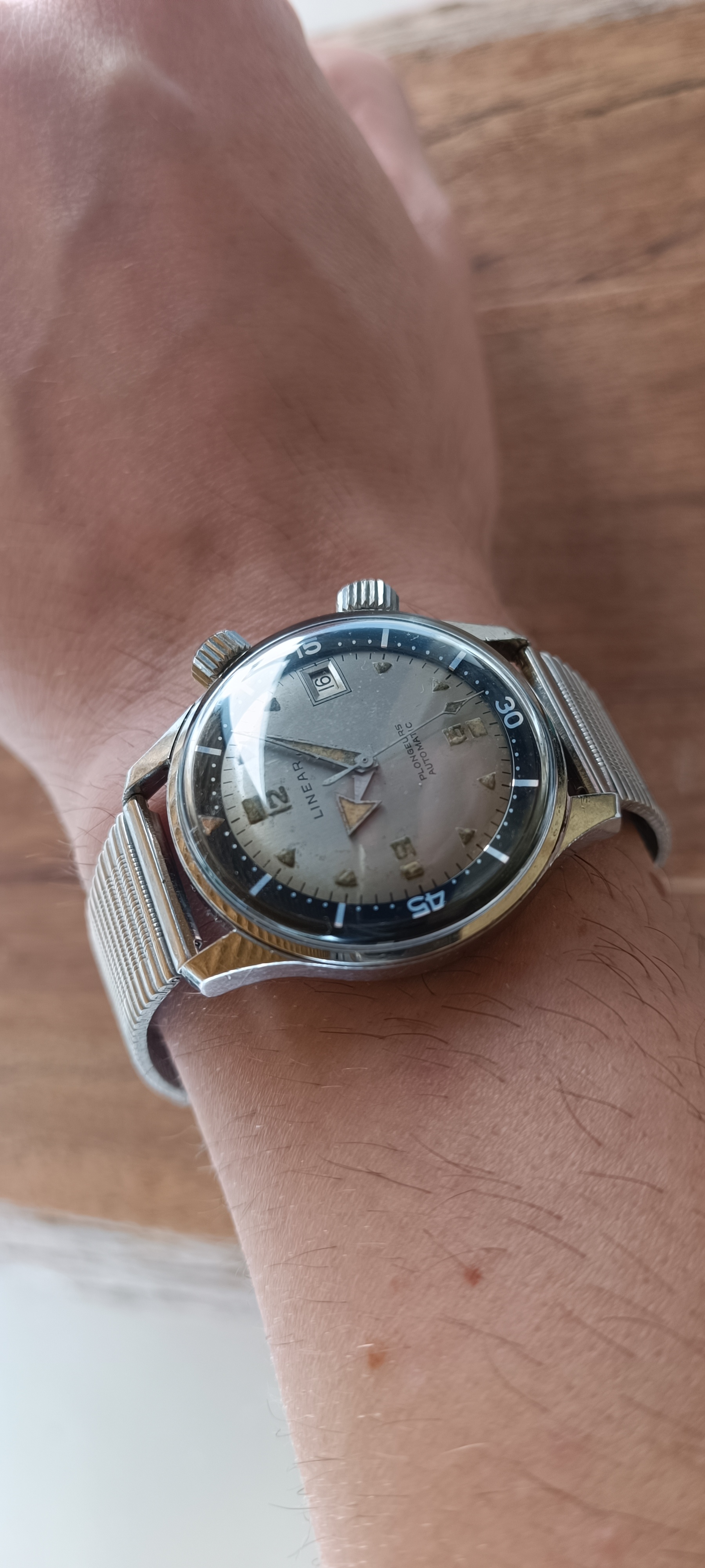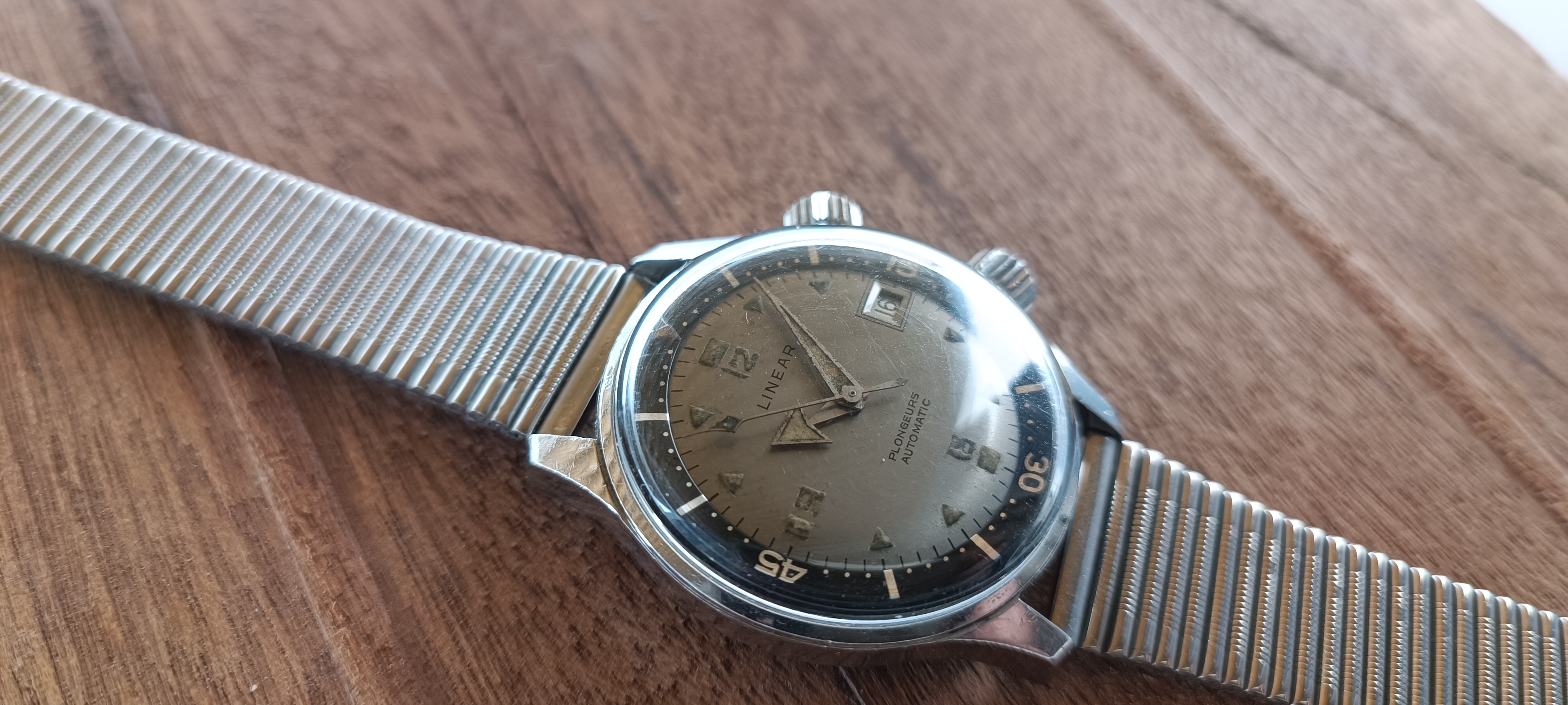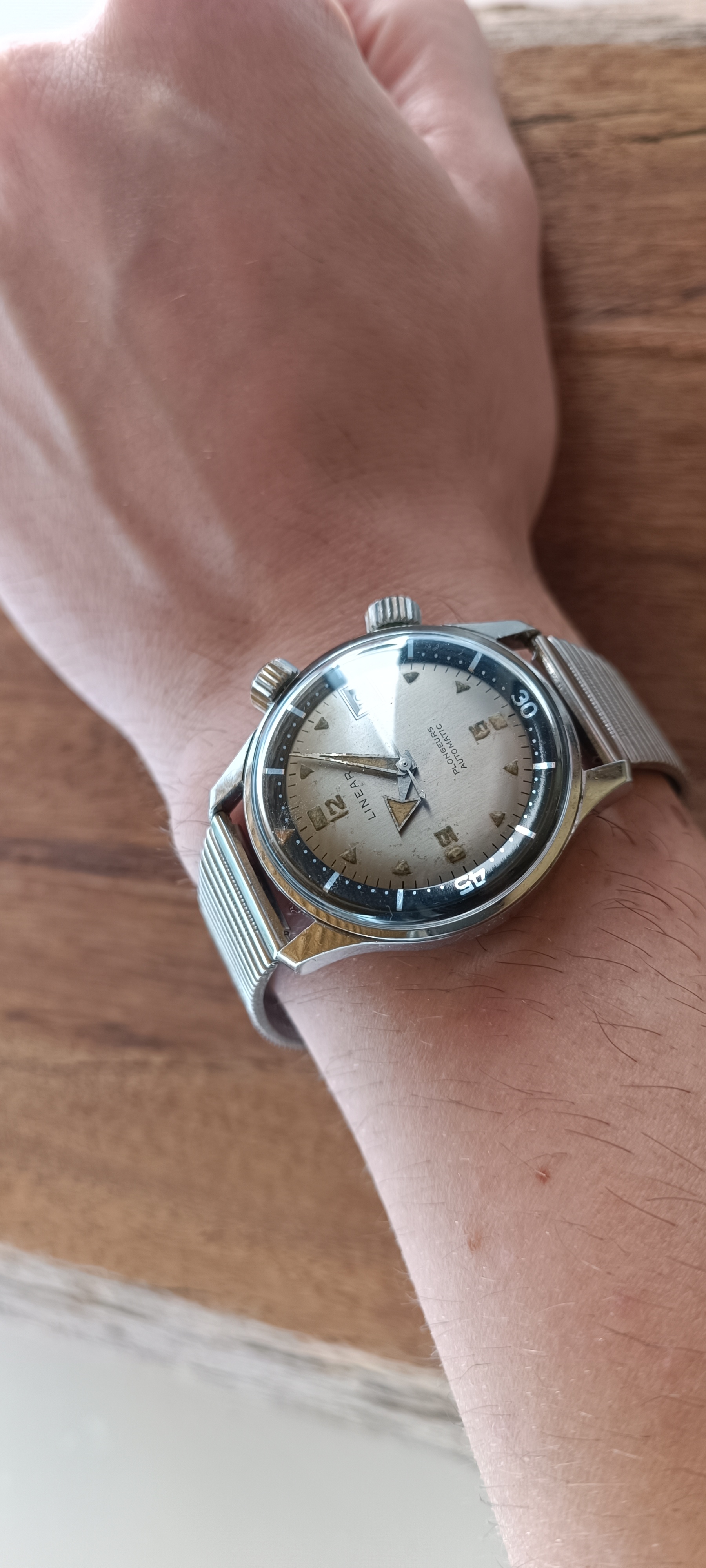 One thing to note I was warned about the linear brand was known for using Radium well into the 50s and 60s in combination with tritium. The patina on indices does warrant in my opinion at least a doubt that it in fact could be Ra and not T on the dial... Hands are in my opinion tritium. Both do not recharge and show 0 illumination when blasted with light.