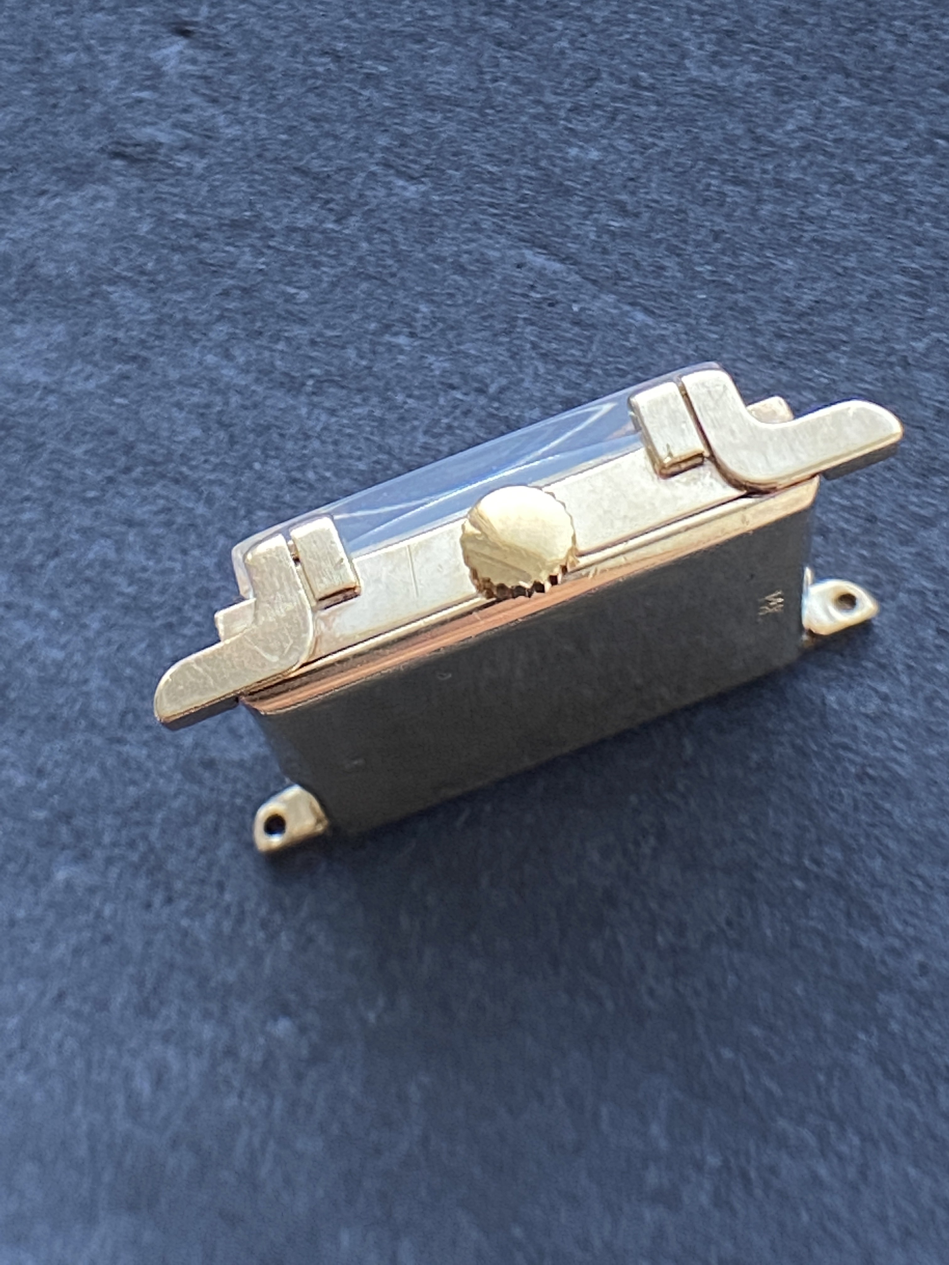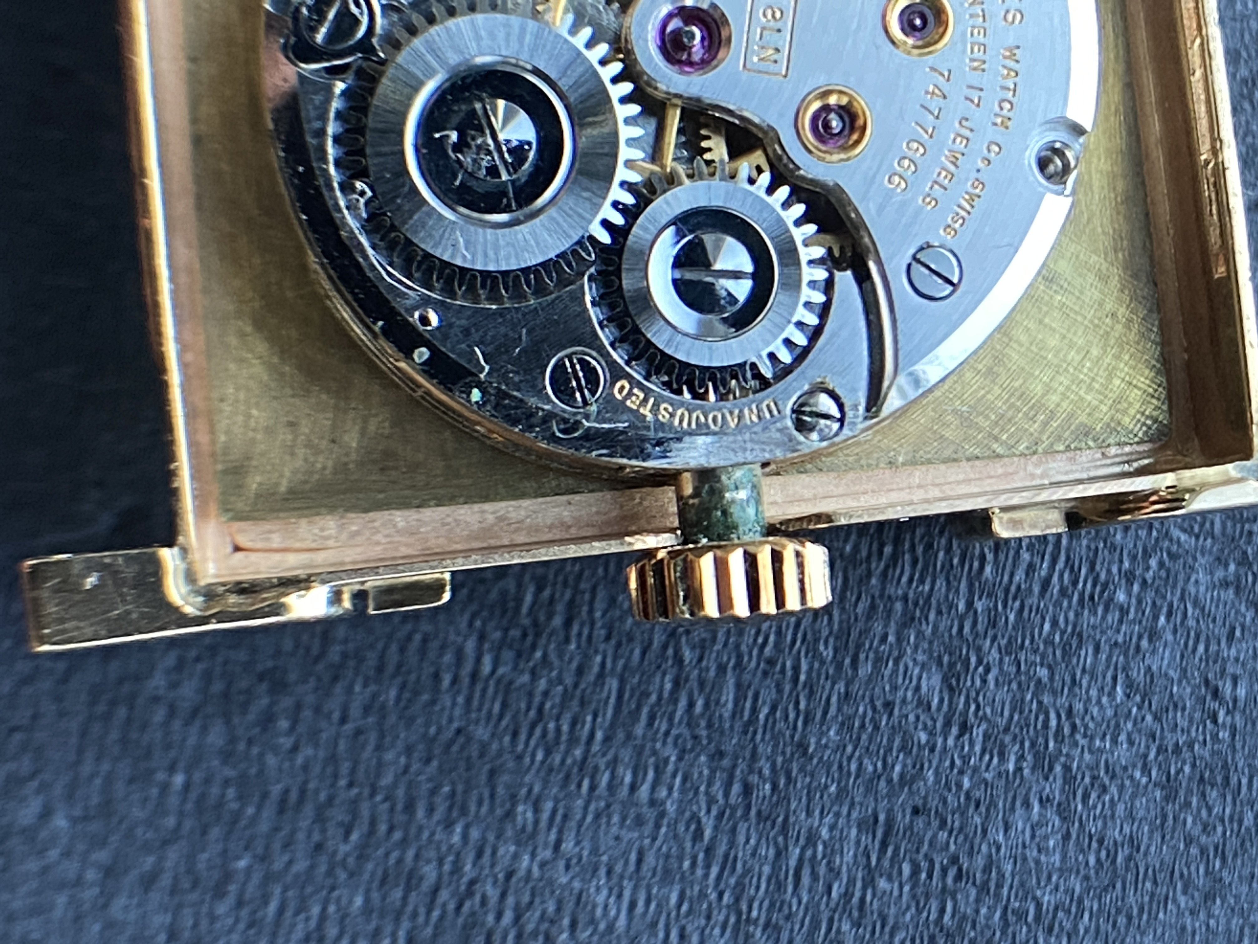 Case: Solid 14k rose-gold case. Measures 22 x 27 mm (lugs excluded). Unpolished in superb condition!