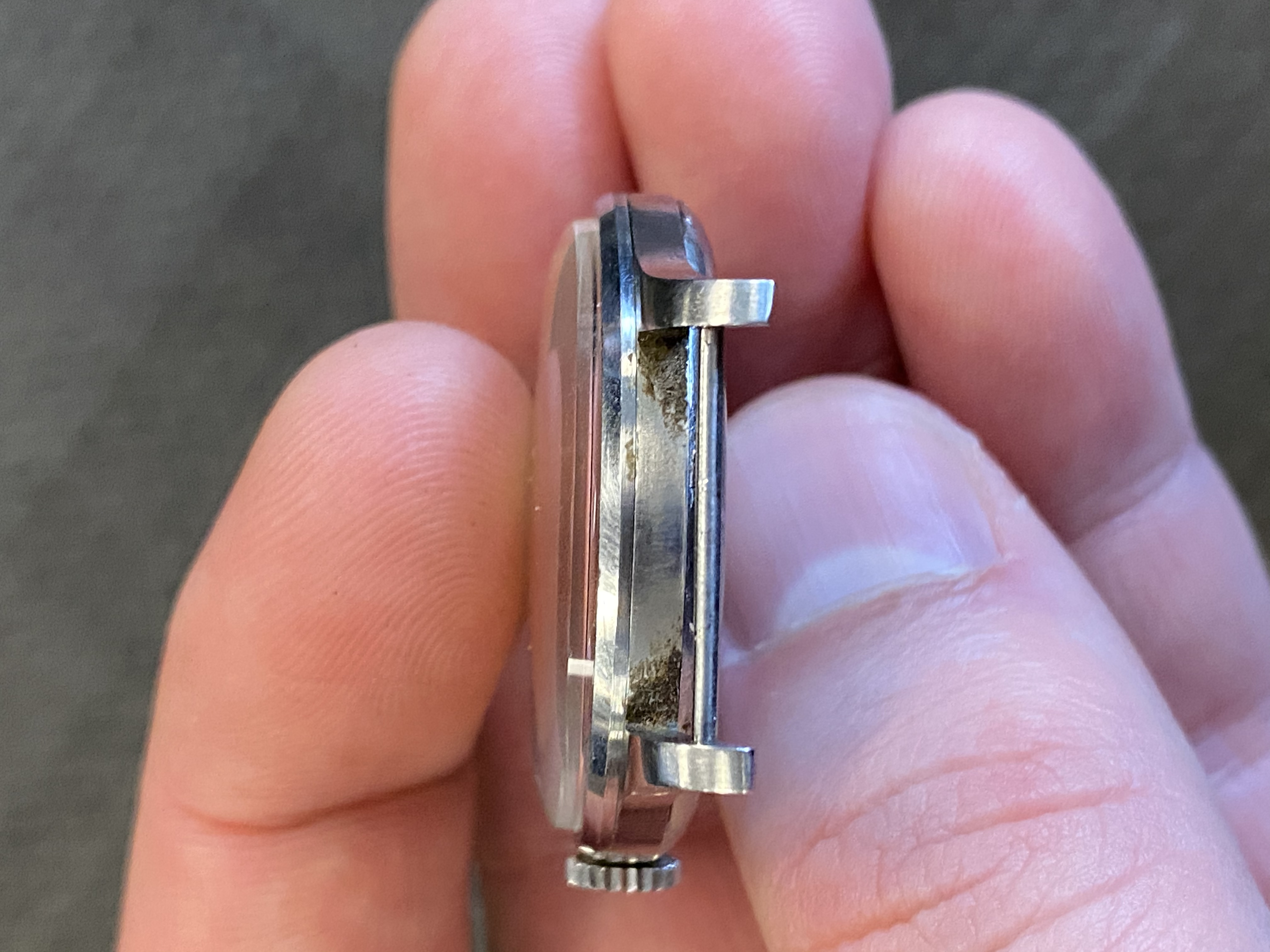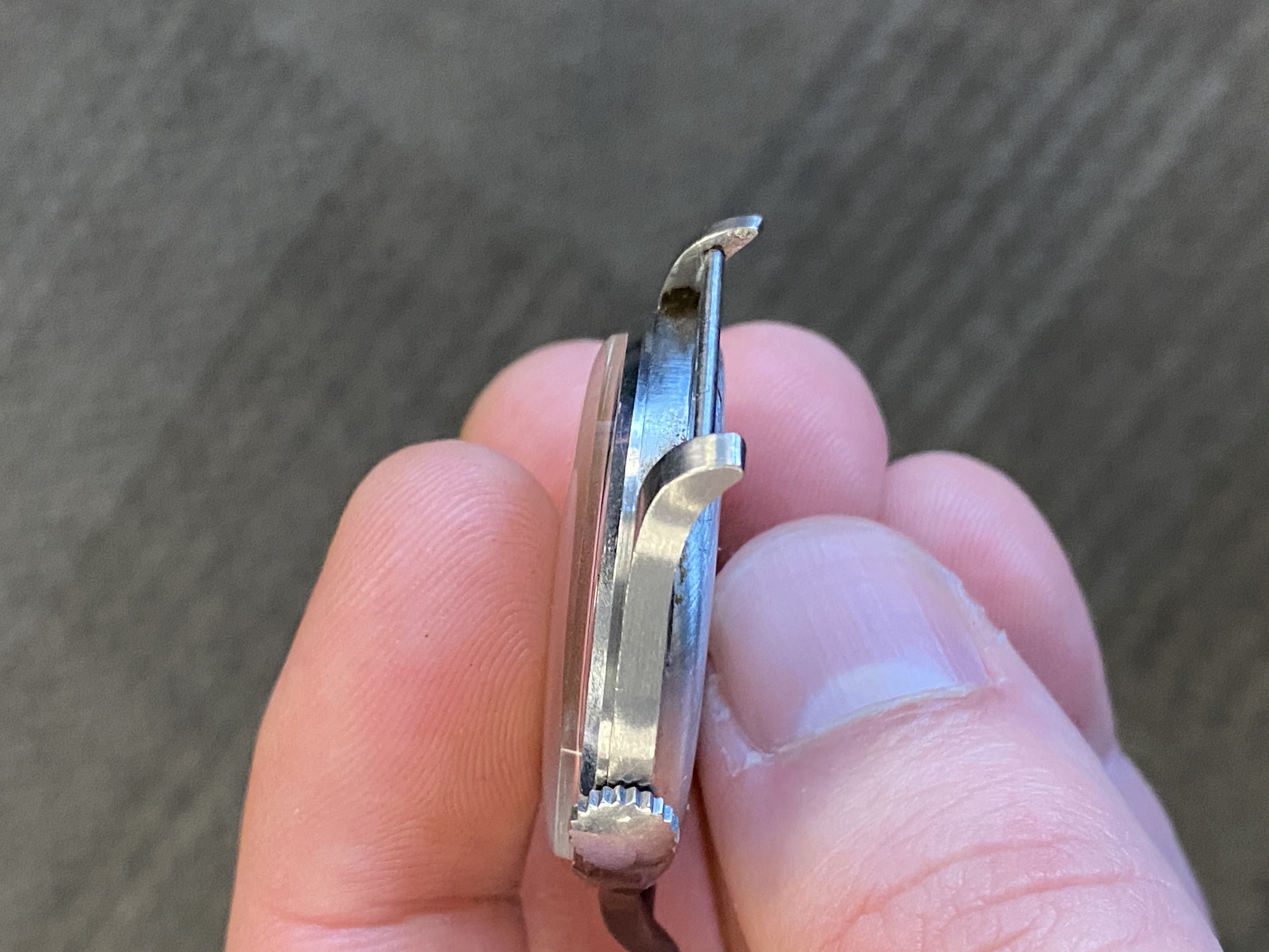 Aside from a small dial ding, this watch is absolutely fantastic condition. The case is razor sharp and retains the original brushing.