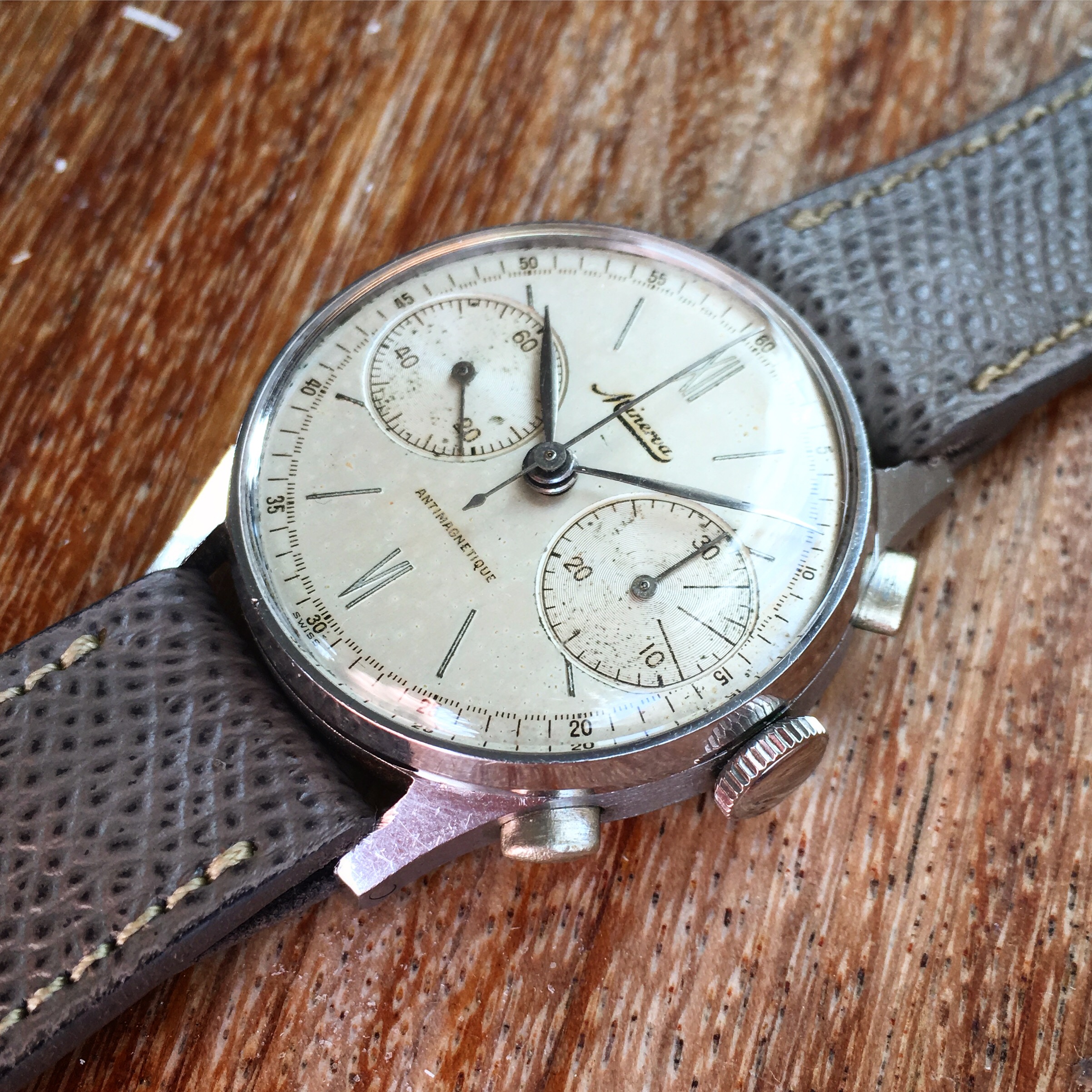 So, to your attention today there's this lovely and historically relevant Minerva chronograph, powered by the venerable 13-20CH in-house calibre.