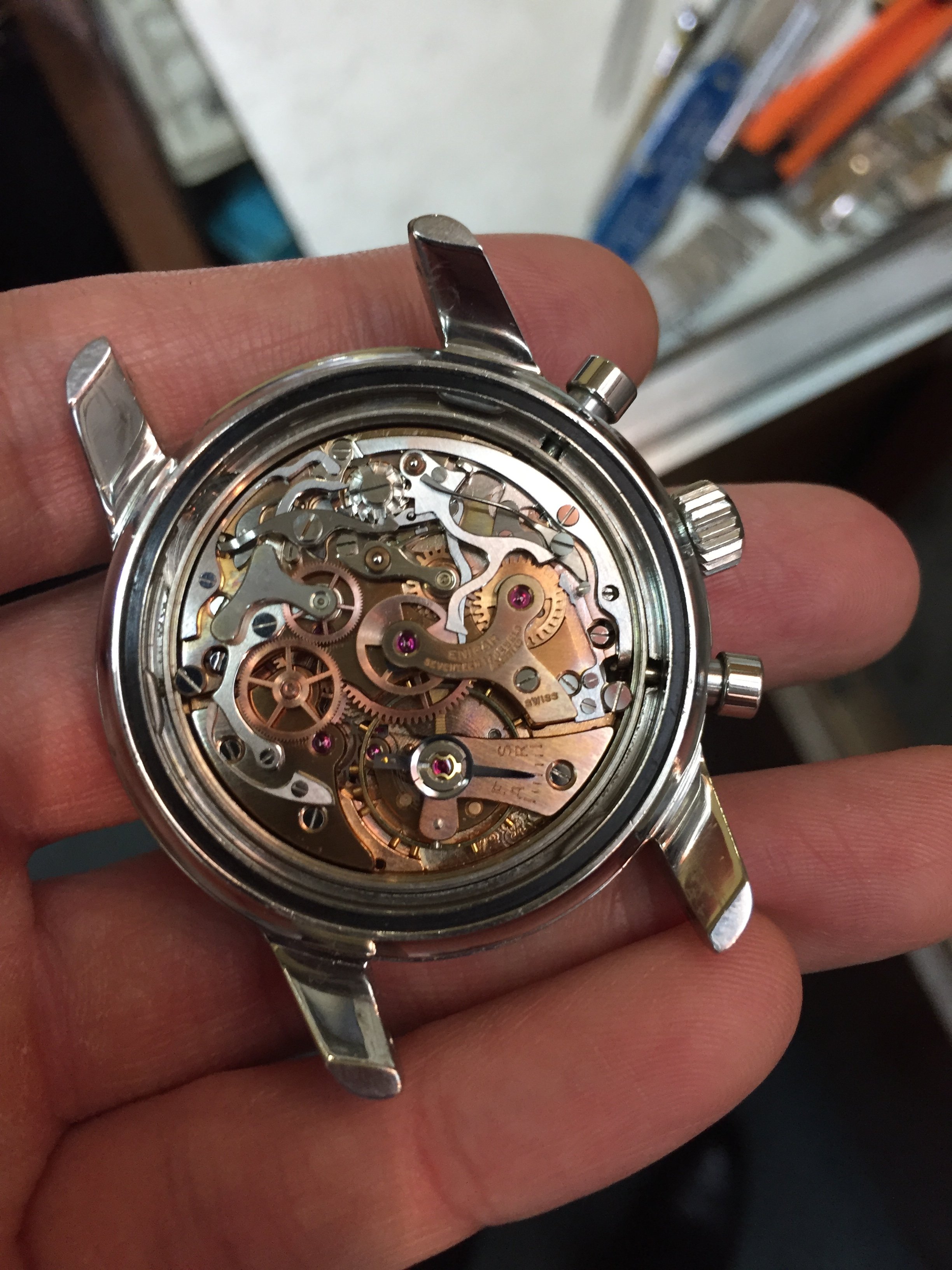 Probably one of the best Mk IV examples on the planet, with an unpolished and near-unmarked case (some hairlines from storage and desk use), perfect blue dial with orange/black hands, as well as some non-standard parts which add rather than detract to the look/value: