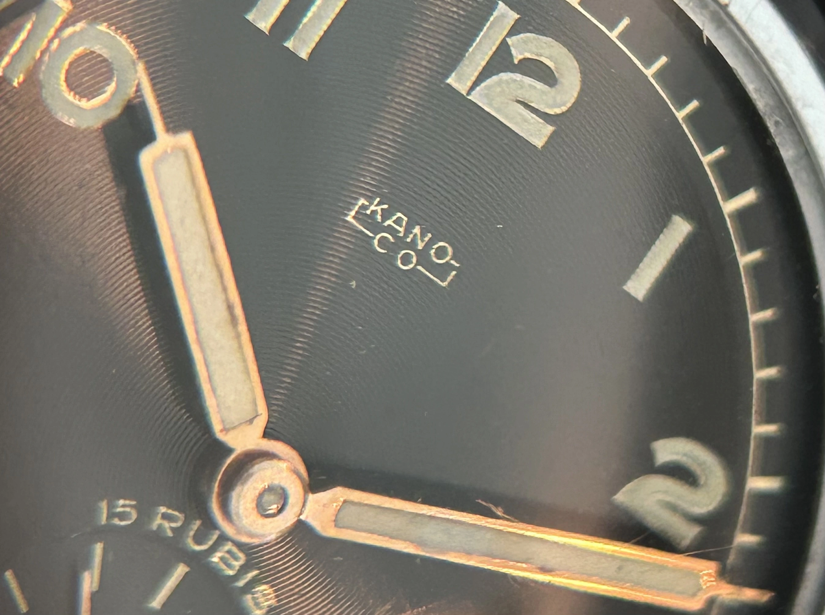 Karl Nonnenmacher founded Kano Uhrenfabrik in Pforzheim, Germany, in the interwar years. Pforzheim was heavily bombed in 1945, devastating the local watch industry. Kano was one of many firms rebuilding from the ruins in the late 1940s, often making use of pre-war and wartime components. This watch fits that transitional moment: