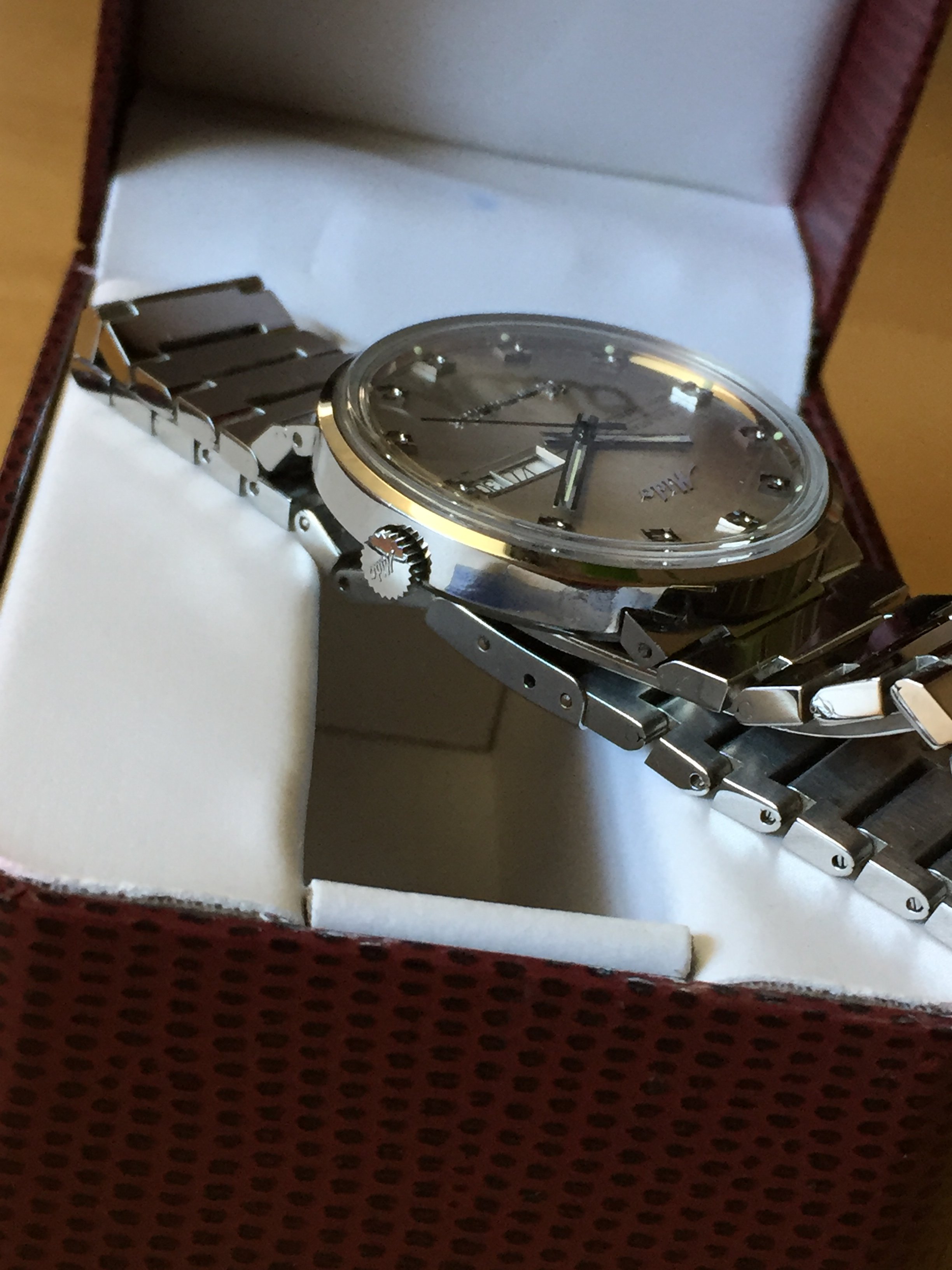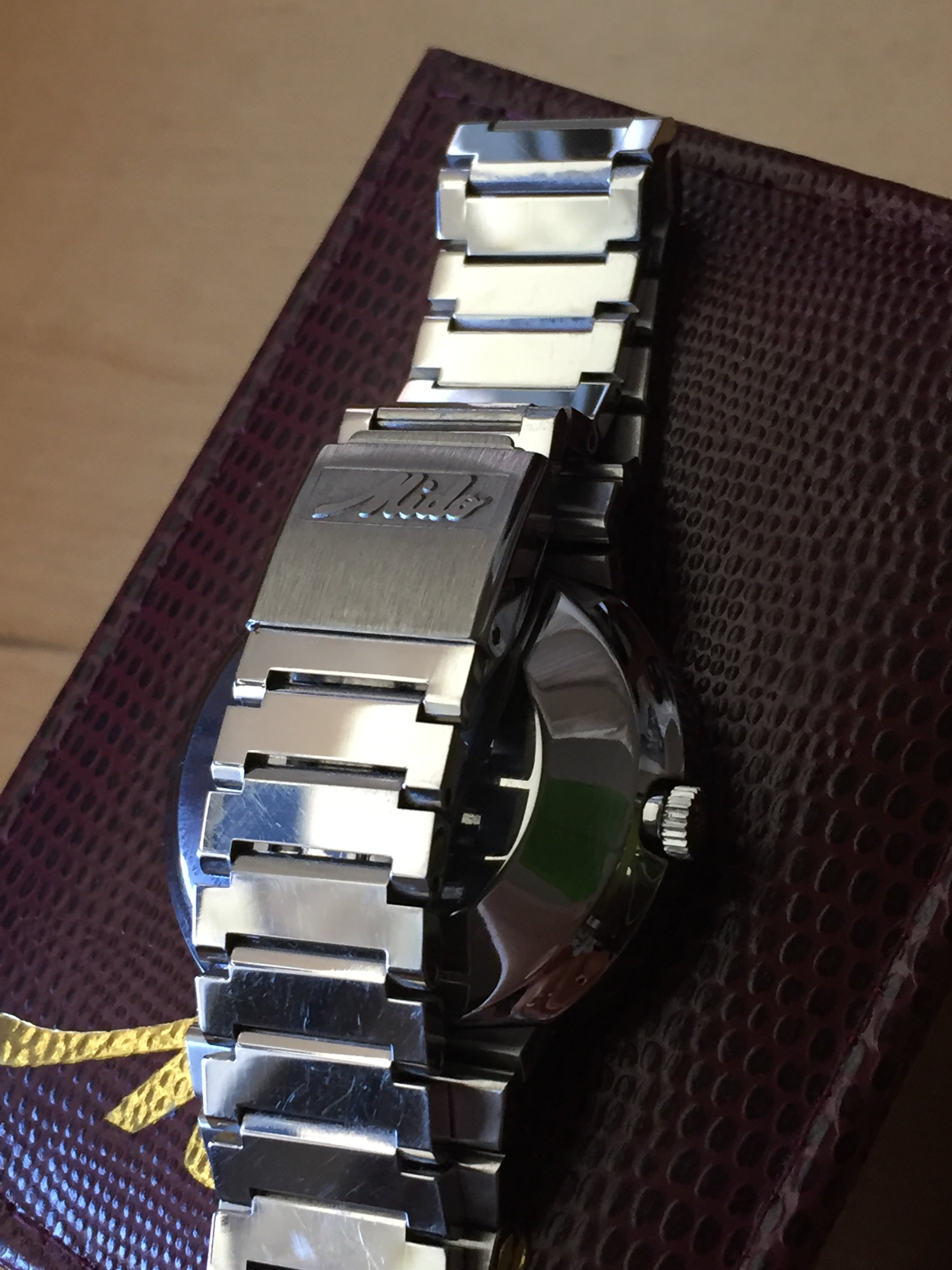 This is a very rare find. This is a New Old Stock MIDO OCEAN STAR COMMANDER DATODAY Automatic wrist watch that has never been used and still has the plastic wrap on some parts of the watch case (see pics near the crown) . The stainless steel watch case is 37mm in diameter and the watch has been serviced (lubrication and cleaning) February 2020. The case is signed MIDO and stainless steel. Caliber is ETA (I need to check the exact reference of this caliber). The signed watch crown will set the time and wind the watch. The watch has a stainless steel MIDO signed watch band. The watch is unused but has some scratches on the bracelet, I believe from a bad storage, as the finish of the watch is polish you can see them depending on the reflection of the light. It has the original box and it's included on the price. This could easily be the crown jewel in any MIDO collection as the MIDO OCEAN STAR COMMANDER was a top shelf model in its own right, but to find a vintage watch in such unused and unblemished condition is a uncommon find indeed.