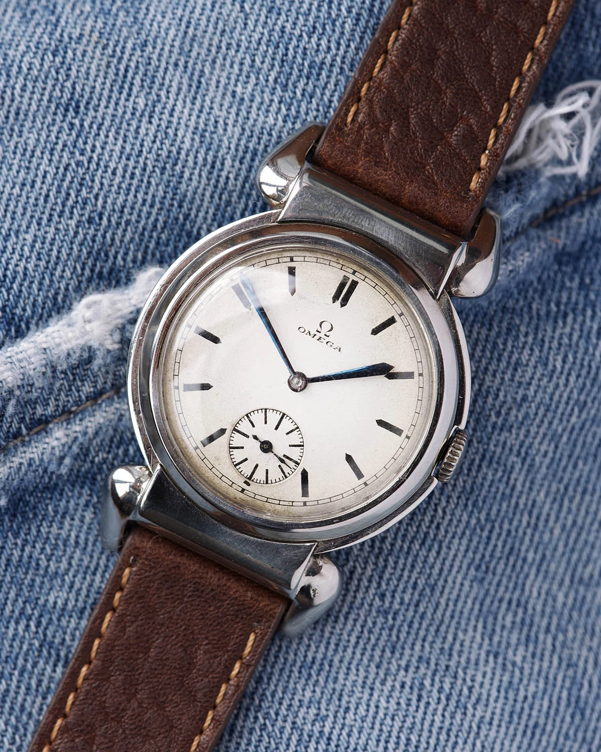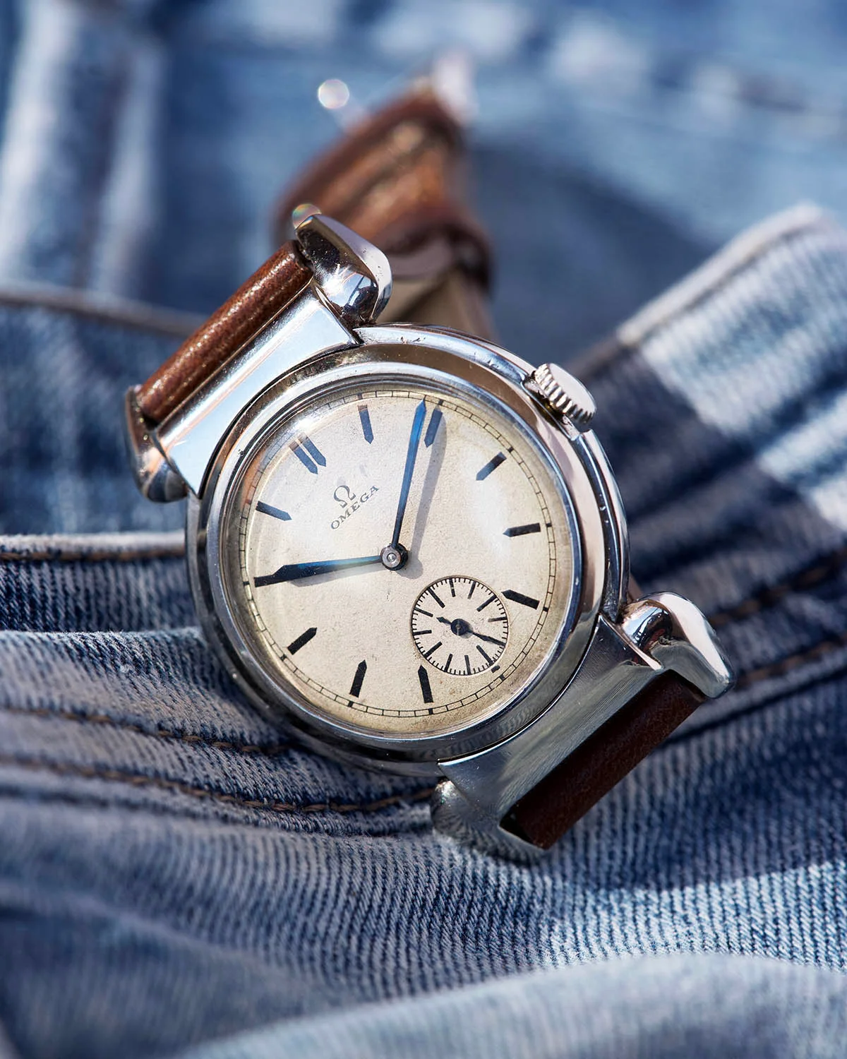 This specific watch, which I’m pleased to offer to the forum friends, features an extraordinarily beautiful dial: white, with an “eggshell” patina that takes on a slightly creamy hue under the right lighting. The finish is “grené,” a rare and delicate texture that is harder to find than the classic smooth dials (we often see it on Rolex watches from the same era). The layout is clean and minimalist, yet full of character. The curved logo is period-correct. The blued sword hands add a strong personality to the piece, which in my opinion is full of charm.