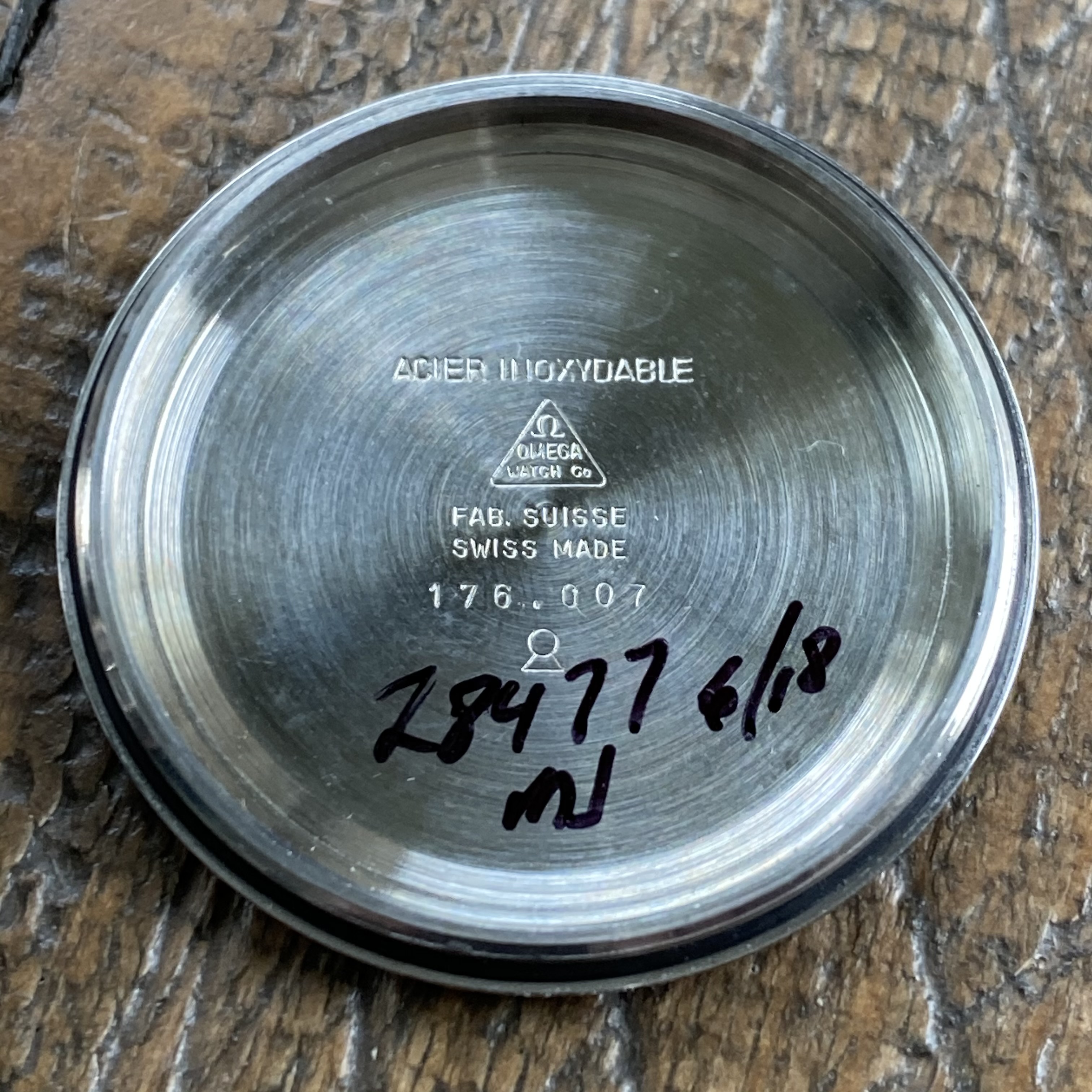 Crystal has some scratches but is in otherwise good shape. The Omega logo is visible. The profile of the crystal is not fully “rounded”, which can be an indicator of a service part. If so it has been with the watch for many years.
