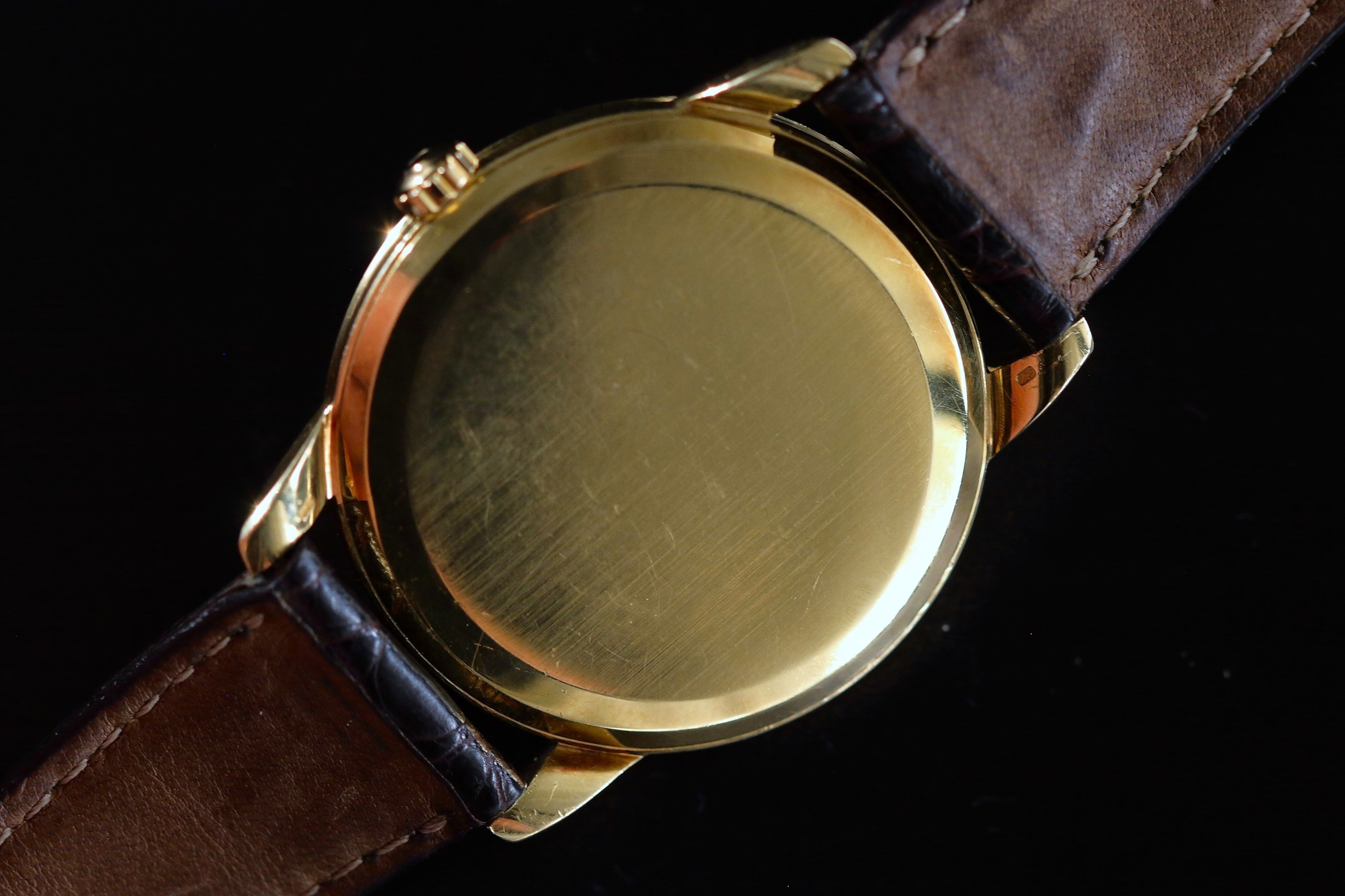 The 18kt case is 33.5mm in diameter and in good shape with a fully signed snap case back.