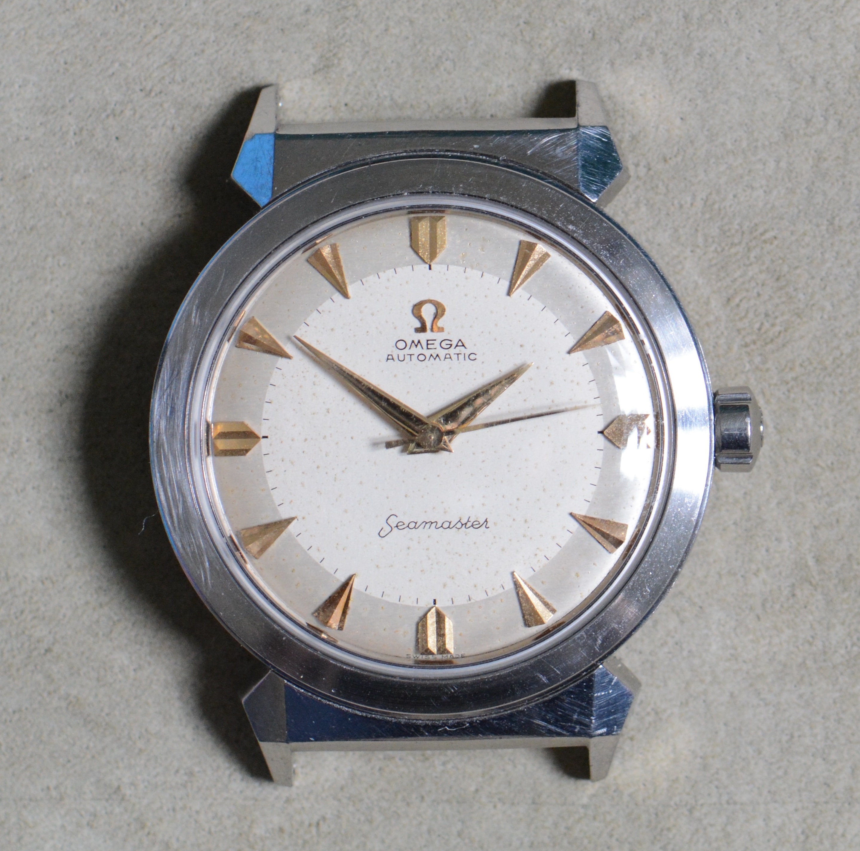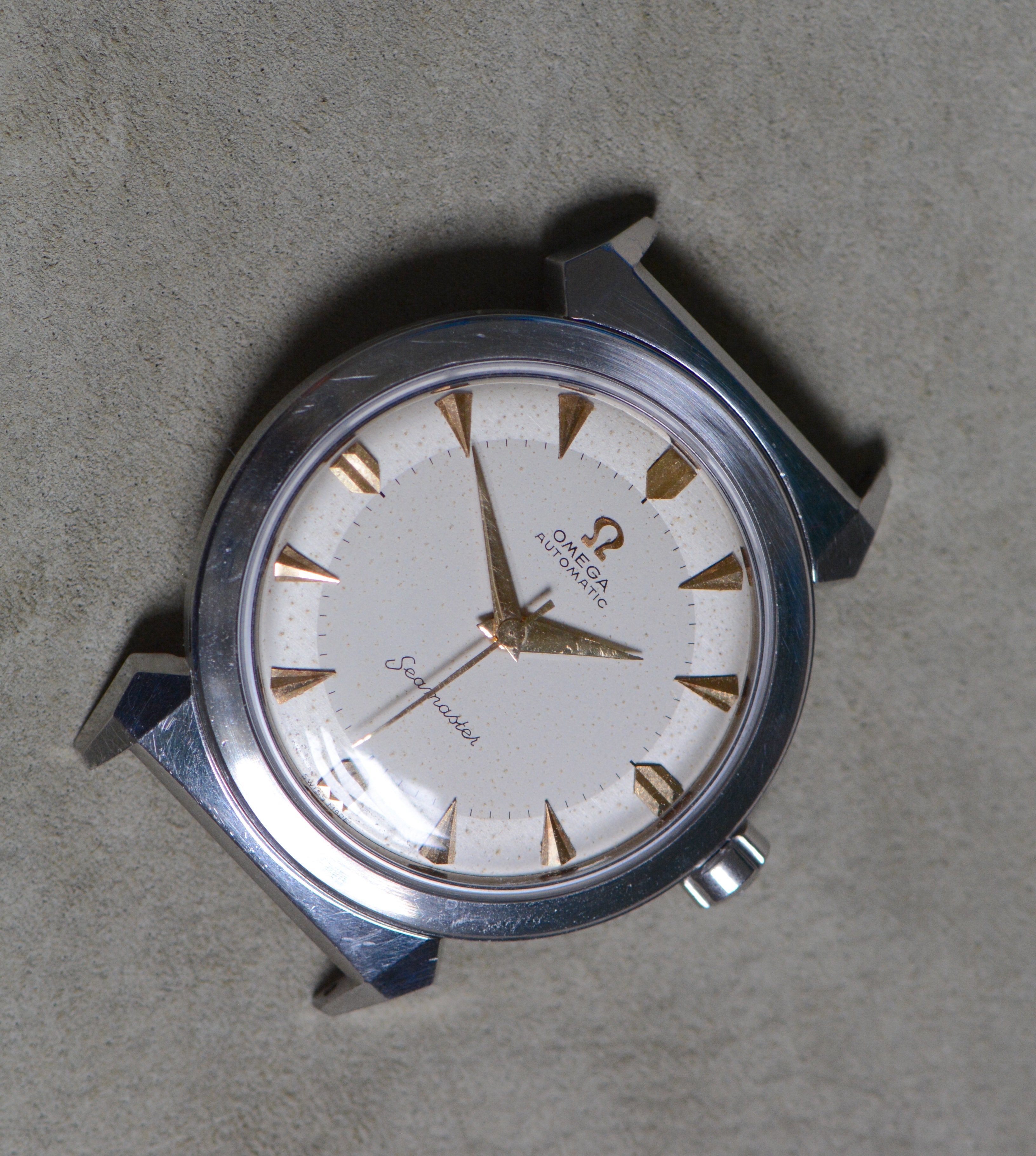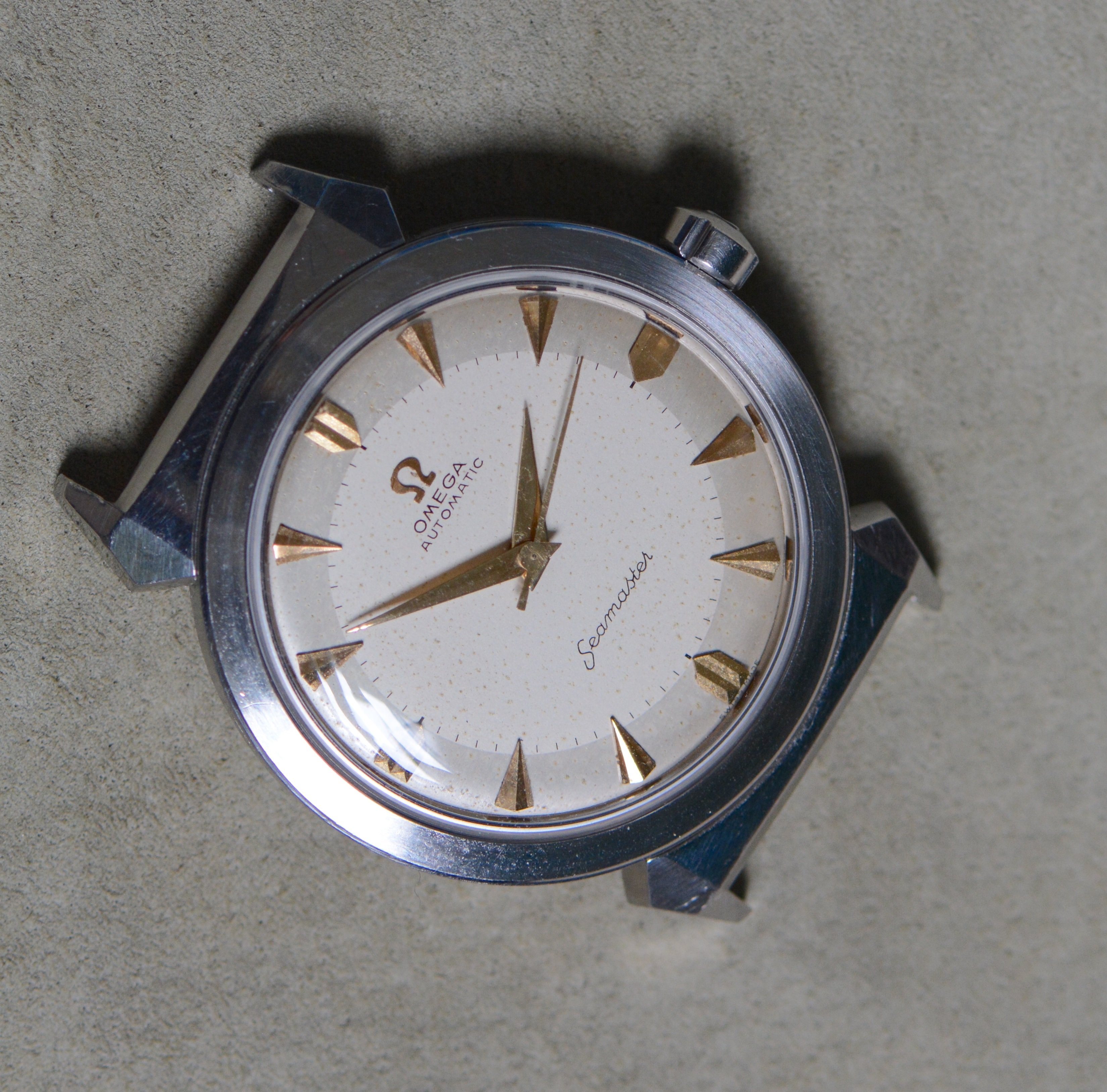 I think it's fair to say that this reference does not come up for sale often. For your consideration is an Omega Seamaster ref. 14363 with a hooded lugs case. Inspired by some nice example shown here on the forum I started to hunt for one myself and bought mine from a dealer earlier this year. However, I came to realize that watches with fancy lugs look better on other people's wrists than mine. Hence, it has not seen a lot of wrist time, so I'm releasing it into the wild again.