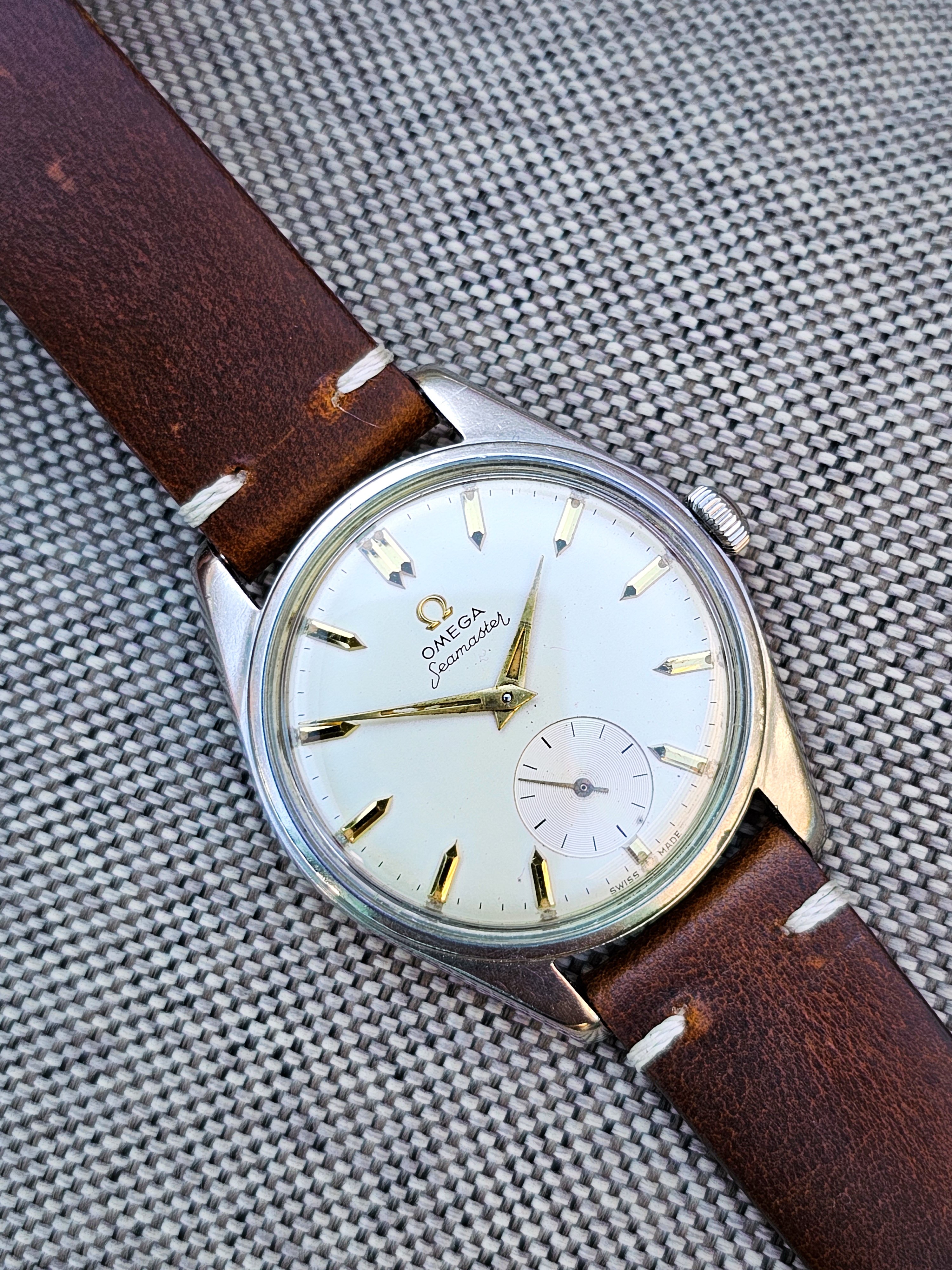 As you know these are quite uncommon and are getting hard to find in a nice original condition. This particular example has very attractive dial with thick golden markers and correct "rounded" Omega loggo which indicates that this is transformed Ranchero.